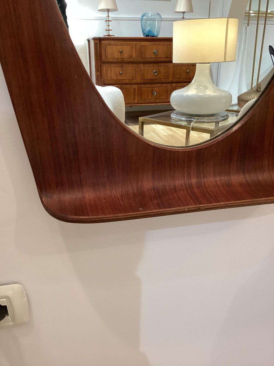 Curved Wood Mirror by Campo E Graffi for Home, 1960s