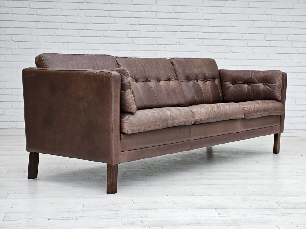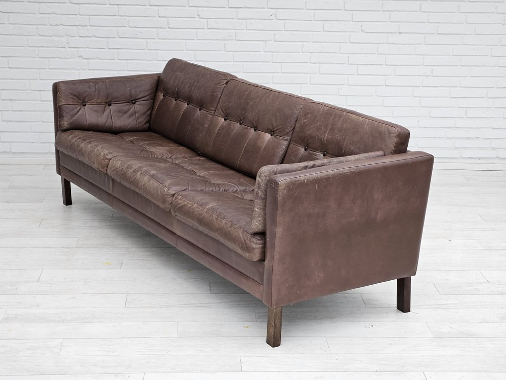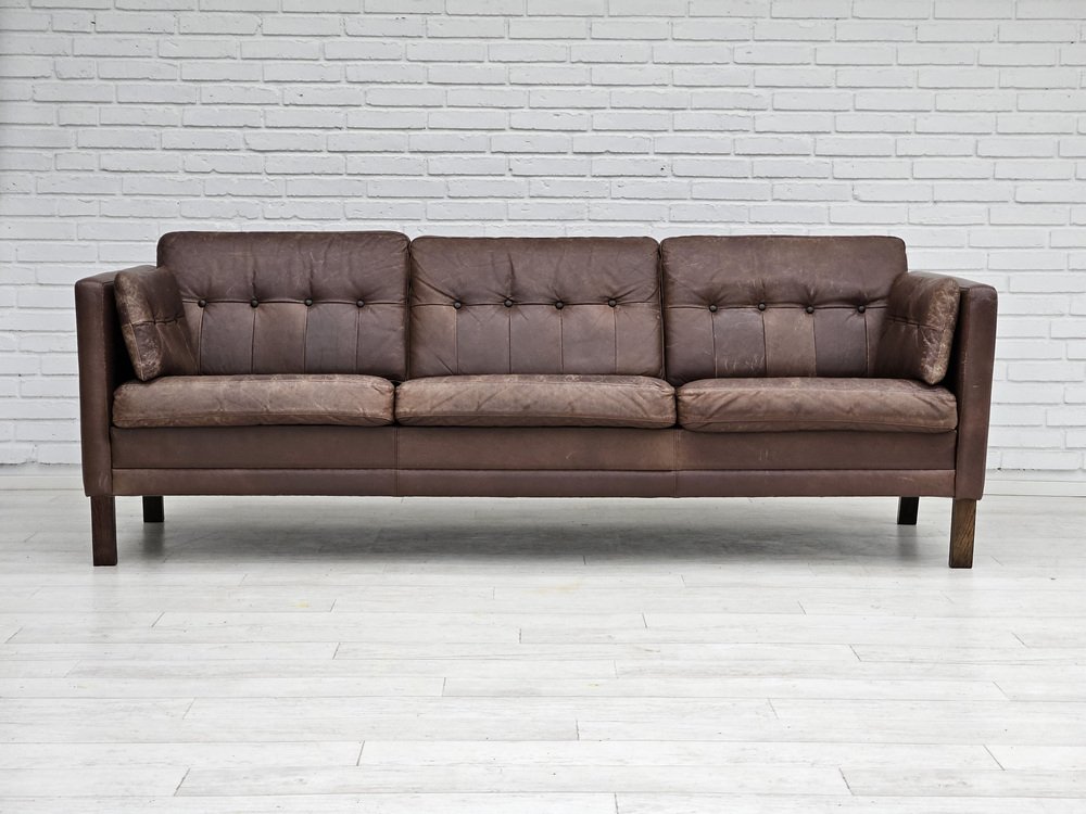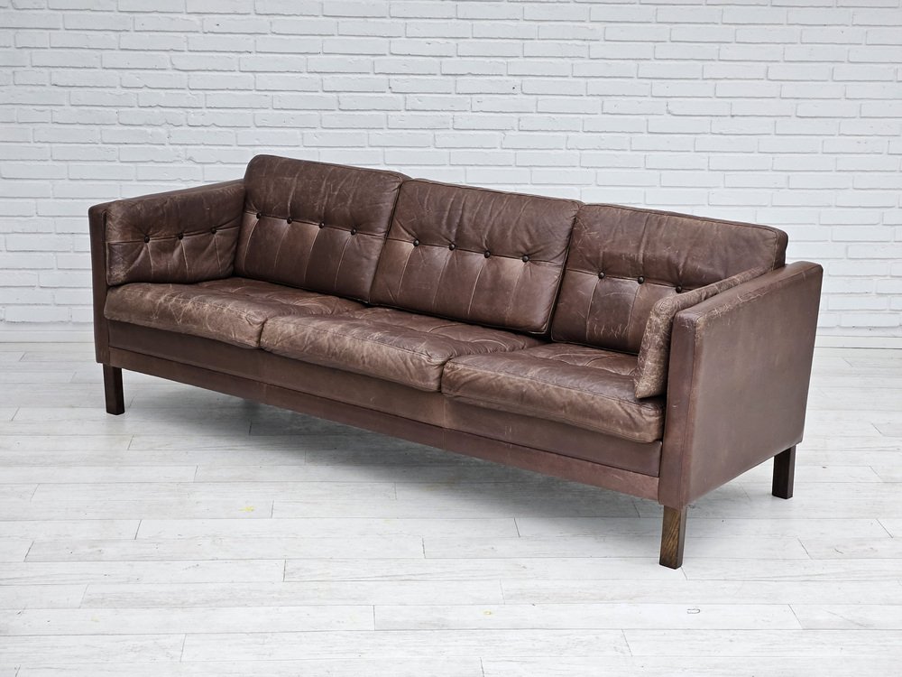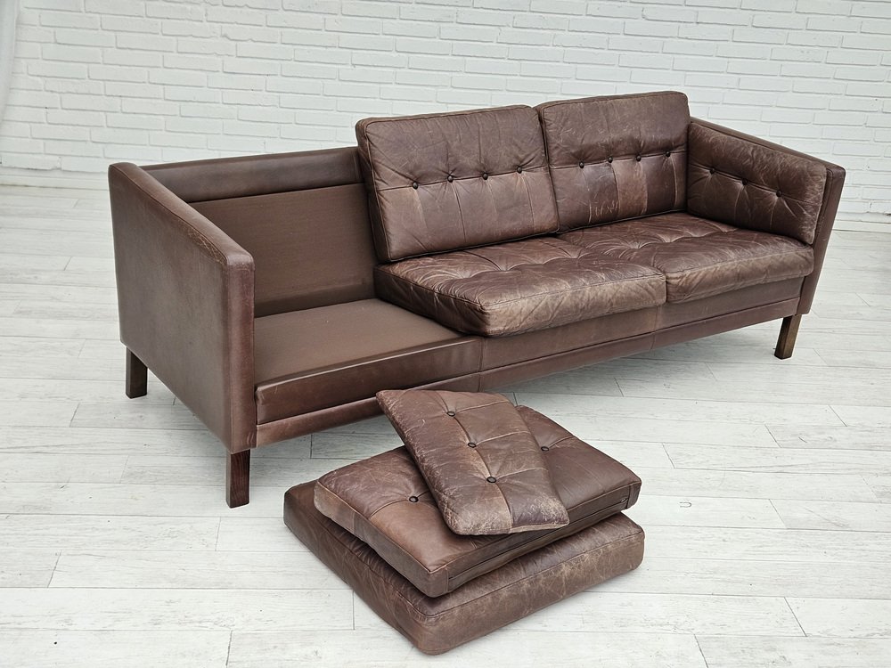 Danish 3-Seater Sofa in Brown Leather, 1970s