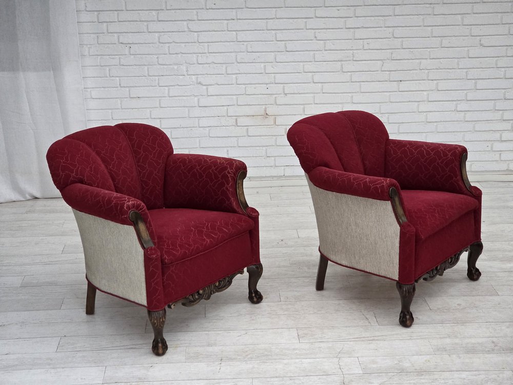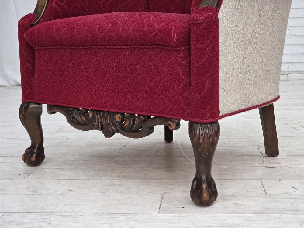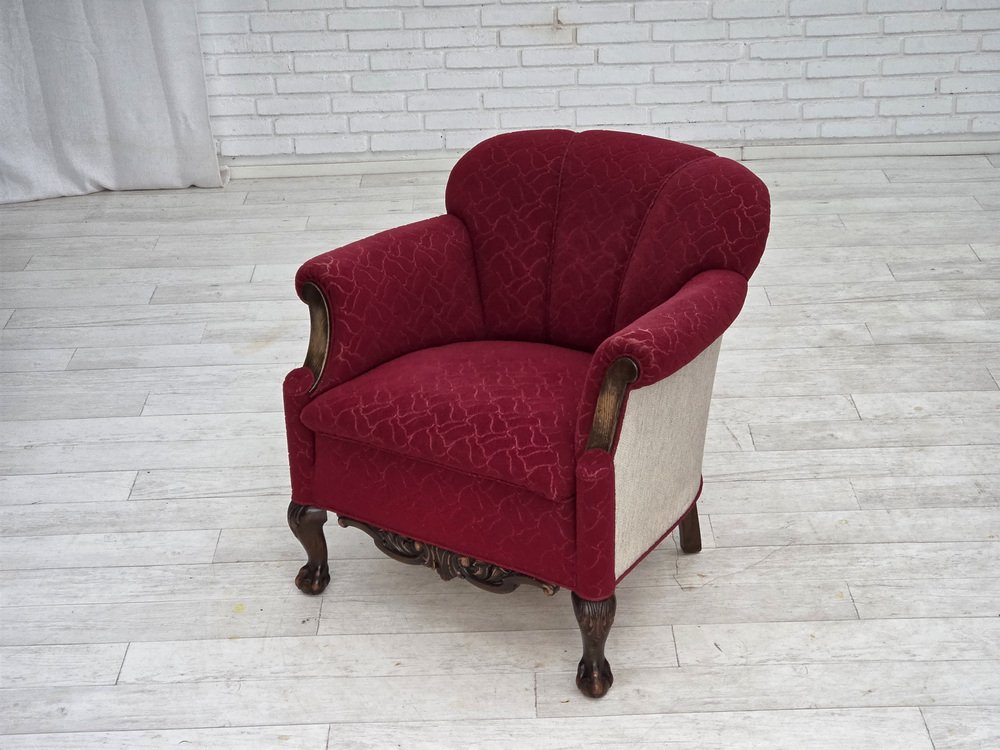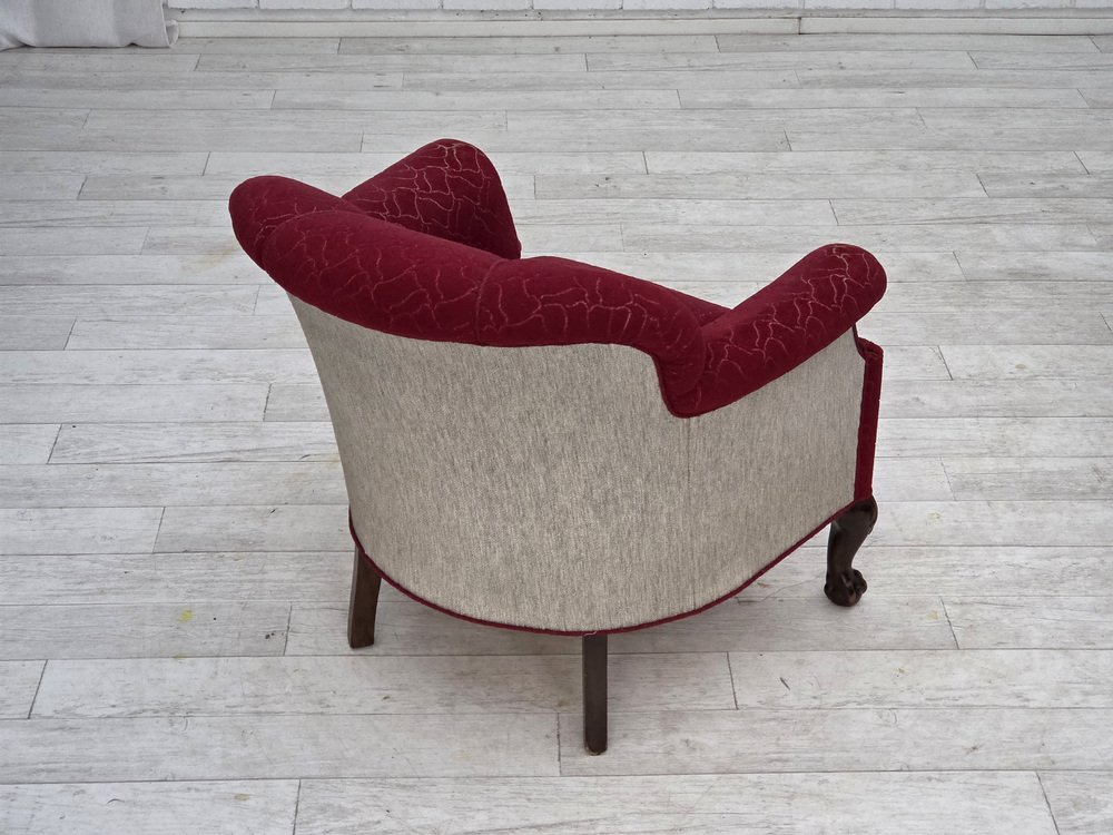 Danish Armchair in Red and Light Grey Wool and Oak, 1950s