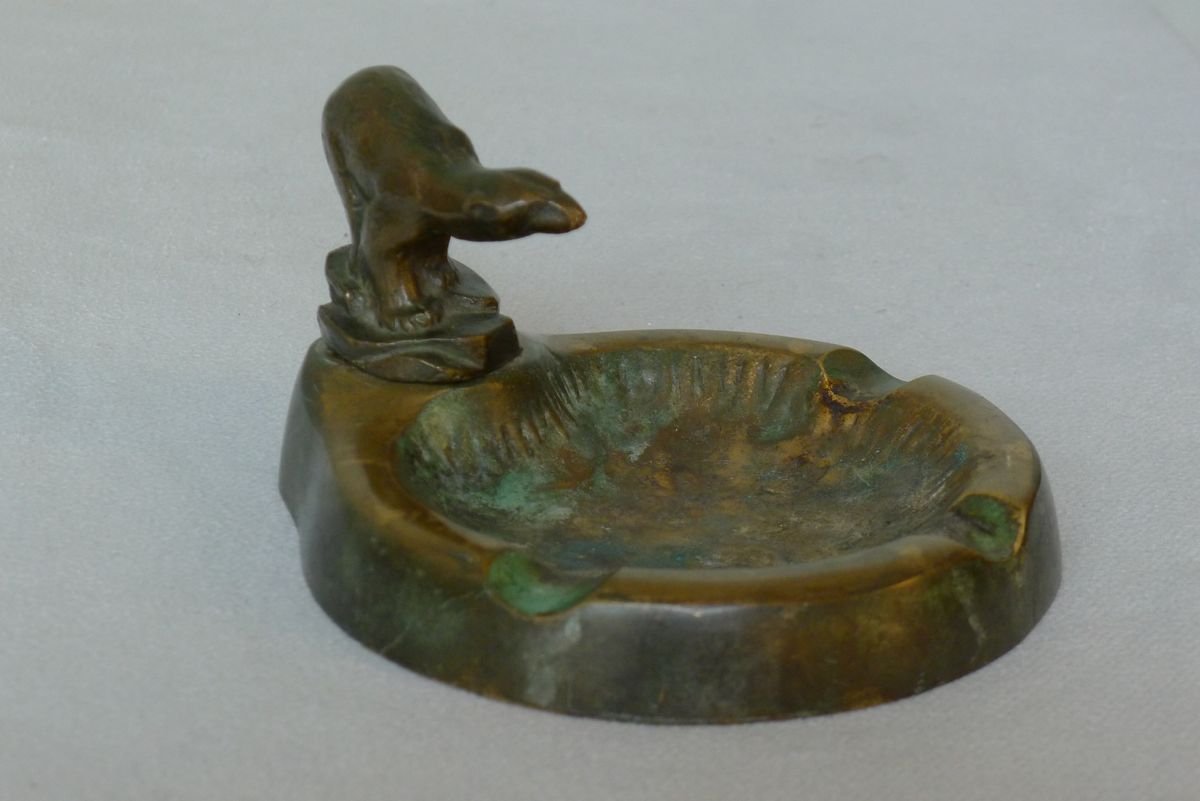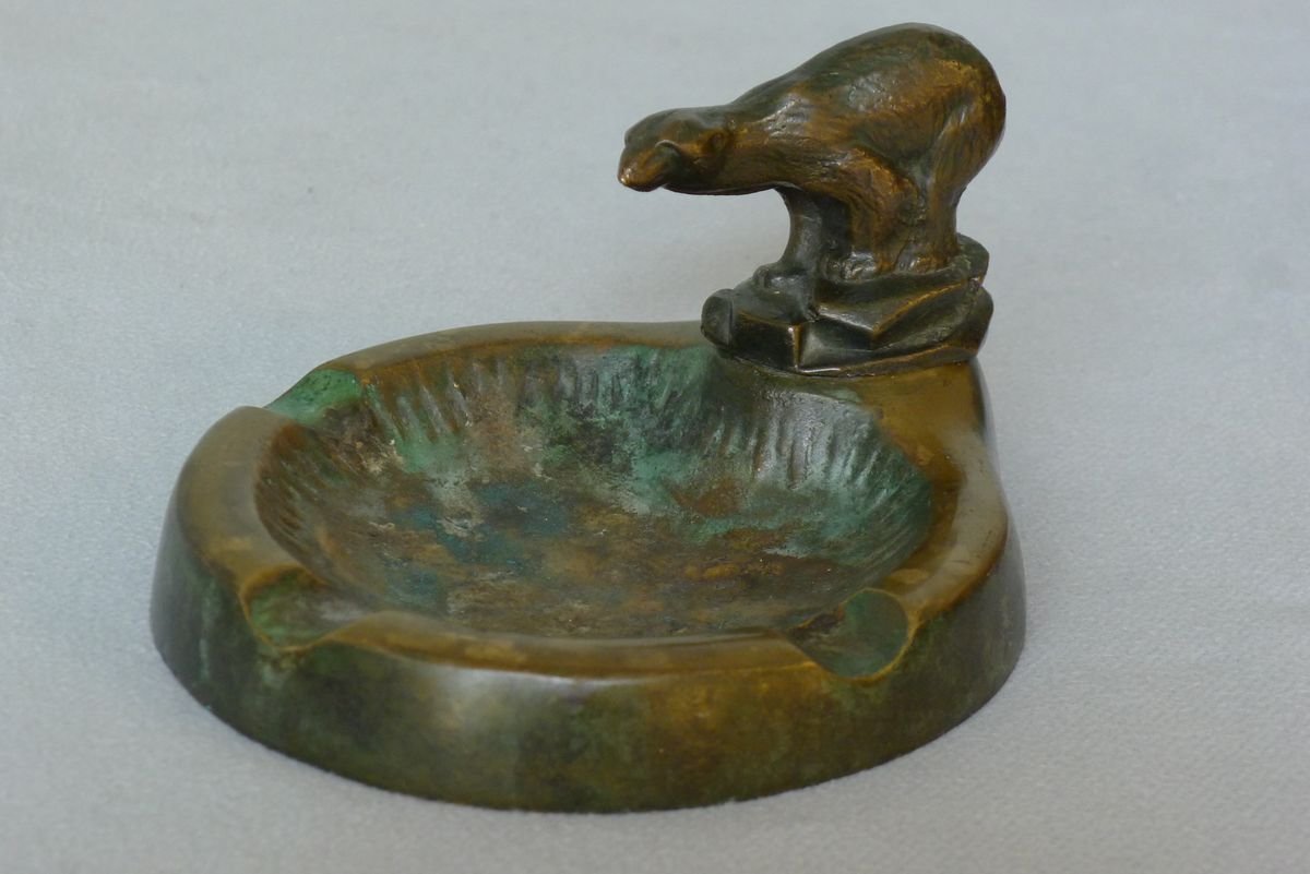 Danish Art Deco Bronze Ashtray with Polar Bear Figurine