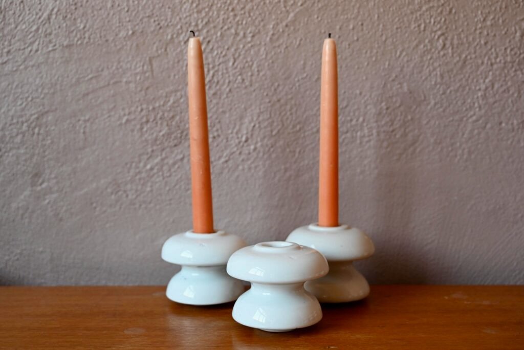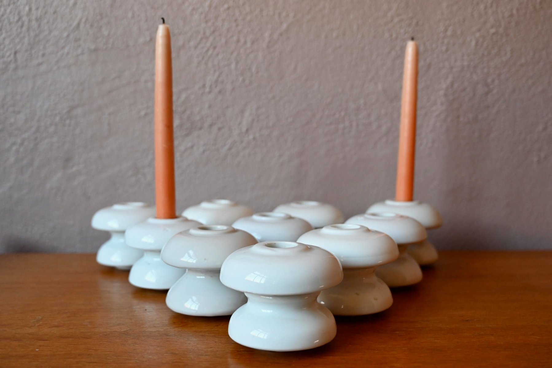 Danish Candlesticks in White Porcelain, Set of 8