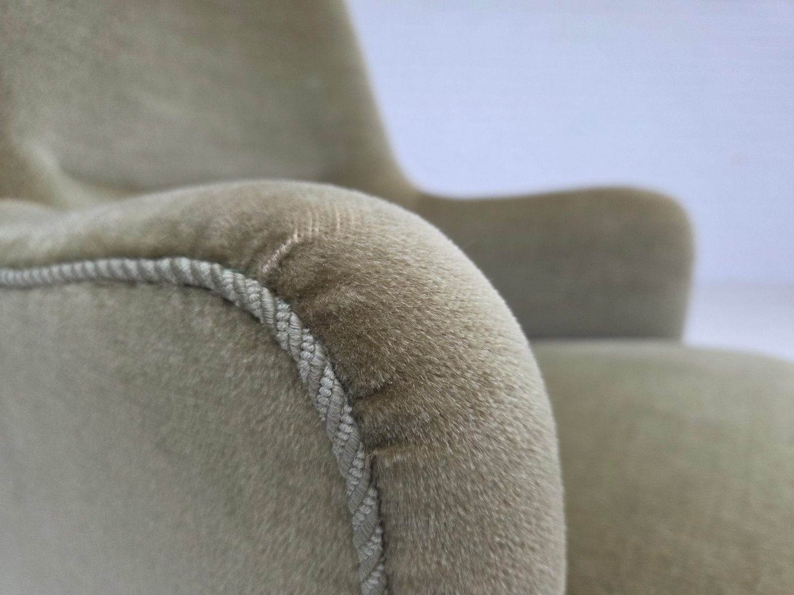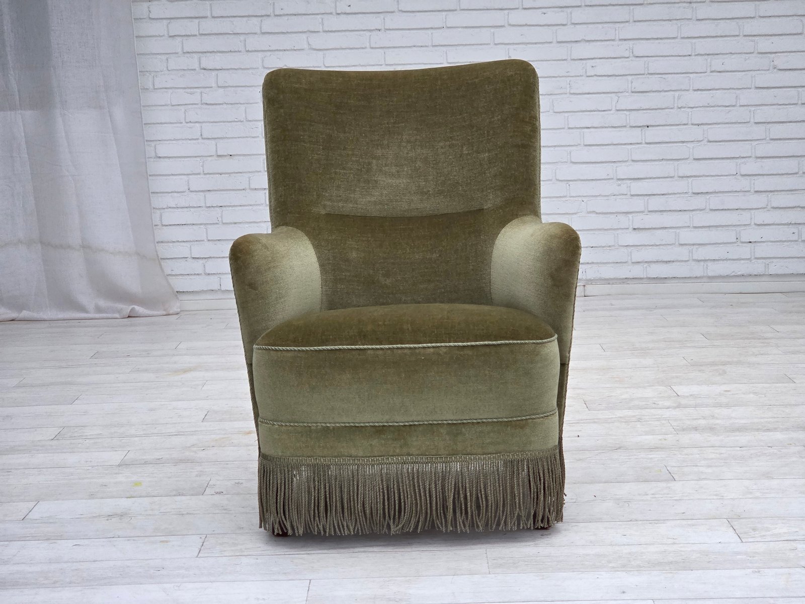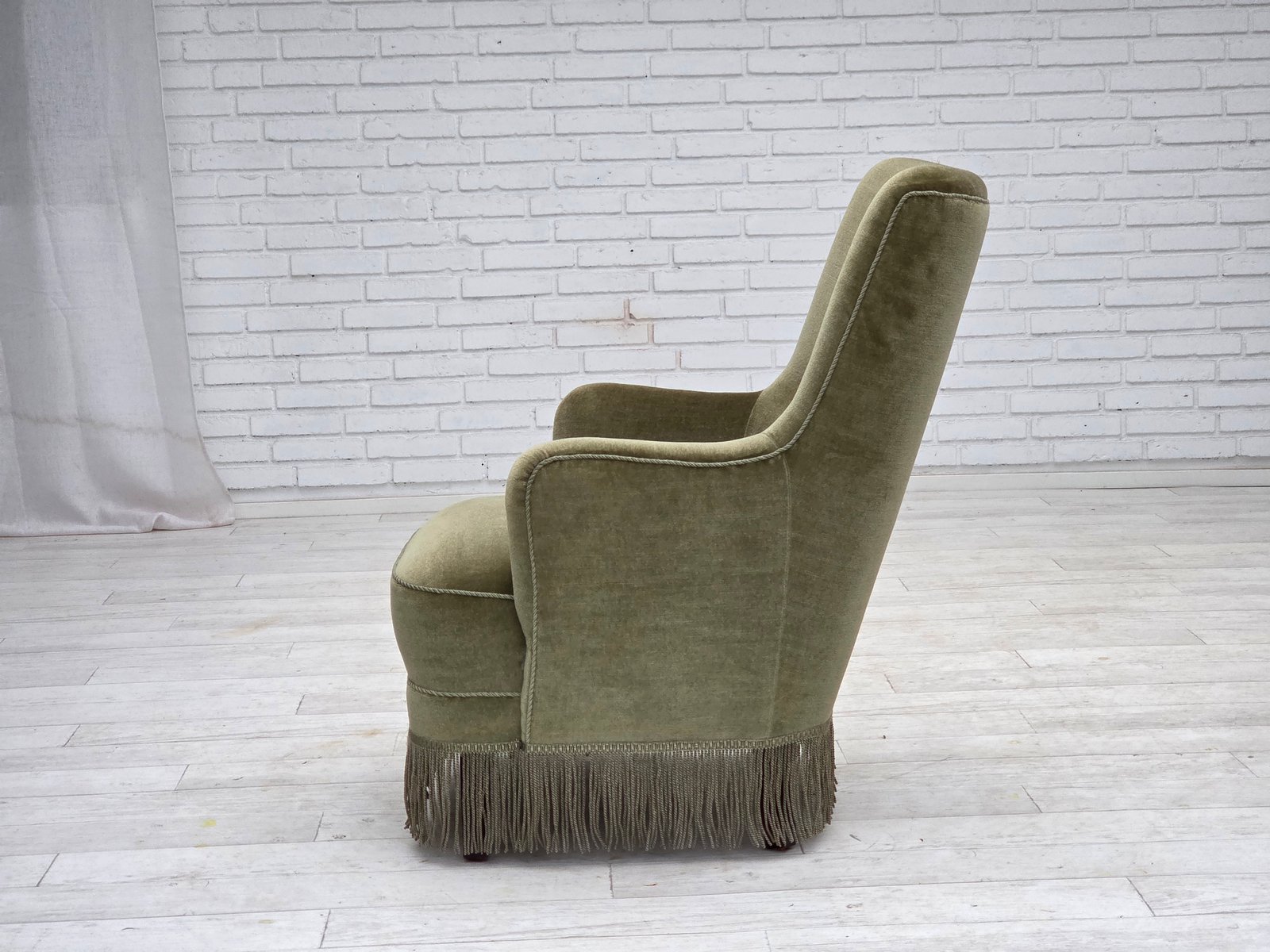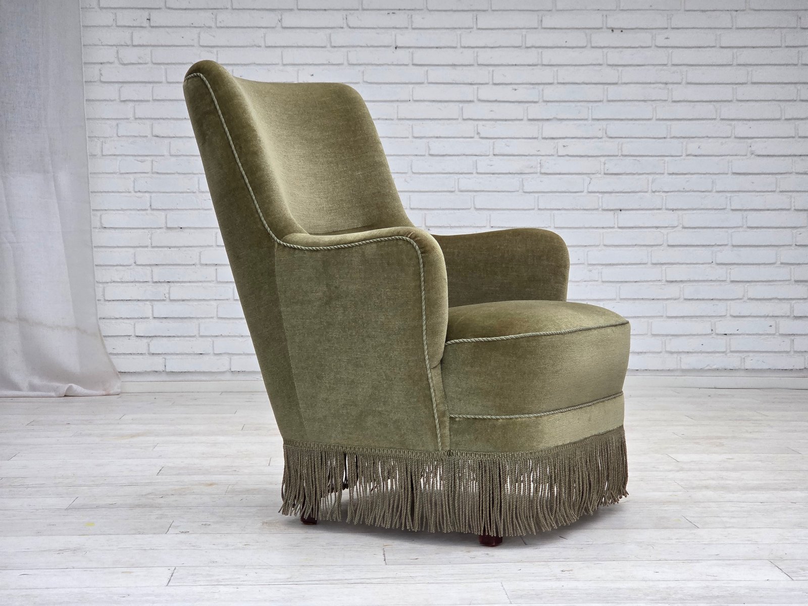 Danish Highback Armchair in Green Furniture Velour, 1970s