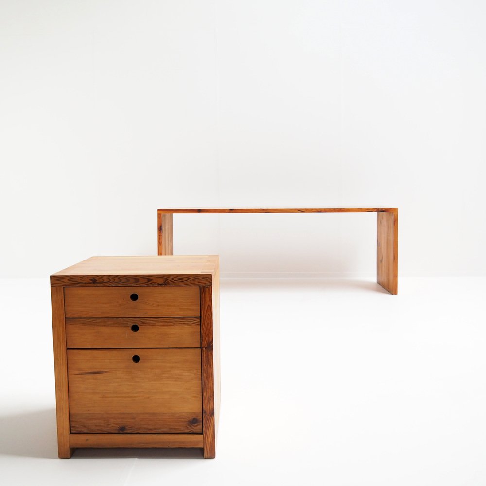 Desk with Drawer Unit in Pine by Ate Van Apeldoorn for Houtwerk Hattem, 1970s, Set of 2