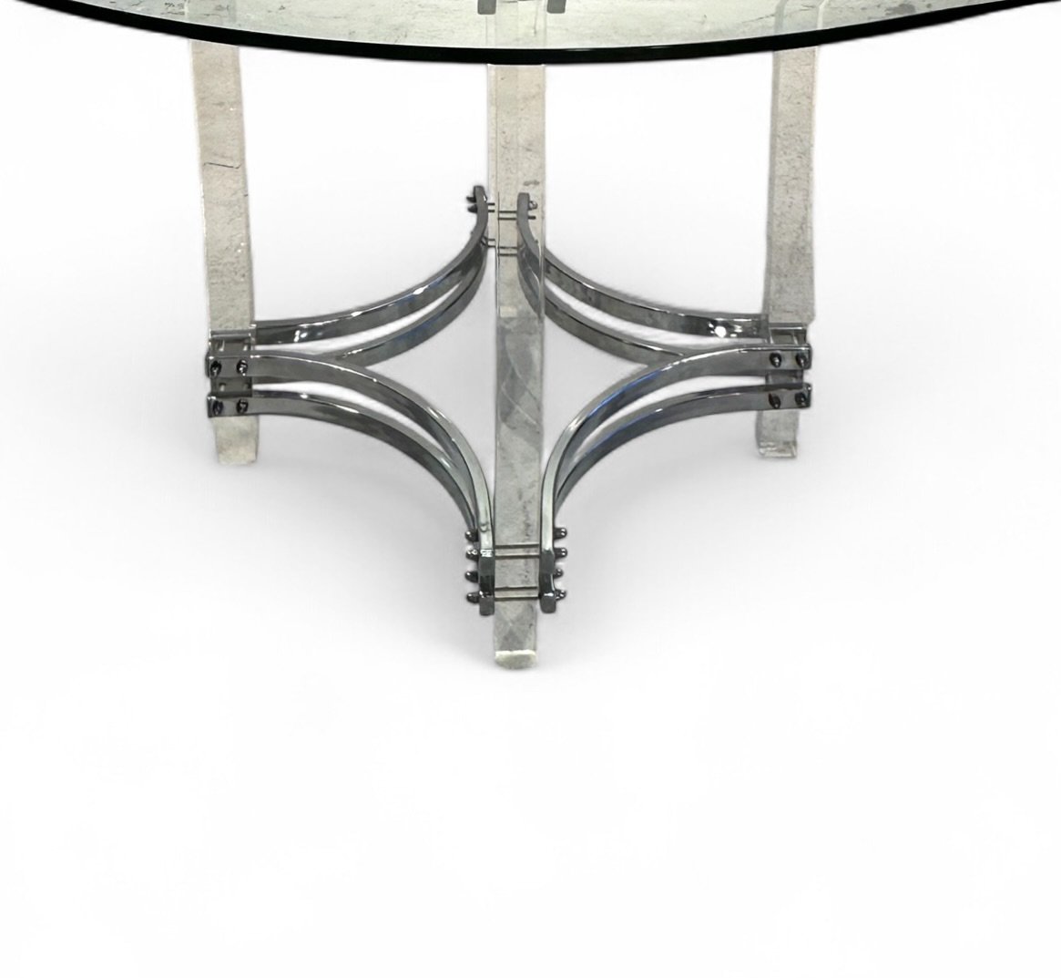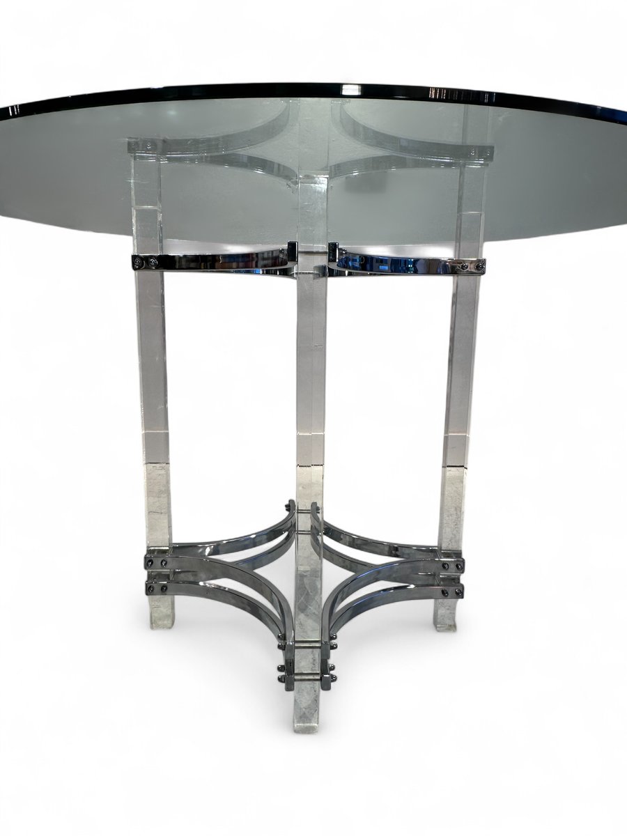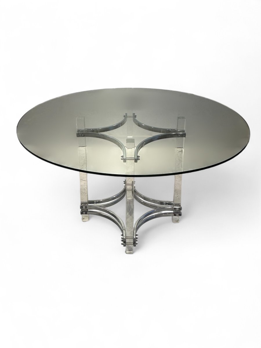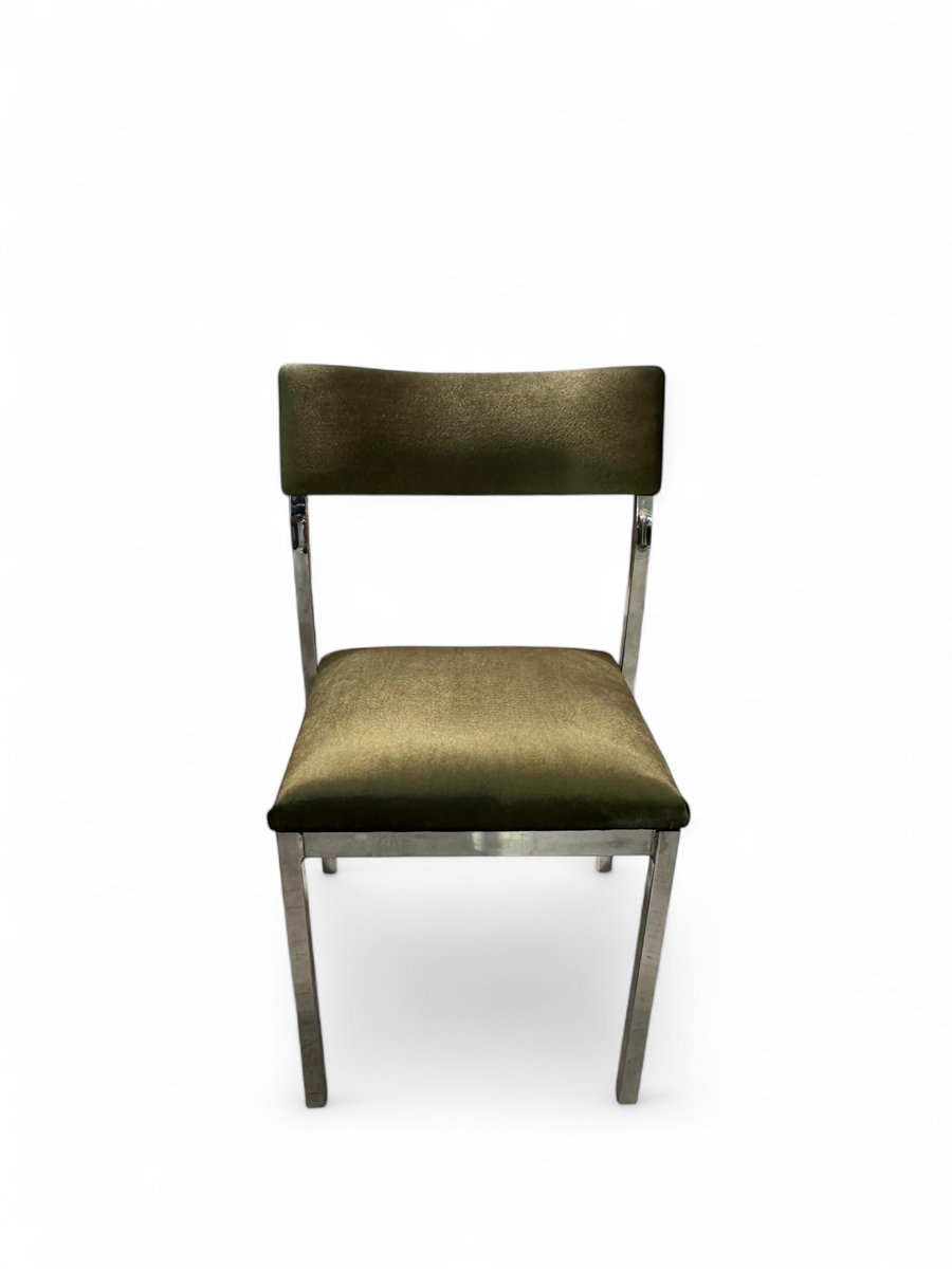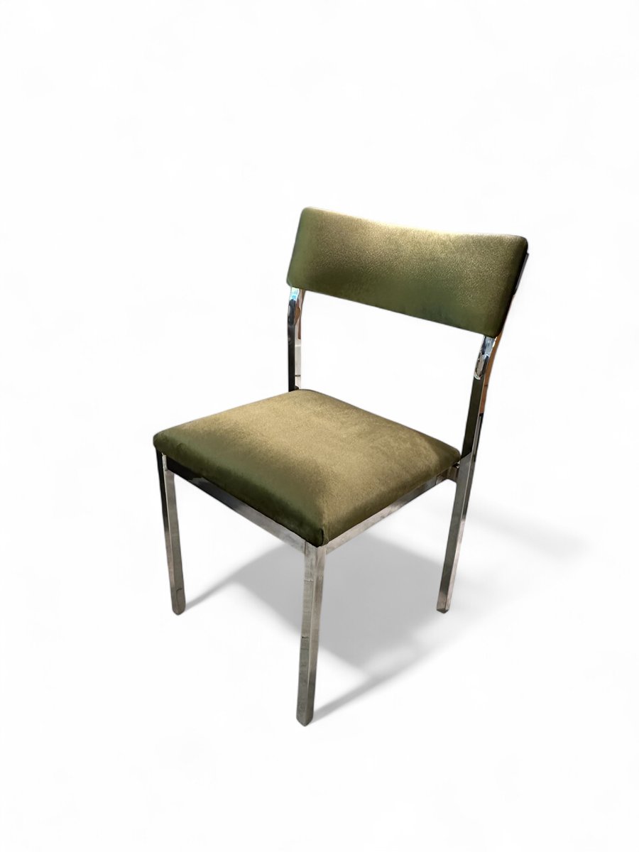 Dining Table with Chairs in Chrome and Green Velvet by Charles Hollis Jones for Merrow, 1976, Set of 7