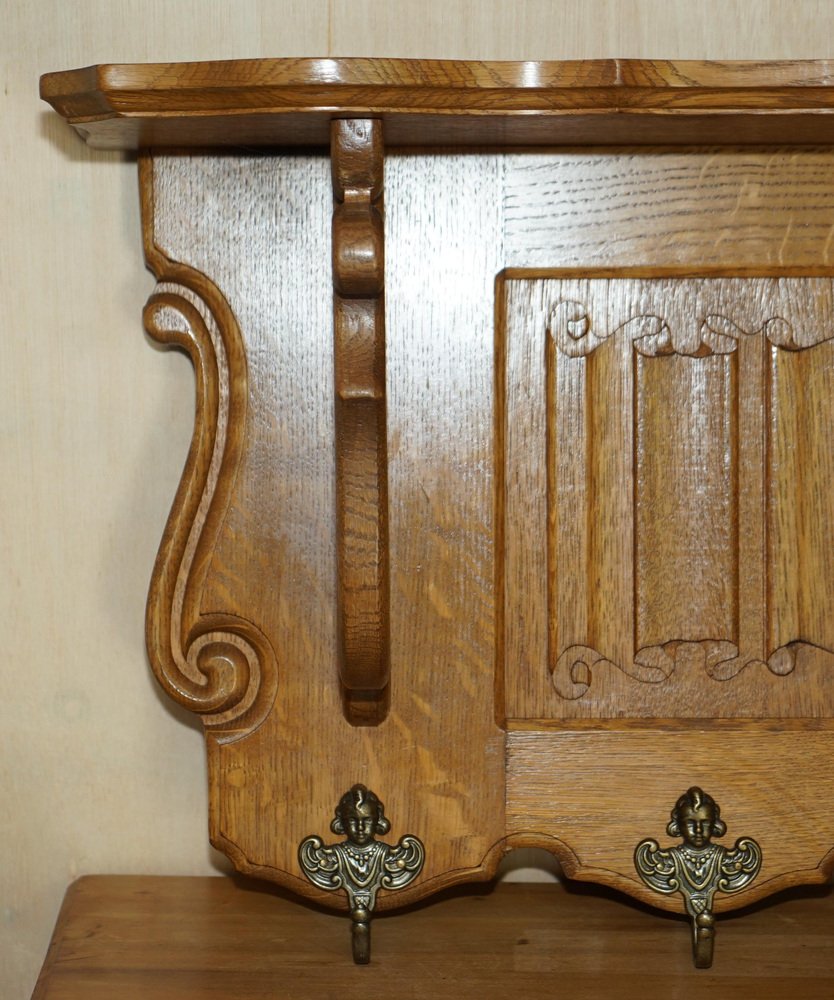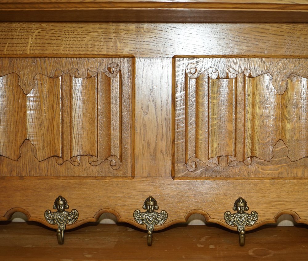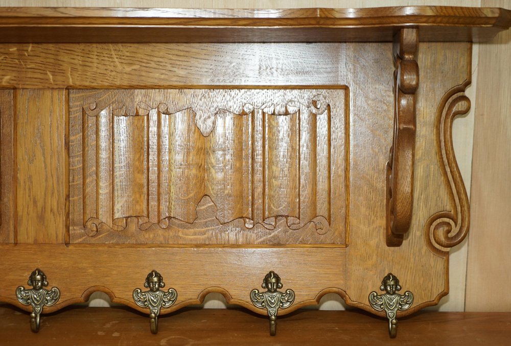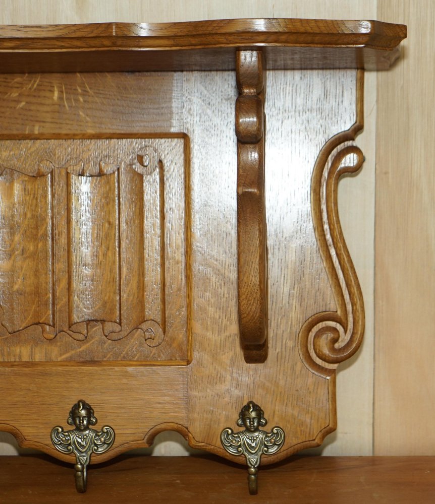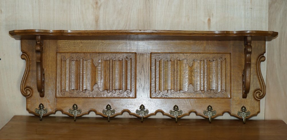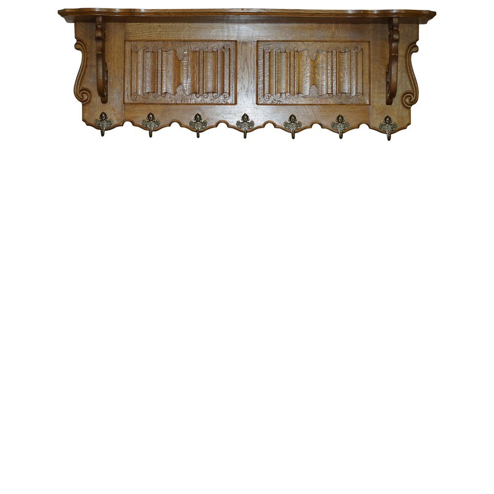 Dutch Carved Oak Wall Rack with French Royal Hooks