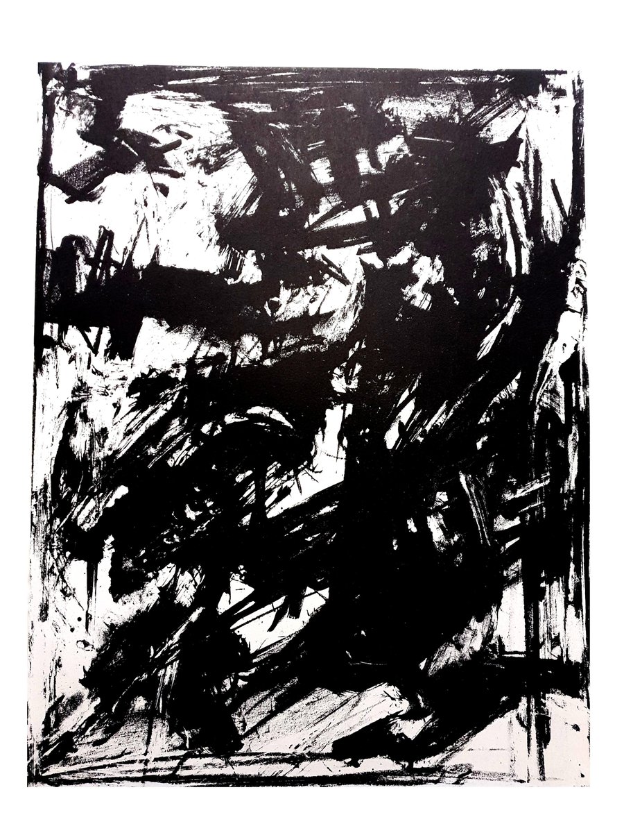 Emilio Vedova - Original Lithograph Abstraction 1961 XXe Siecle Dimensions: 32 x 24 Edition: G. di San Lazzaro. Emilio Vedova B. 1919, VENICE; D. 2006, VENICE, ITALY Emilio Vedova was born on August 9, 1919, in Venice. Essentially a self-taught artist, he joined the Milanese anti-Fascist artists’ association Corrente (Current, 1938–43), which also included Renato Birolli, Renato Guttuso, Ennio Morlotti, and Umberto Vittorini, around 1942. Vedova participated in the resistance movement from 1943 to 1945. In 1946 in Milan he collaborated with Morlotti on the manifesto “Oltre Guernica” (Beyond Guernica) and was a founding member of the Fronte Nuovo delle Arti (New art front, 1946–50), in Venice. He described his paintings of this period as Geometrie nere (Black geometries). Vedova’s first U.S. solo show was held at the Catherine Viviano Gallery, New York, in 1951. That same year he was awarded the prize for young painters at the first São Paulo Biennial. In 1952 he participated in the Gruppo degli Otto Pittori Italiani (Group of eight Italian painters, 1952–54), organized by Lionello Venturi, and exhibited at the Venice Biennale (following his 1948 debut). Vedova was the Italian representative at the first Documenta, Kassel, West Germany, in 1955 (again exhibiting in 1964) and won a Guggenheim International Award in 1956. He executed his first lithographs in 1958, the year he went to Poland for his retrospective at the Muzeum Narodowe, Poznań, and the Zachęta Narodowa Galeria Sztuki, Warsaw. In 1959 he exhibited his large L-shaped canvases, a cycle of work called Collision of Situations (Scontro di situazioni), in an environment created by Carlo Scarpa for Vitalità nell’arte (Vitality in art), which opened at the Palazzo Grassi, Venice, and traveled to the Stedelijk Museum, Amsterdam. This led to the first Multiples (Plurimi, 1961–65): freestanding, hinged, and painted sculpture-paintings made of wood and metal. Vedova was awarded the Grand Prize for painting at the 1960 Venice Biennale, the year in which he created moving light sets and costumes for Luigi Nono’s opera Intolleranza ’60. Vedova worked at the Deutsche Akademischer Austausch Dienst, Berlin (1963–65); Internationale Sommerakademie, Salzburg, Austria (1965–69, 1988); and Accademia di belle arti, Venice (1975–86). In 1965 and 1983 he traveled in the United States, where he lectured extensively. For the Italian Pavilion at Expo 67, Montreal, he created a light collage using glass plates to project mobile images across a large asymmetric space. After the late 1970s, he experimented with a variety of techniques and formats such as the mobile works on steel rails (Binary-Multiples [Plurimi-Binari]), monotypes, double-sided circular panels (Disks [Dischi]), and large-scale glass engraving. In 1995 he began a new series of multifaceted and manipulable painted objects called Disk-Multiple (Disco-Plurimo). In 2005 he created a new group of monotypes, Spaces/Opposite (Spazi/Opposti), which was exhibited at the Peggy Guggenheim Collection, Venice, the following year. In the last ten years of his life, Vedova’s contributions to art were recognized with numerous solo exhibitions as well as distinguished prizes, including the title of Cavaliere di Gran Croce della Repubblica Italiana (1996) and the Golden Lion for Lifetime Achievement at the Venice Biennale (1997). Vedova continued to actively experiment in painting and printmaking until he died on October 25, 2006, in Venice.