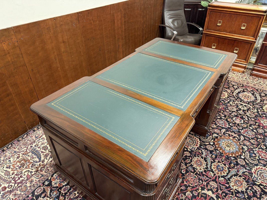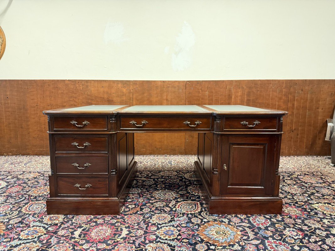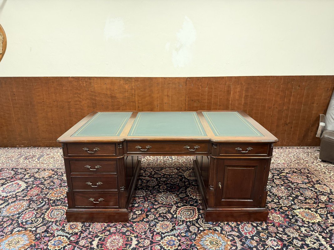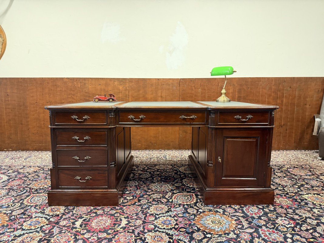 English Partner Desk in Wood and Leather