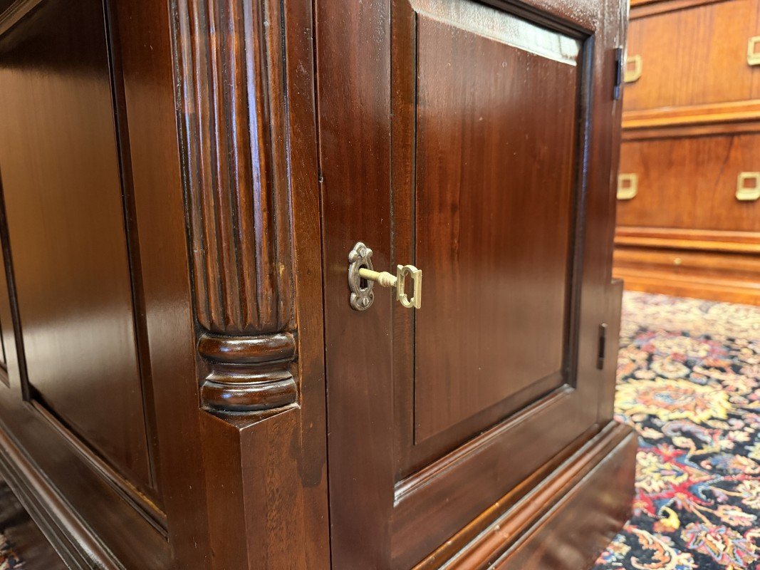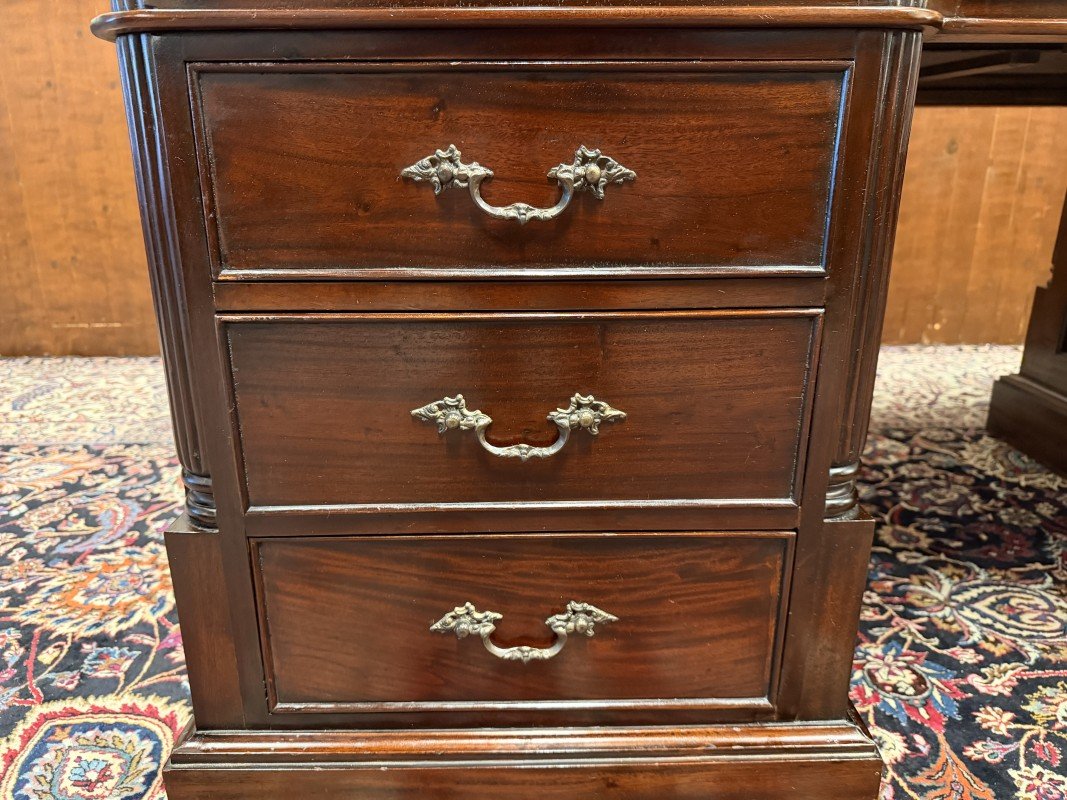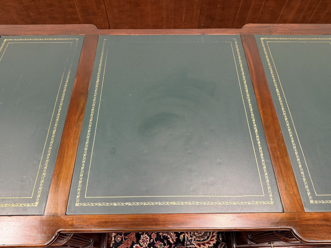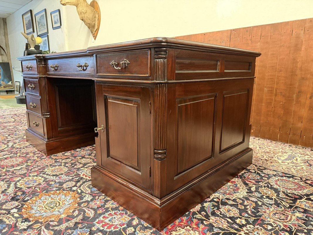 English Partner Desk in Wood and Leather