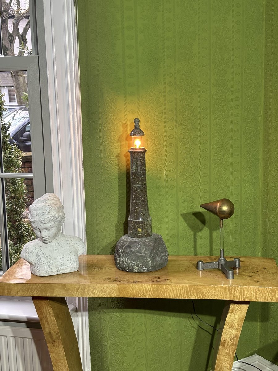 English Serpentine Stone Lighthouse Lamp 1930s by Unknown for Unknown, 1920s