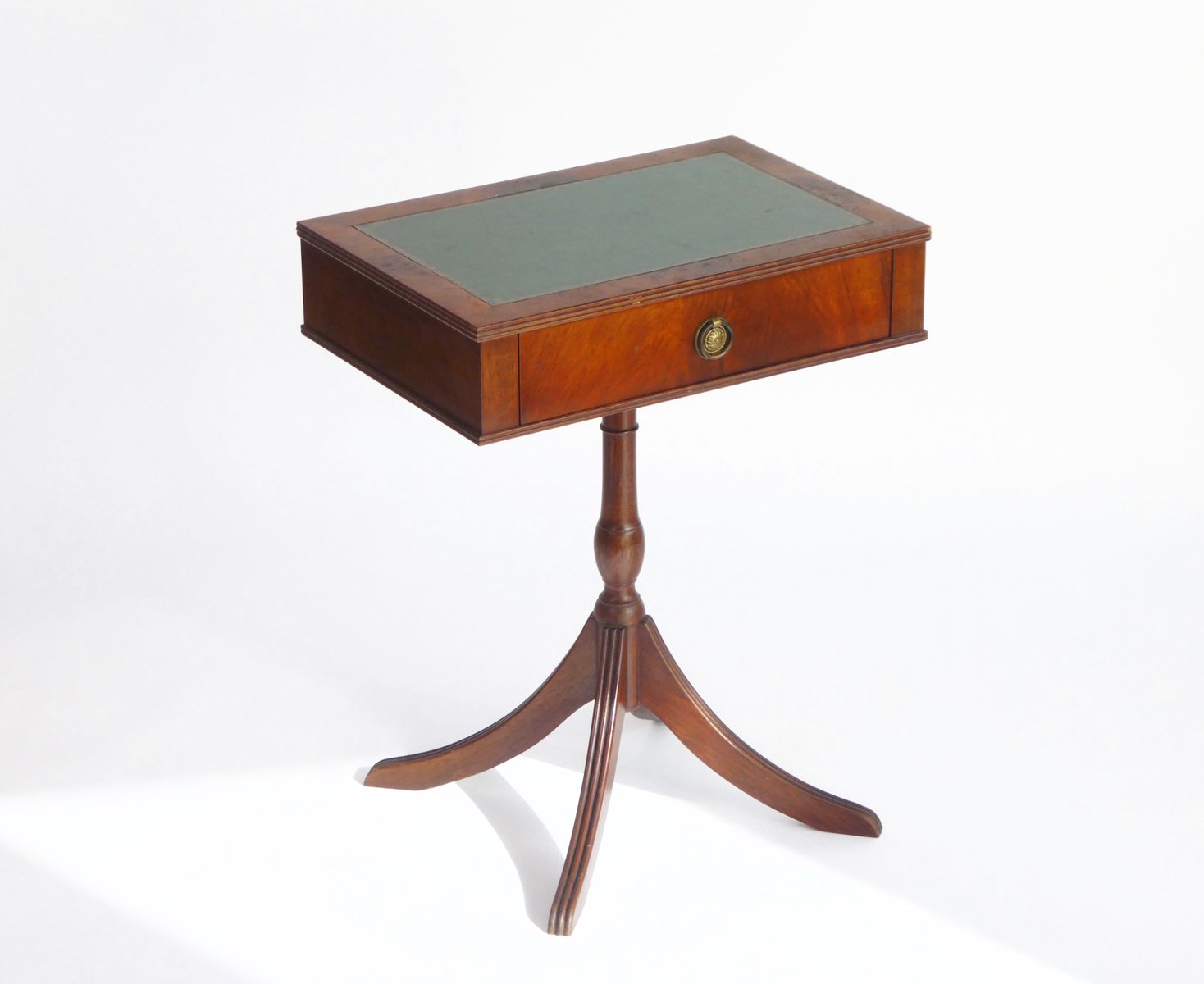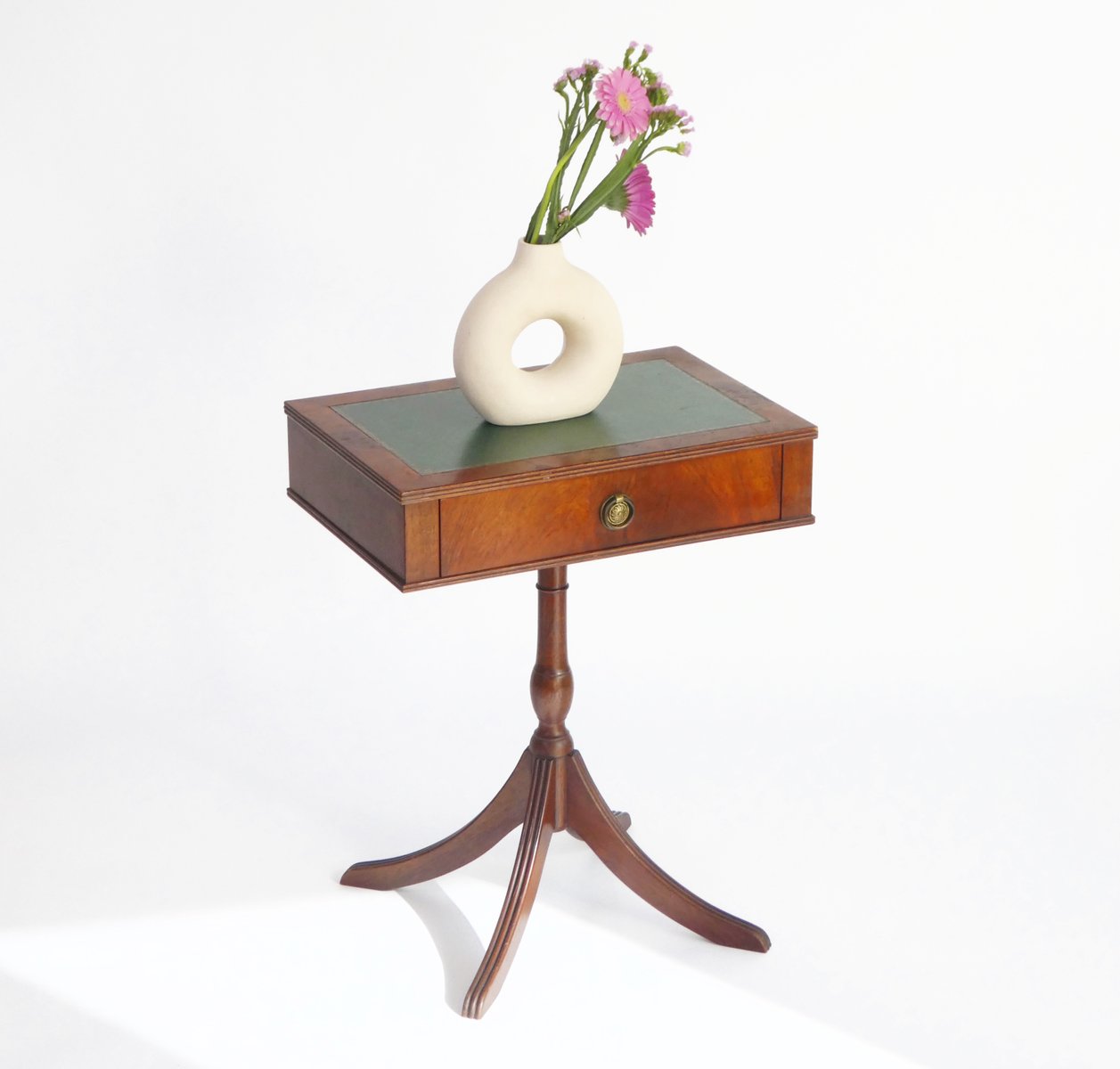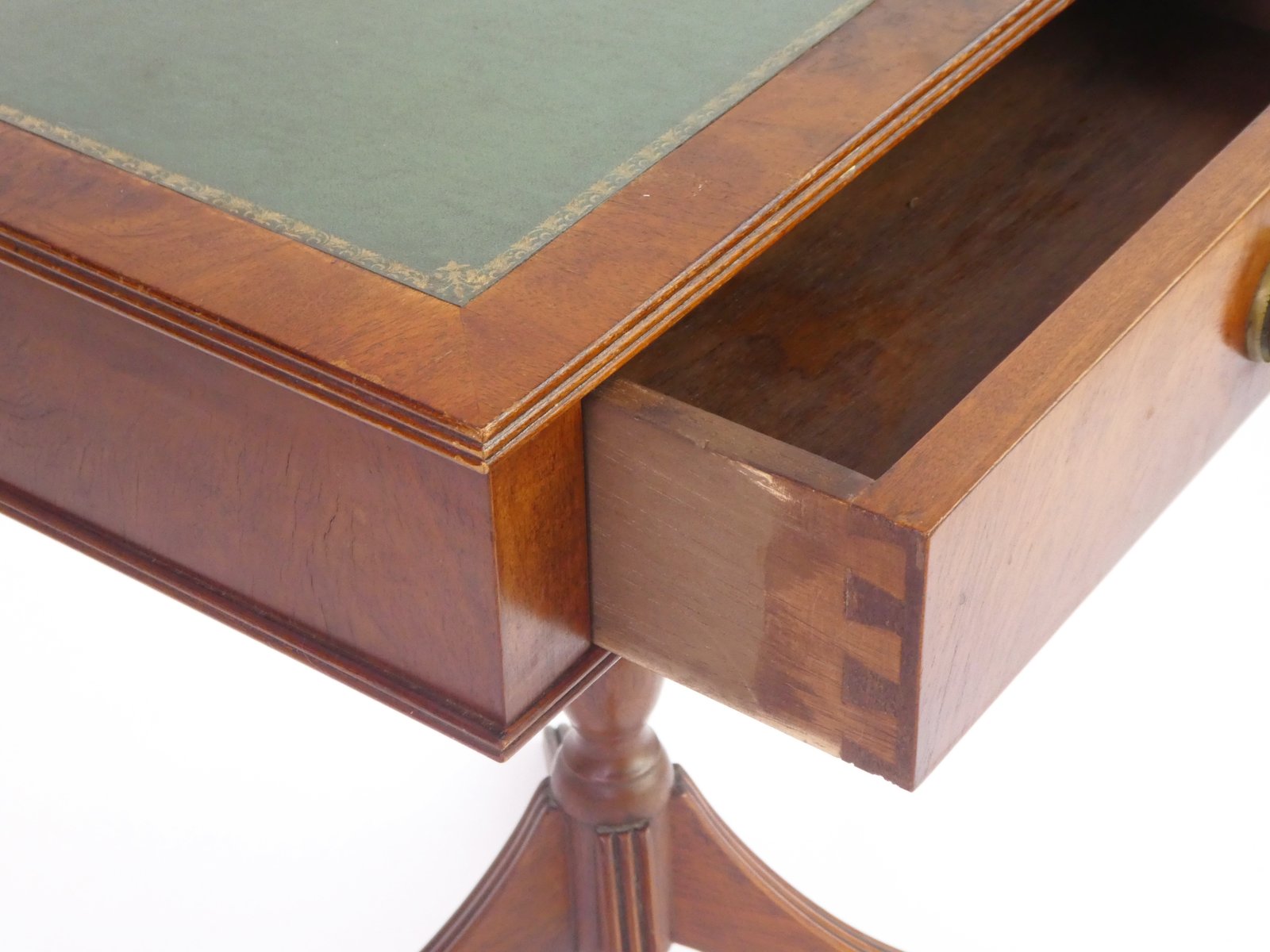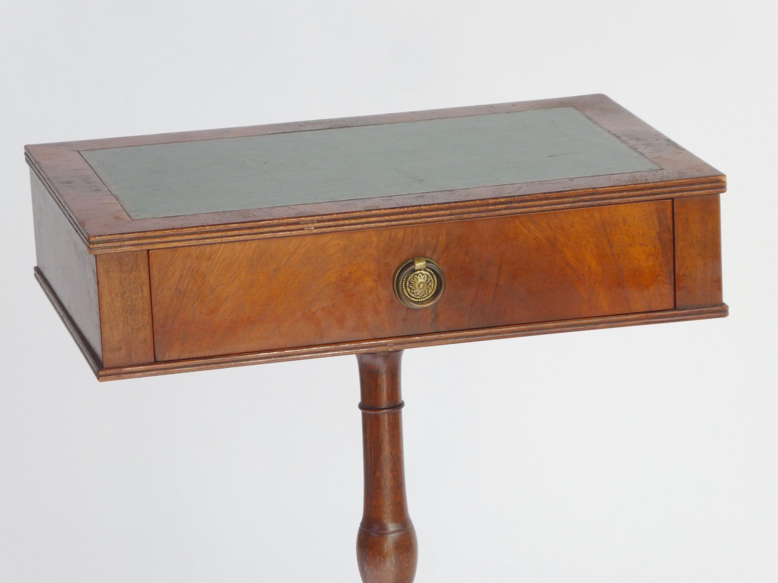 English Victorian Rectangular Wooden Table with Green Leather Top and Drawer, 1920s