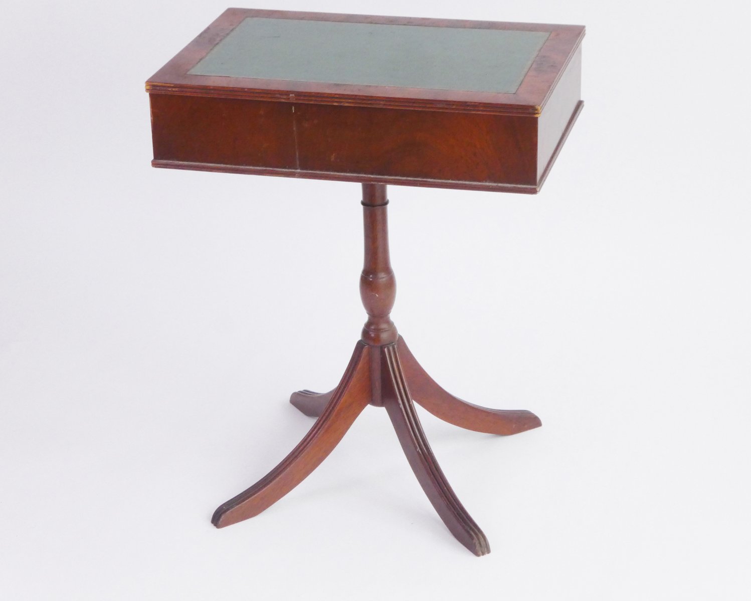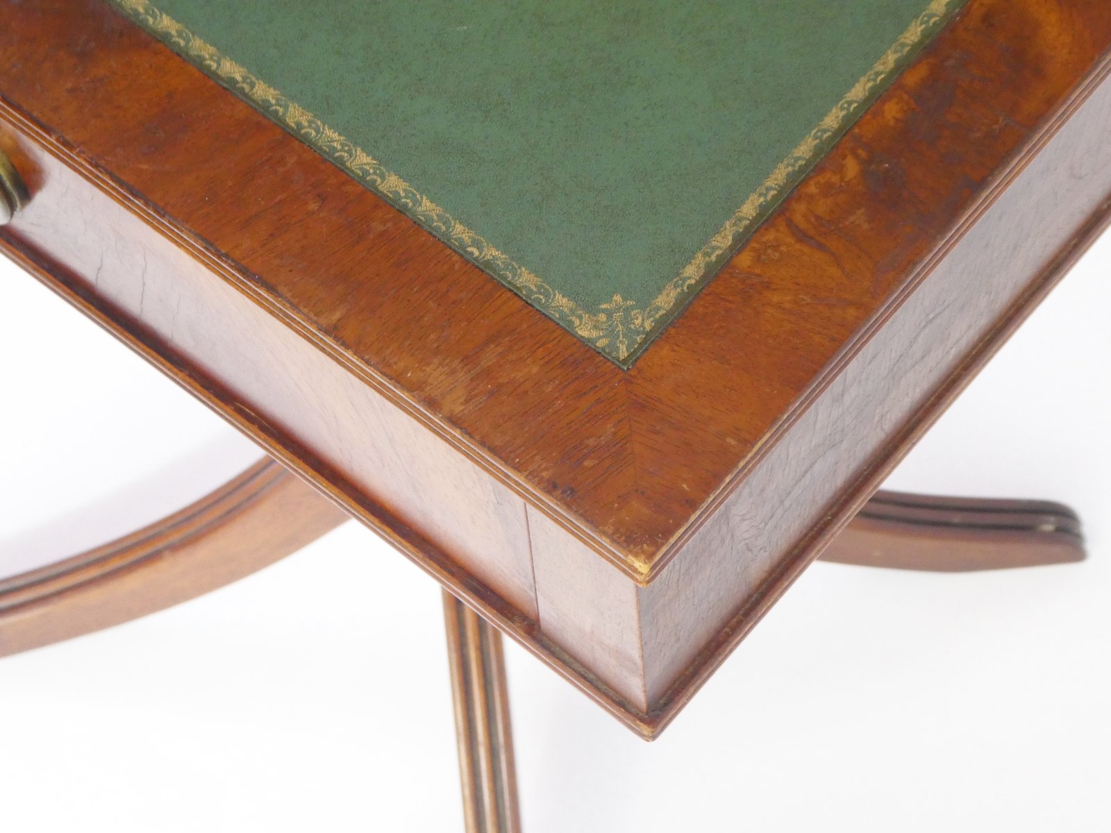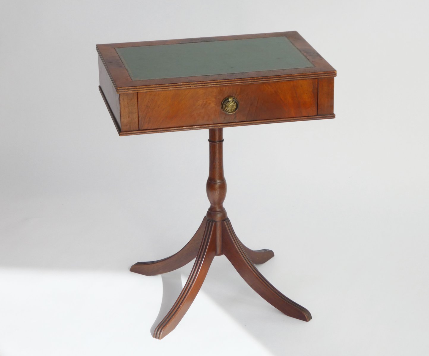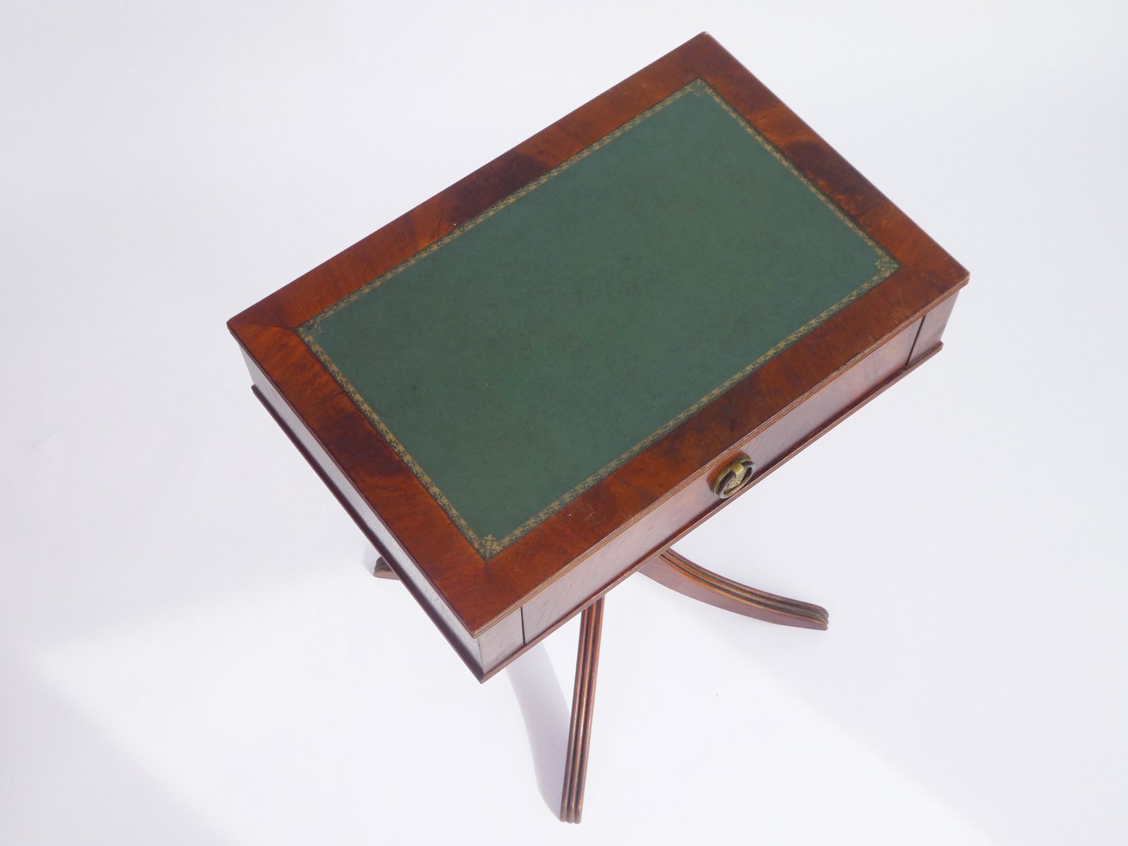 English Victorian Rectangular Wooden Table with Green Leather Top and Drawer, 1920s