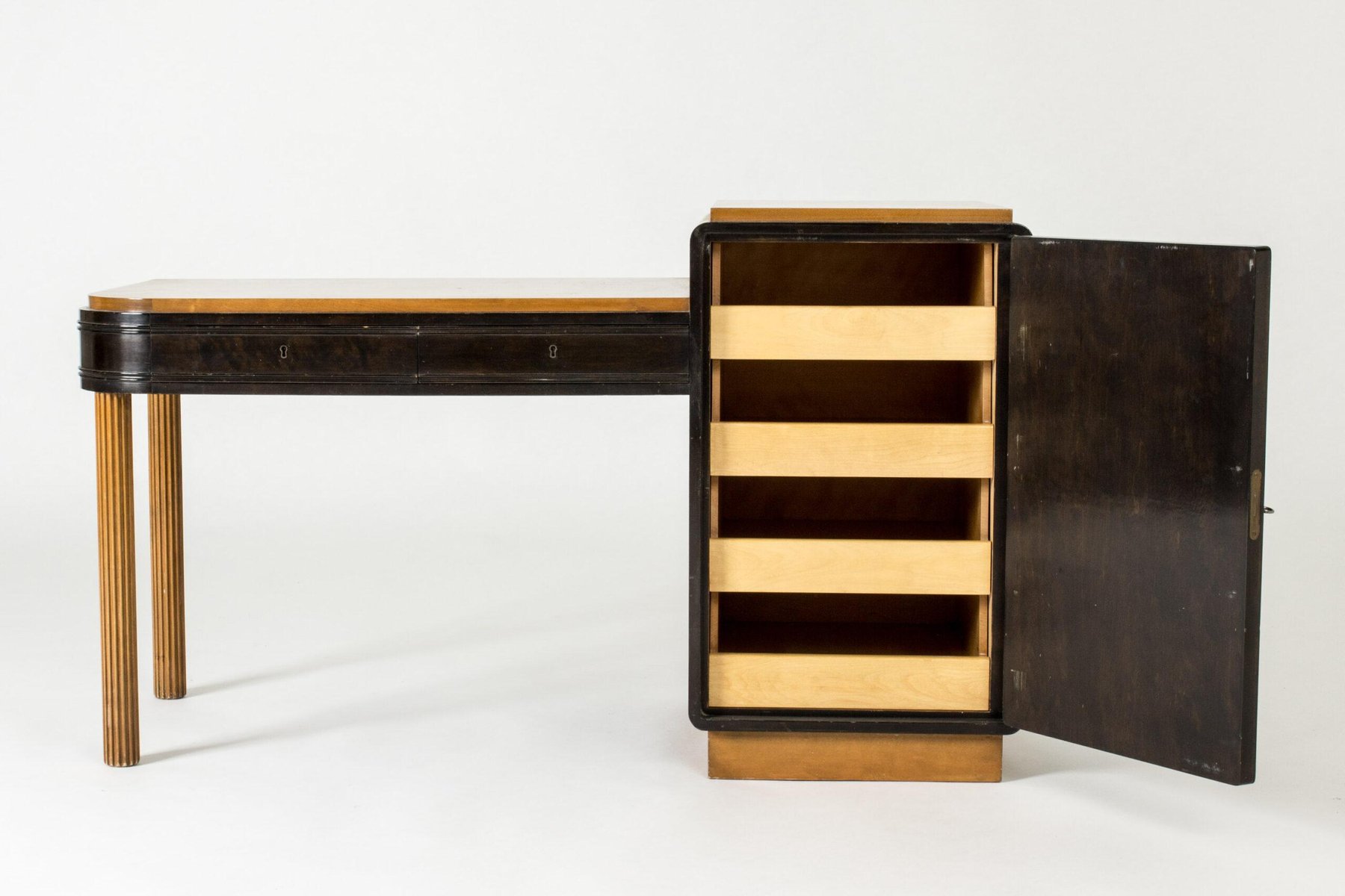 Throughout the 1920s, Hjorth worked with various manufacturers including H. Joop & co, Myrstedt & Stern, Jonssons, and Svenska Möbelfabrikerna in Bodafors. Notably, in 1923 Hjorth was the head of the assembly section of the Jubileumsutställningen (Jubilee Exhibition) in Gothenburg—an exhibition which, the British critic P. Morton Shand characterized as the beginning of Swedish dominance in the decorative arts. Wishing to spread Swedish design further around the world, Hjorth, together with his contemporaries, Carl Hörvik (1882-1954) and Carl Malmsten (1888-1972), represented Stockholm at the exhibition of contemporary Swedish Decorative Arts at the Metropolitan Museum in New York 1927. This exhibition was instrumental in introducing Swedish decorative arts to America.