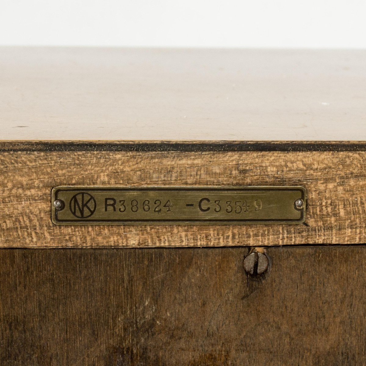 From 1927 until 1938, Hjorth was the chief architect and designer at the department store Nordiska Kompaniet (NK) in Stockholm—which was known as one of the most important producers of modernist furniture in Sweden. During this time, Hjorth designed both public and private interiors, and worked with international clients including Iranian royalty. His first project for NK was a stand for the World Fair in Barcelona in 1929, during which he exhibited the Louis Cabinet and Caesar Cabinet. In the 1930s, Hjorth designed furniture out of pine meant for serial production for the summer houses he designed. These (usually unlabeled) pieces mixed handicraft with international modernism, and were named for Stockholm's archipelago islands including Blidö, Sandhamn, Toro and Lovö.