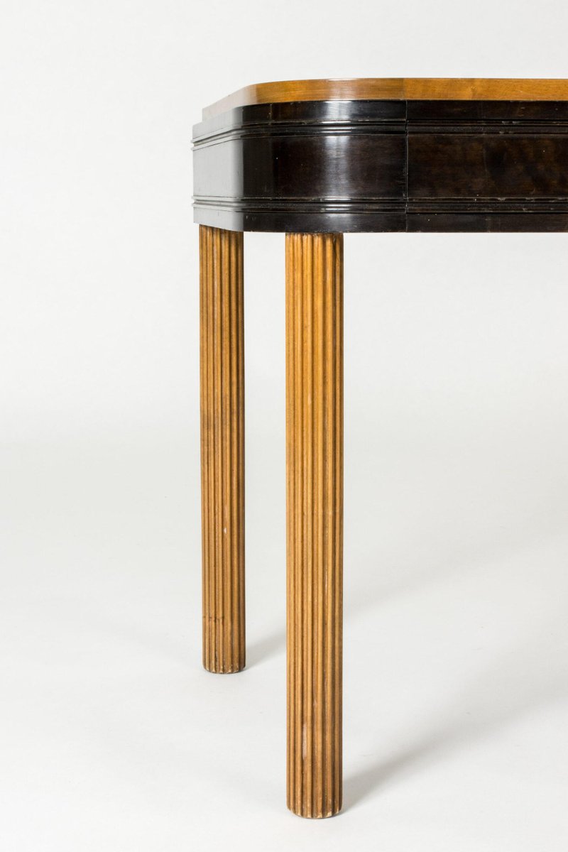 Hjorth's designs—from the luxuriousness of neo-classicism to the severity of functionalism—are sharply distinct in style, materials, and character. Unike many of his contemporaries however, Hjoth did not conform to the socially-oriented ideas produced by Svensk Form (the Swedish Society of Crafts and Design). He often incorporated playful ornamentation from different historical periods from which he was inspired, such as French Art Deco—using mixed exotic woods, bright colors, and textiles. Often omitted from historical discourse on early-20th century Scadninavian design, Hjorth has become a rather unknown entity in the design world and his achievement are under-appreciated. The lack of published or archived works contributes to his anonymity and obscurity. Although Hjorth did not follow the design narrative of the era, he certainly played a significant role in the development of Sweden’s international design reputation, his style eventually absorbed into design characteristics of modernism in Sweden.