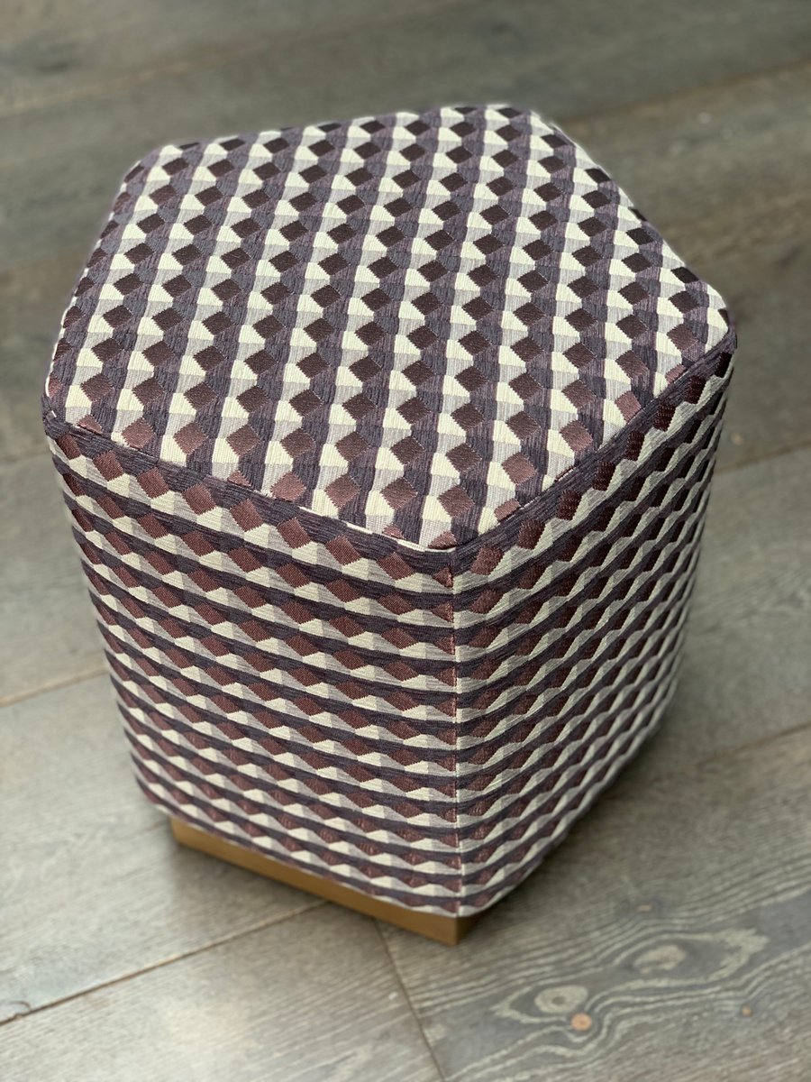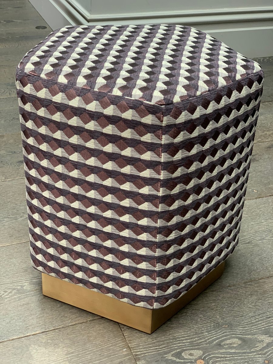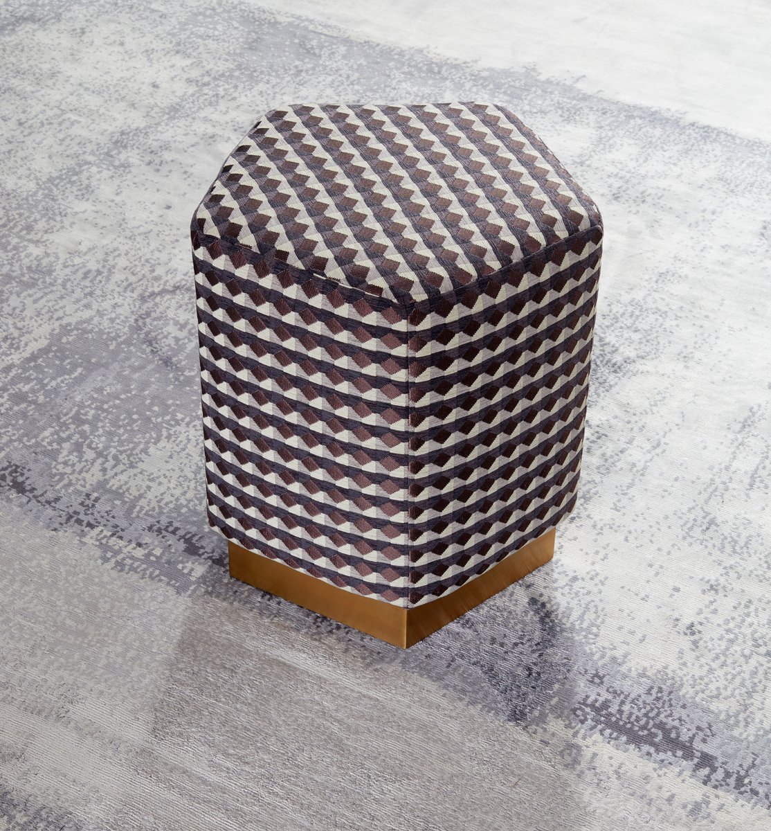 Ermes Pentagon Pouf Rio II in Fabric and Brass Plinth by Casa Botelho