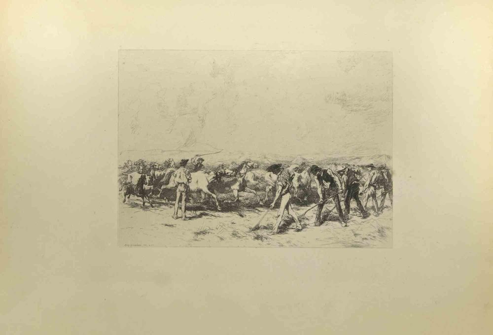 Eugène Burnand, The Framers, Etching, Late 19th Century