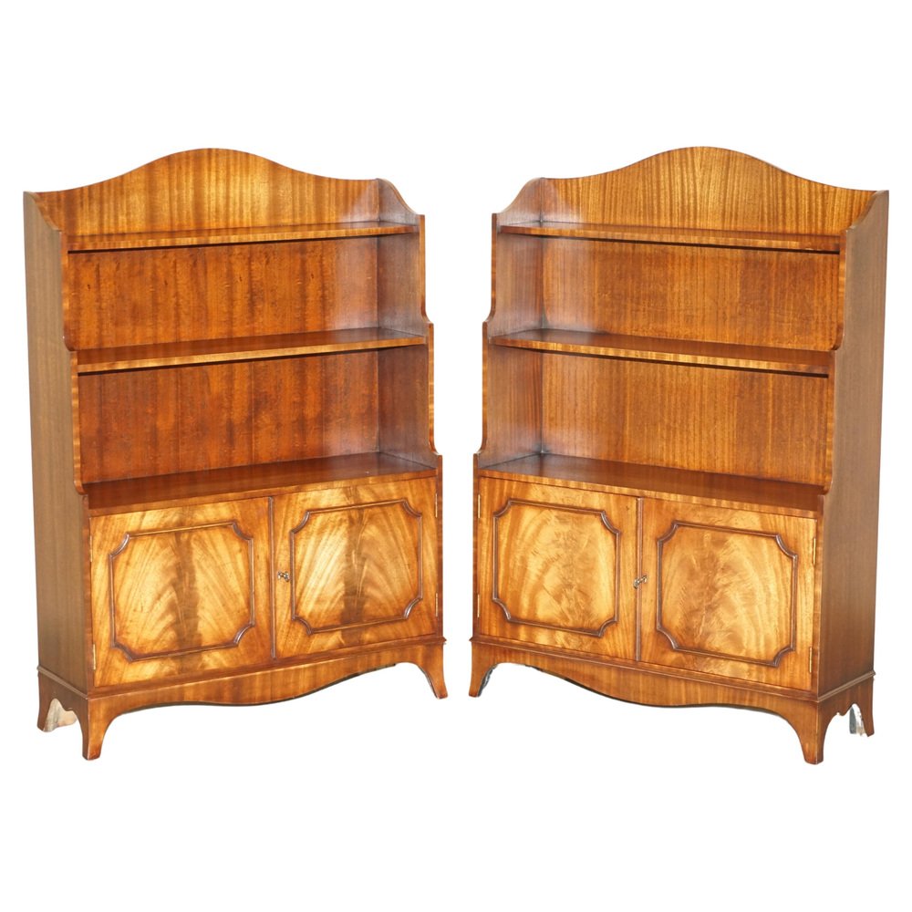 Flamed Hardwood Dwarf Waterfall Open Bookcases, 1950, Set of 2