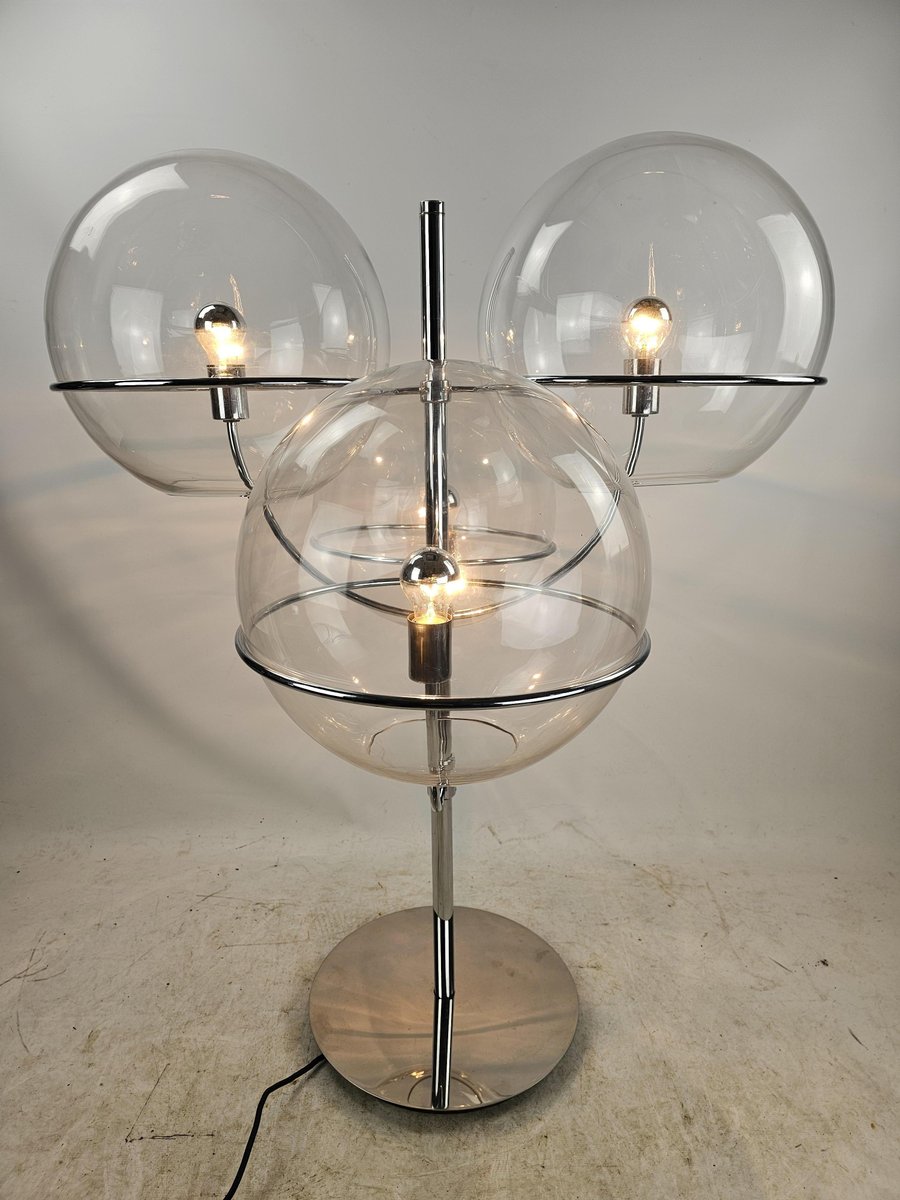 Large Italian Floor Lamp with Two Glass Discs, 1970s