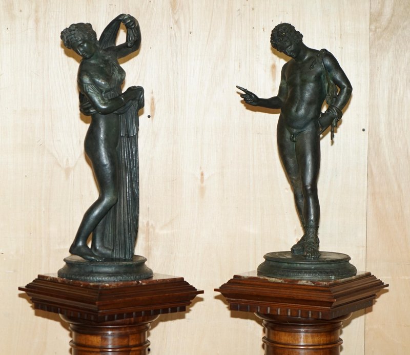 Fonderia Sommer Napoli, Pair of Sommer Foundry Narcissus and Venus Callipygian, Bronze