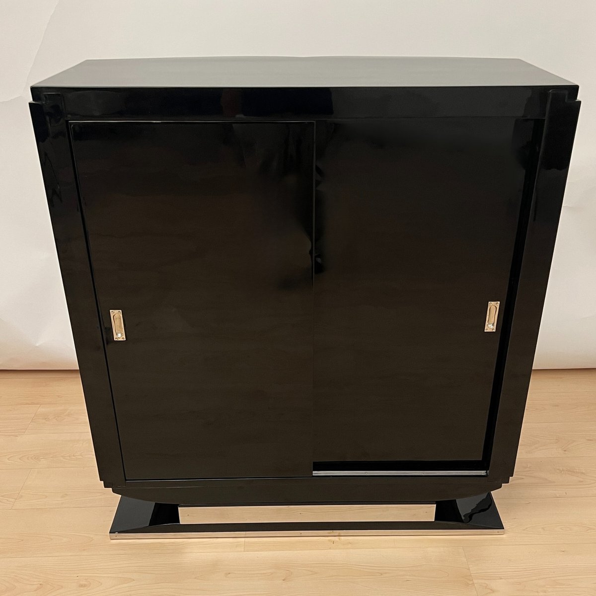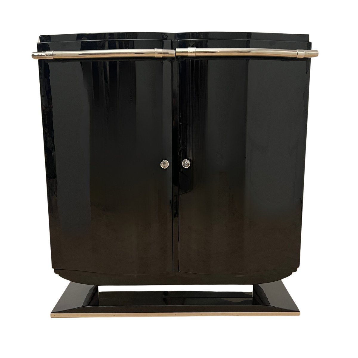 French Art Deco Bar Sideboard in Black Lacquer and Chrome, 1930