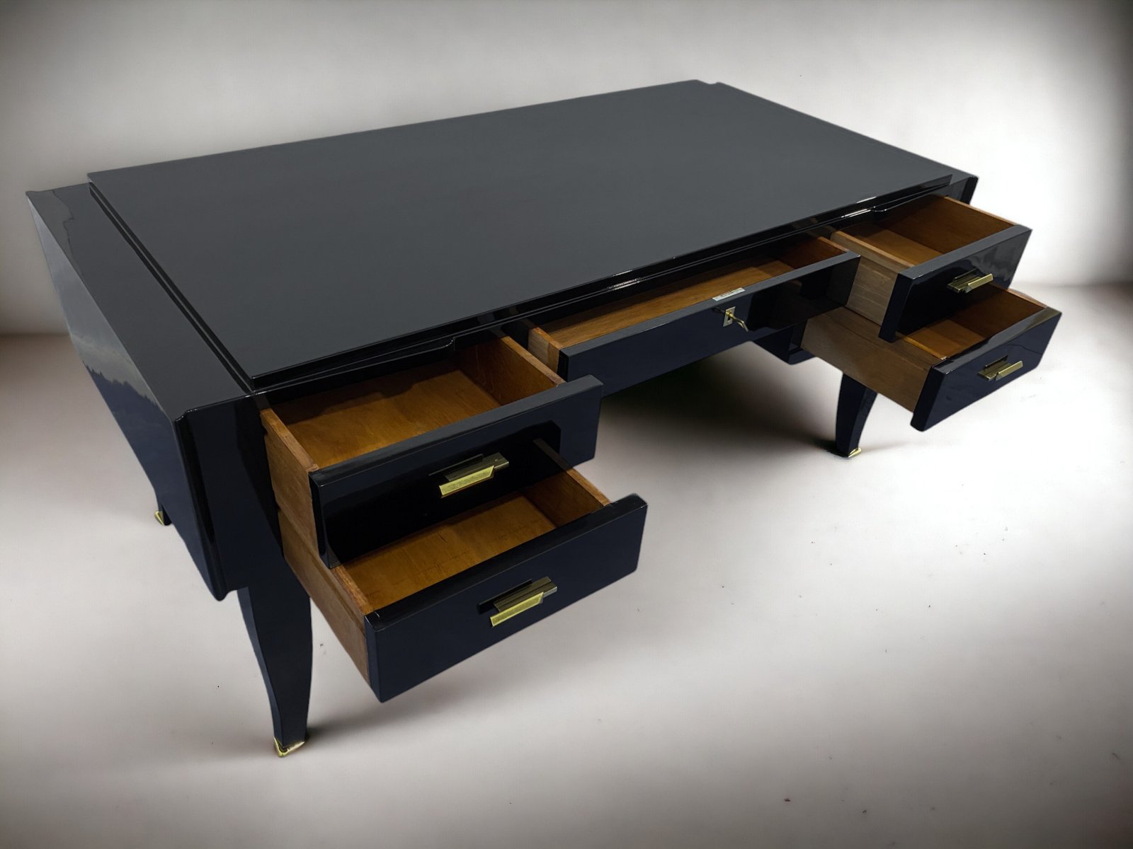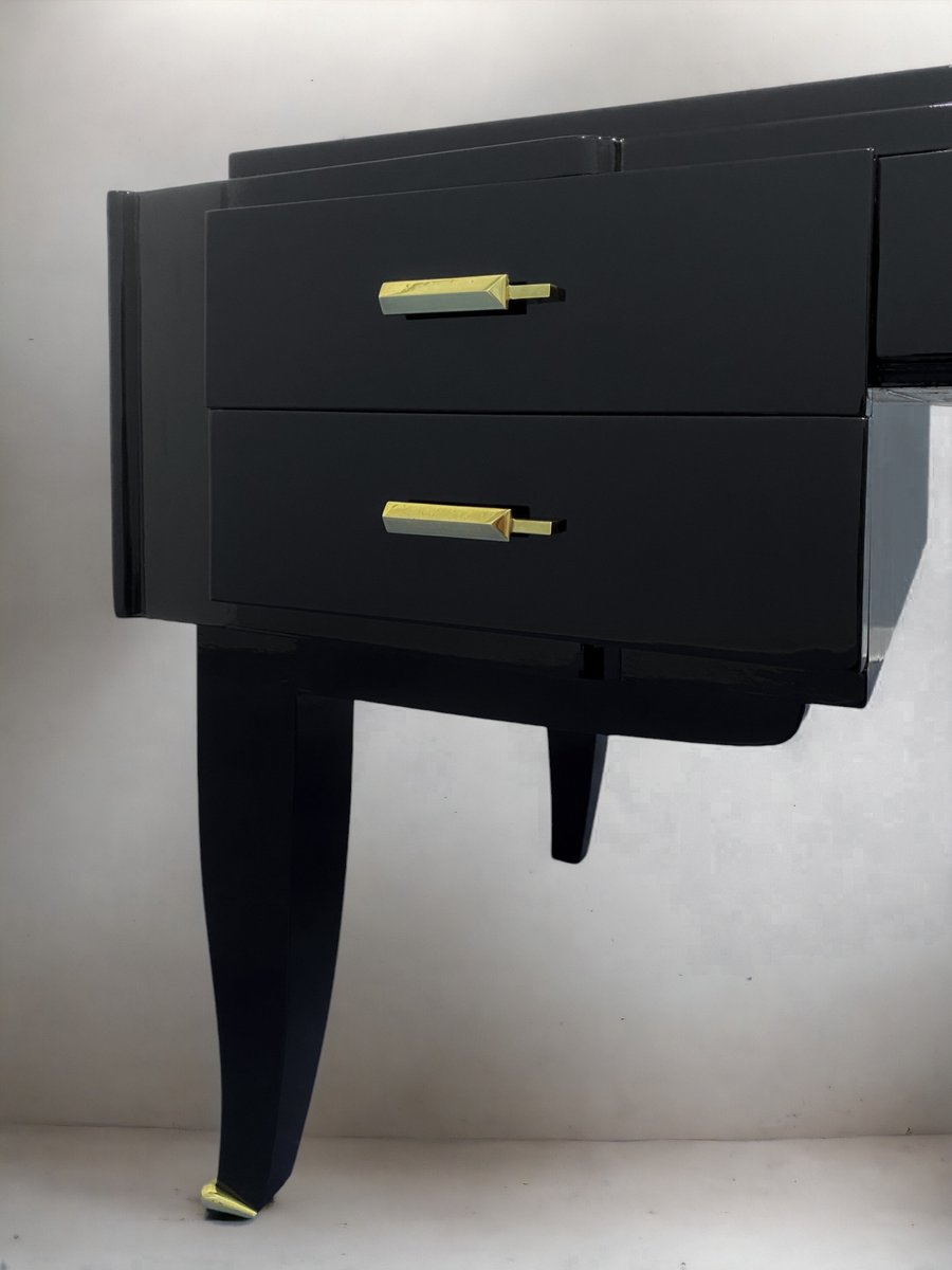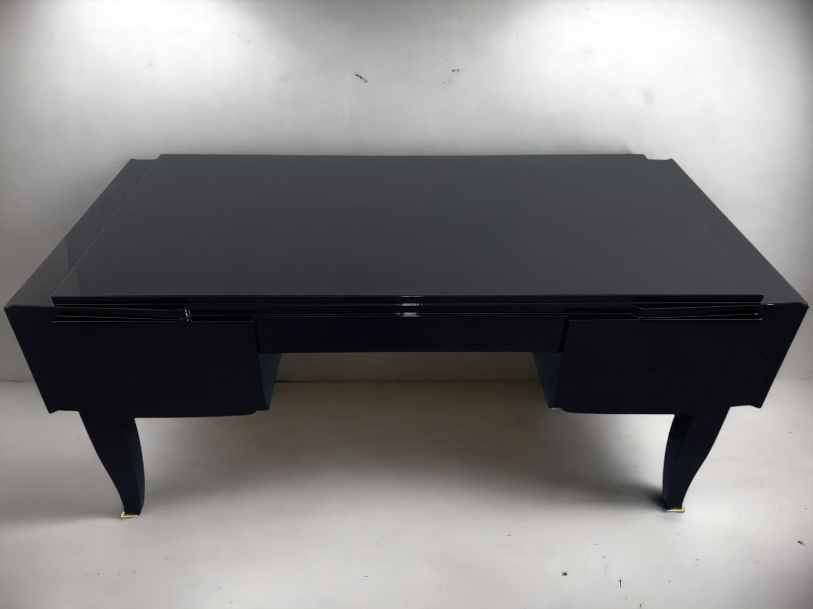 French Art Deco Black Lacquered Executive Desk, 1930s