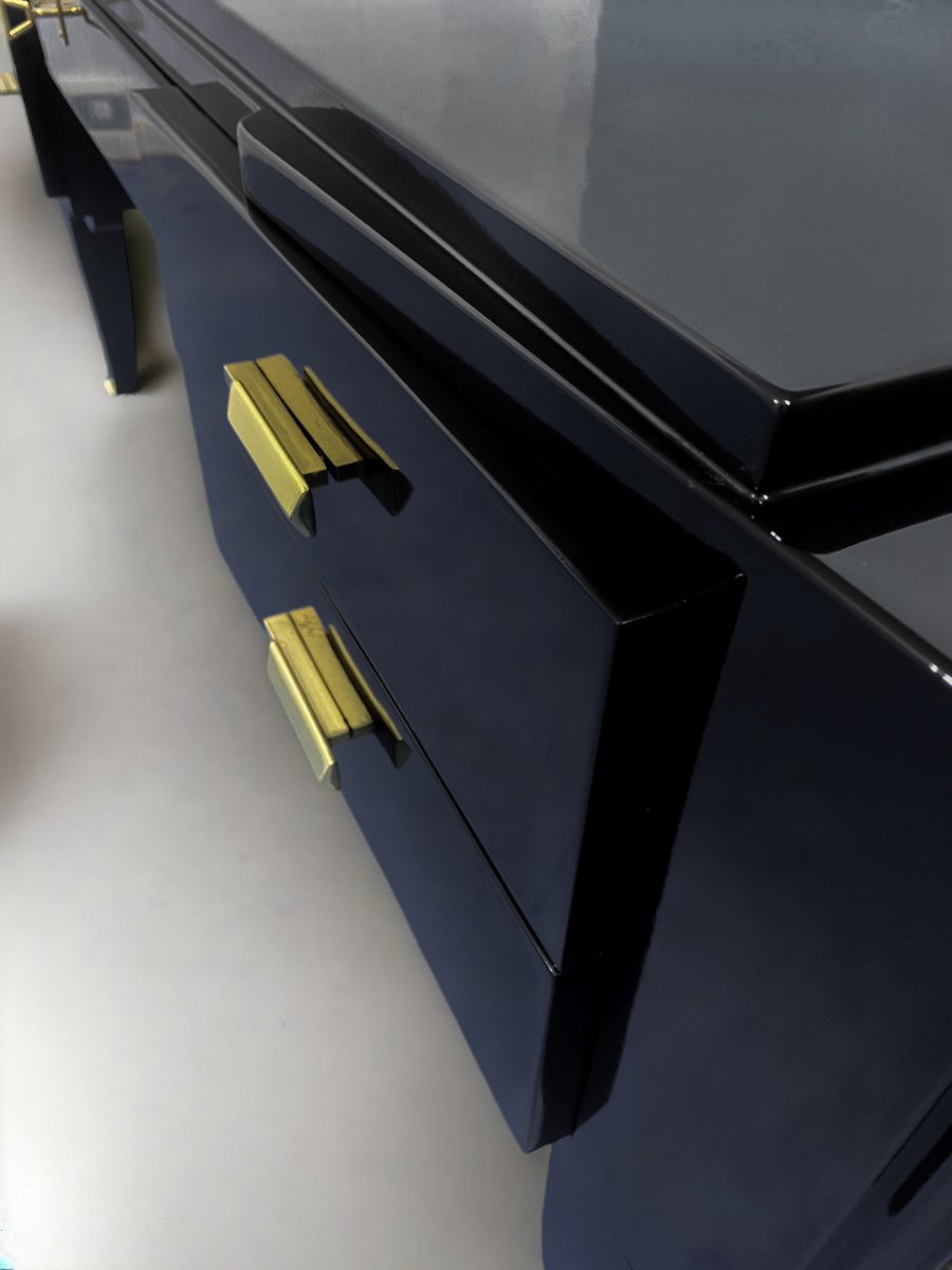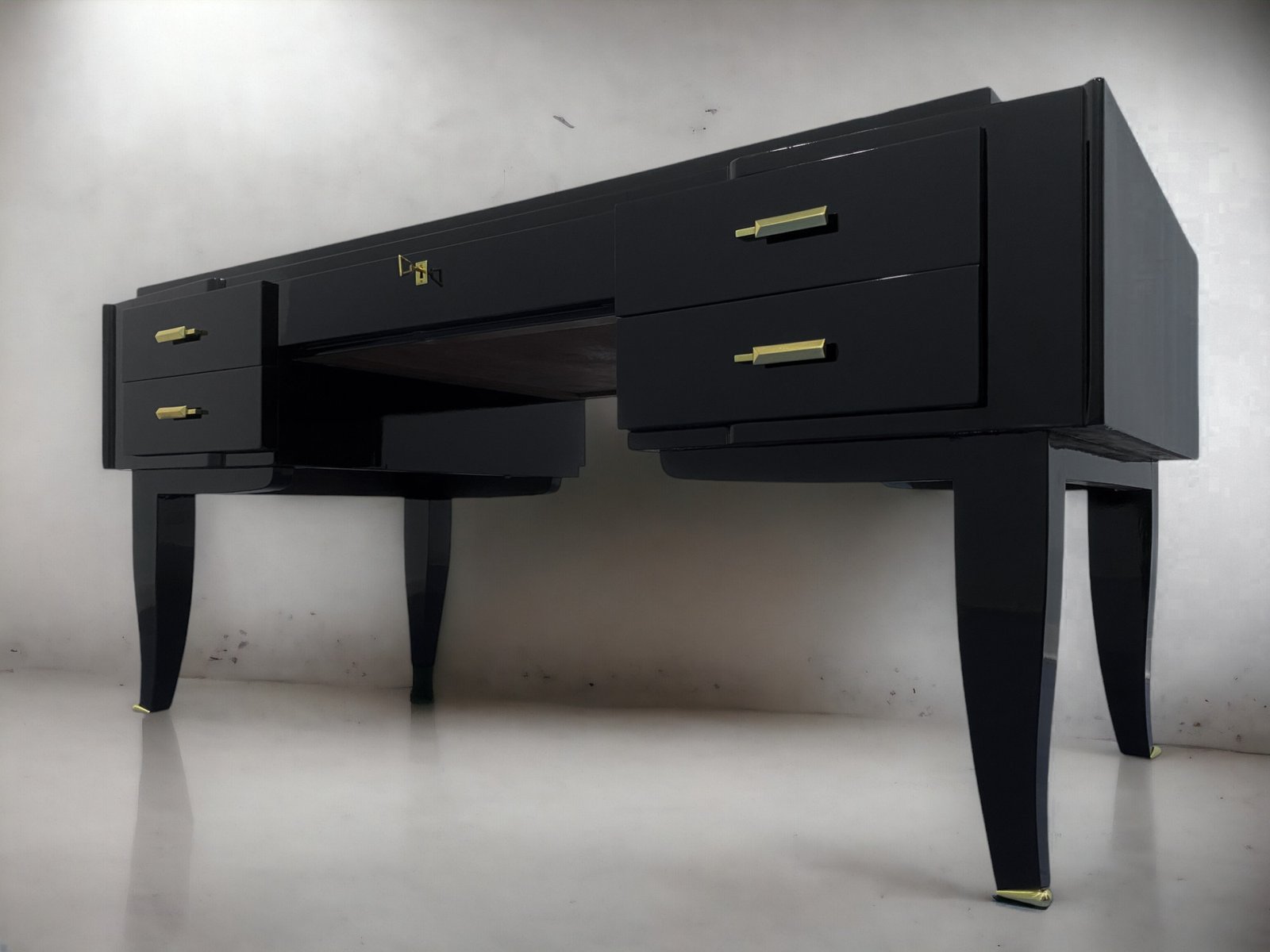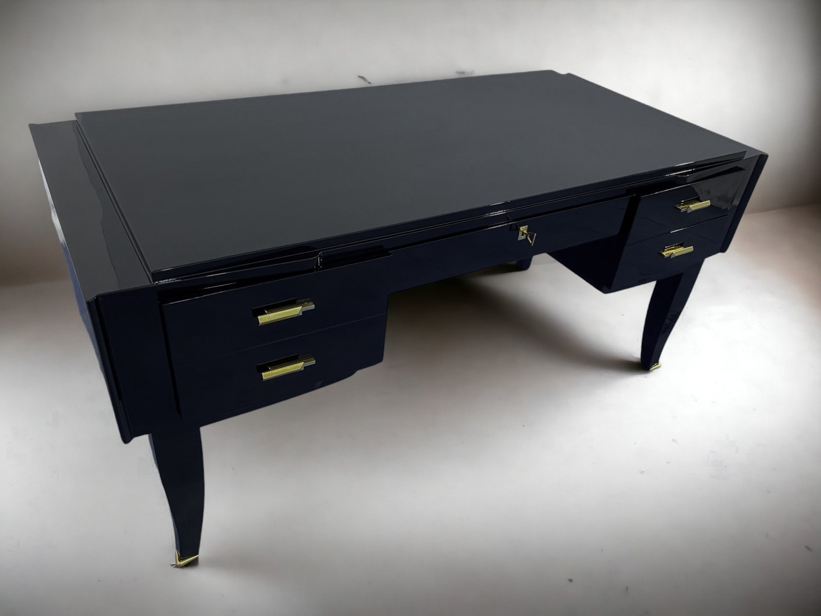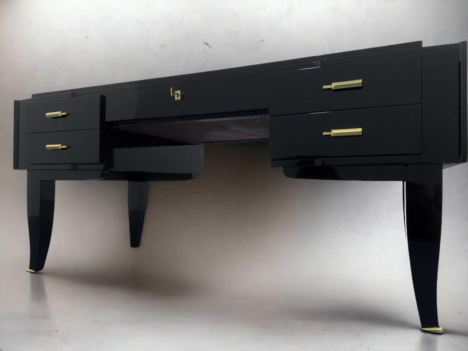 French Art Deco Black Lacquered Executive Desk, 1930s