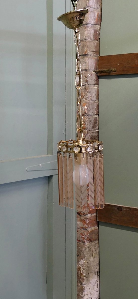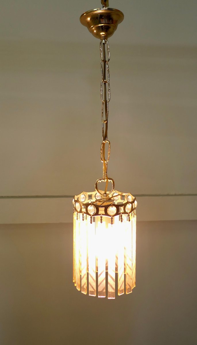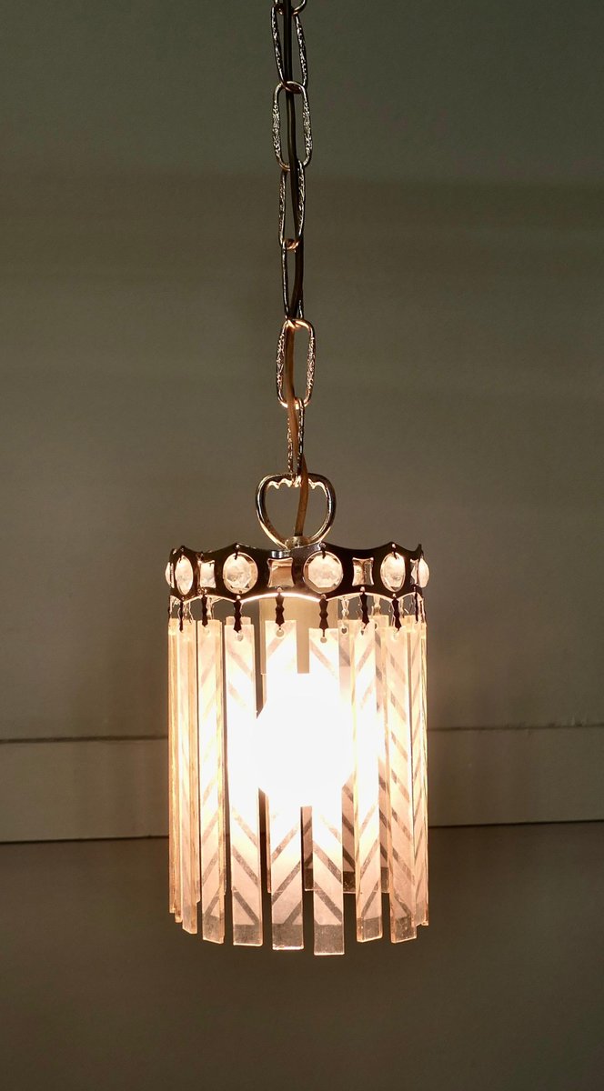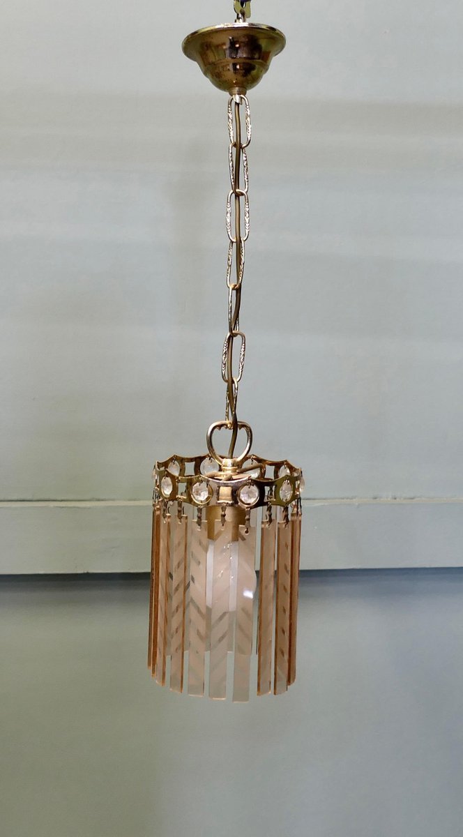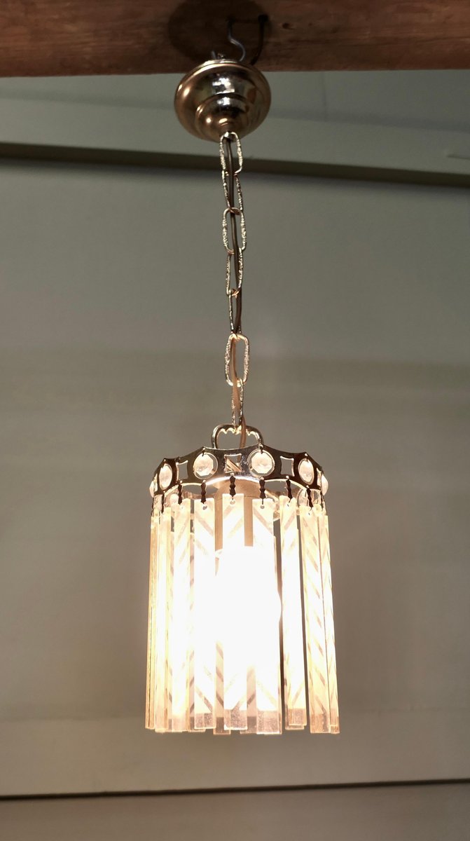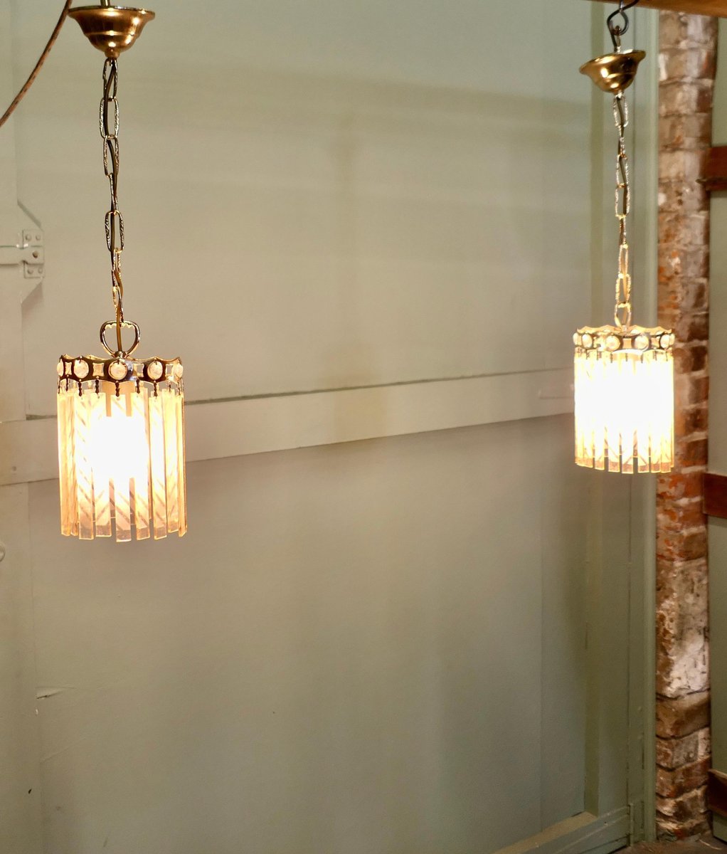 French Art Deco Etched Glass Ceiling Pendants, 1925, Set of 2