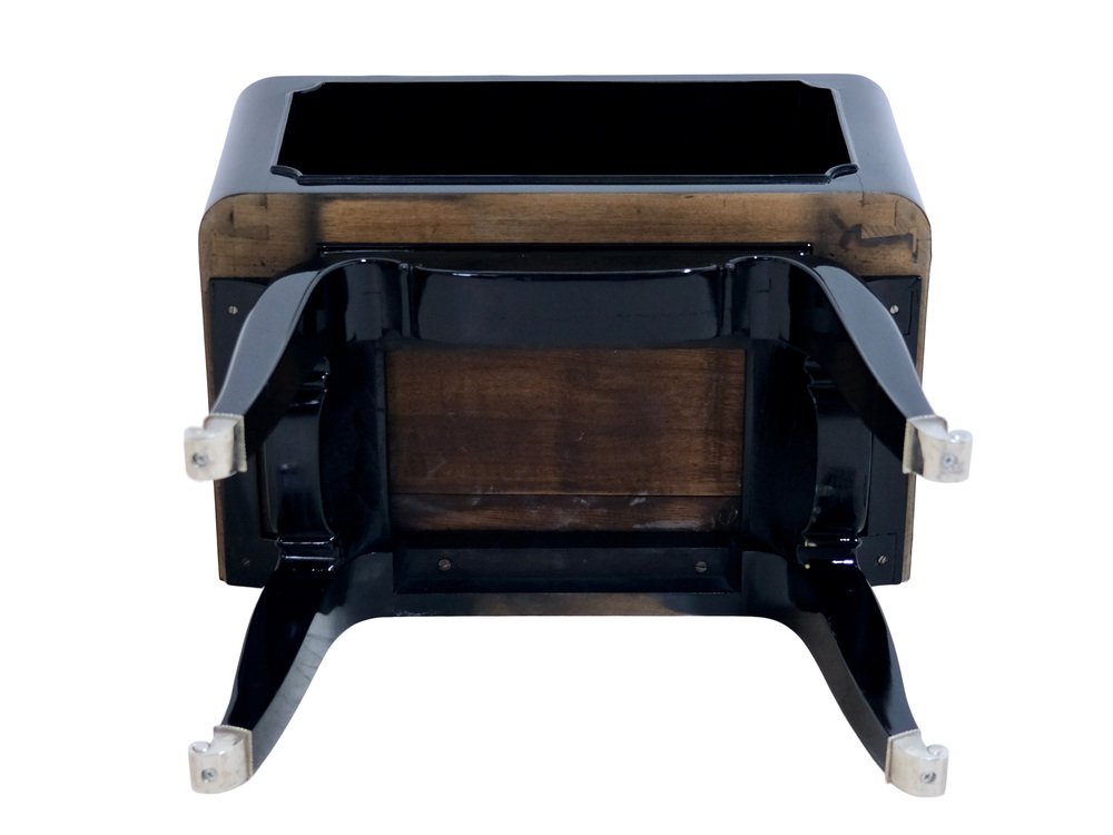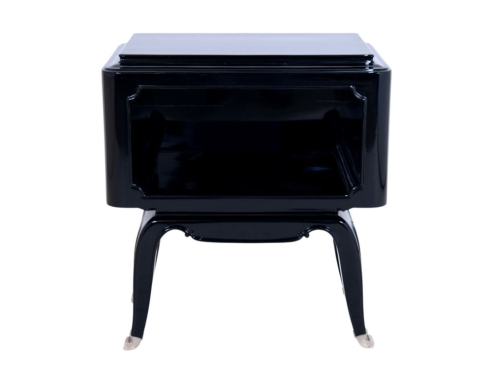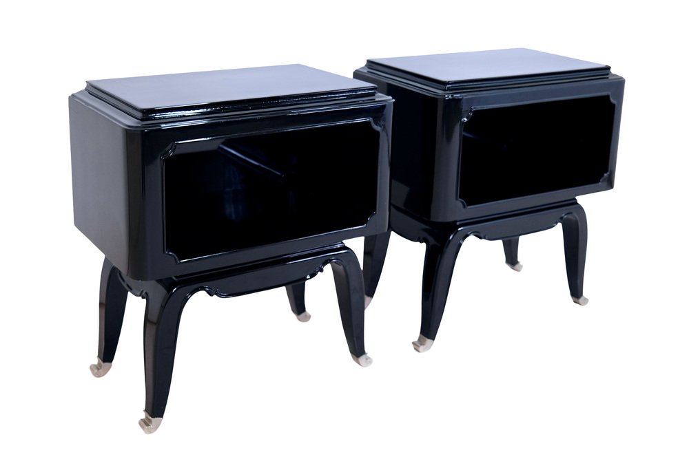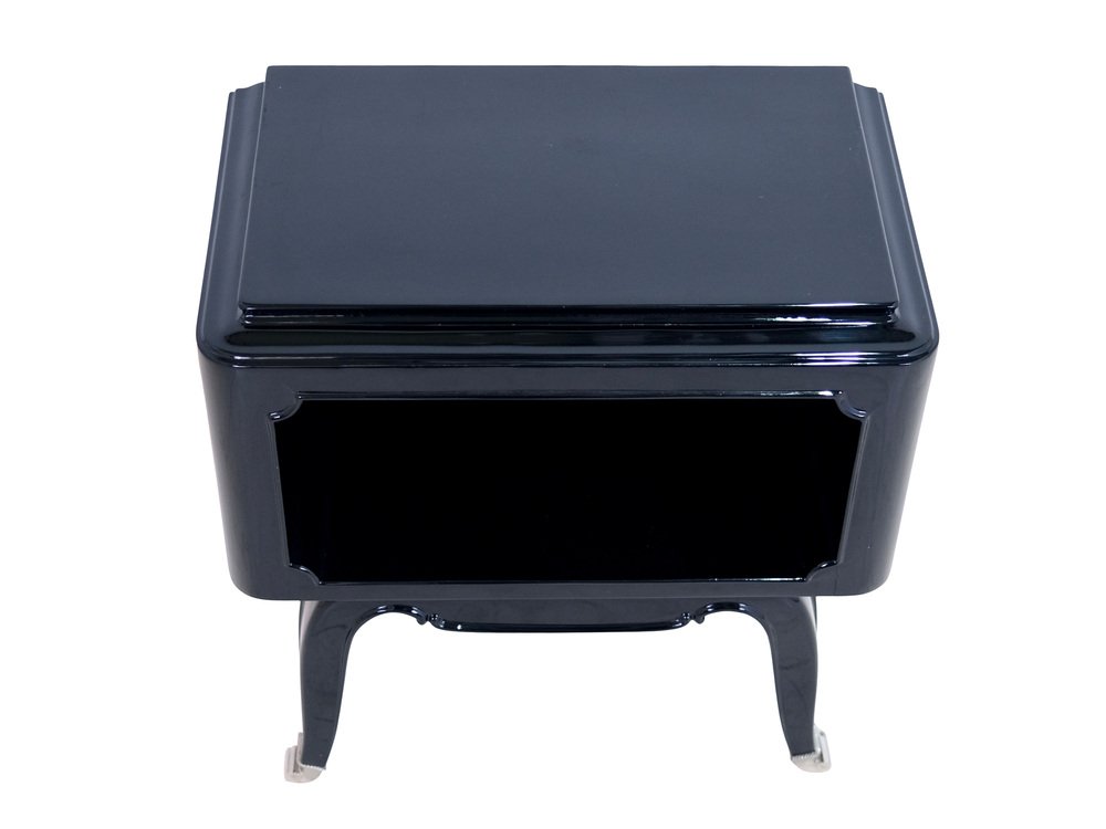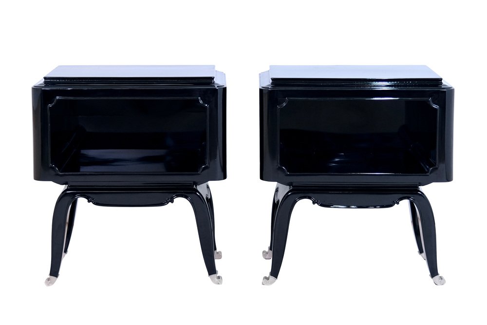 French Art Deco Open Nightstands in Black Piano Lacquer, 1930s-1940s, Set of 2
