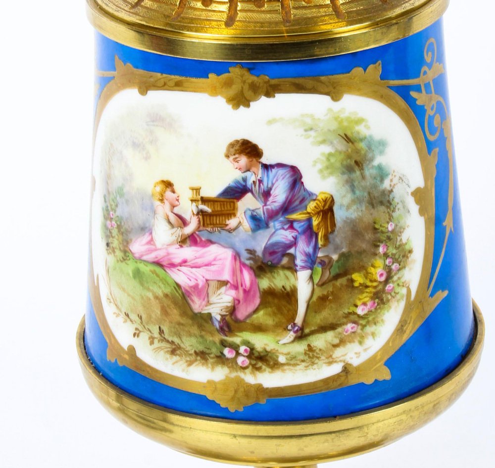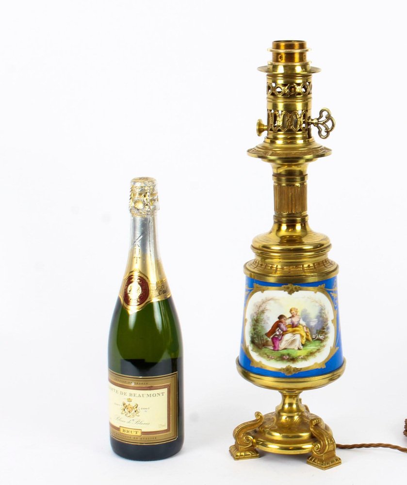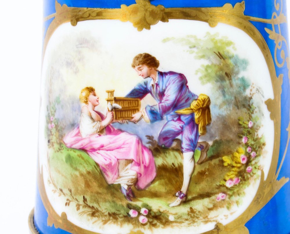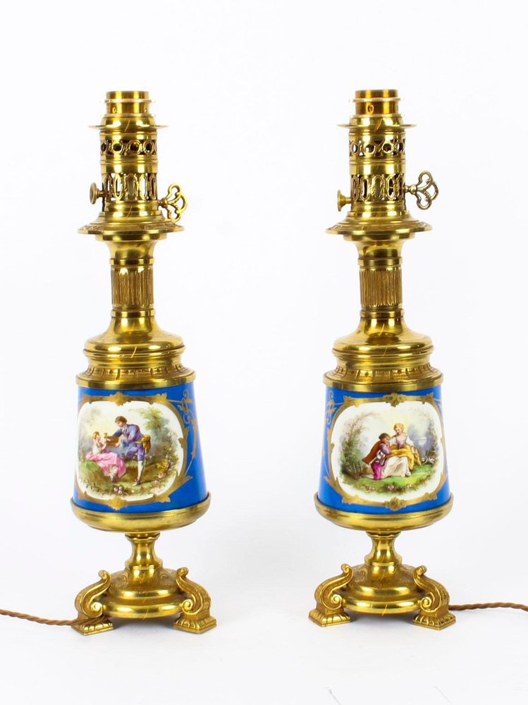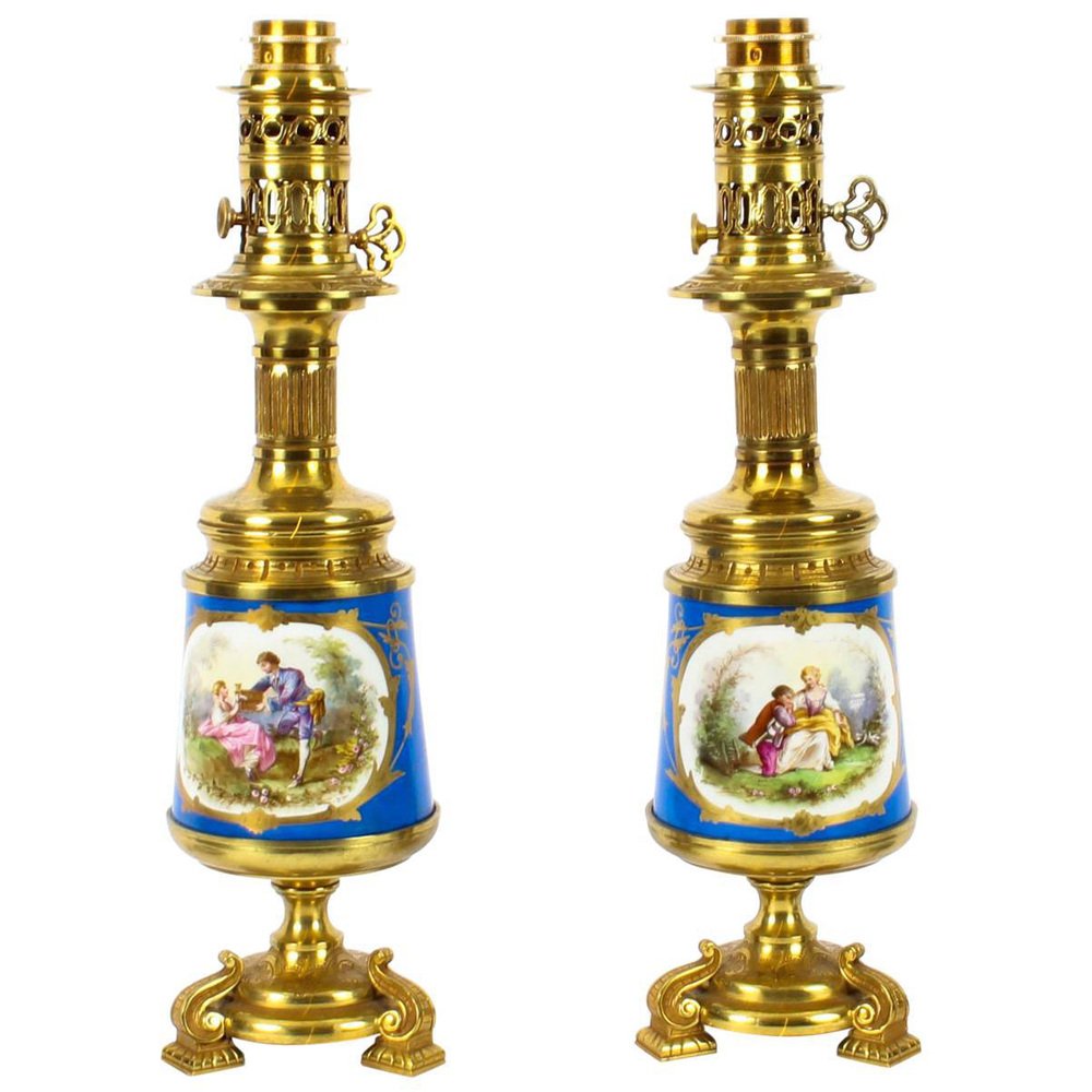 French Bleu Céleste Sèvres Vase Lamps, 19th Century, Set of 2