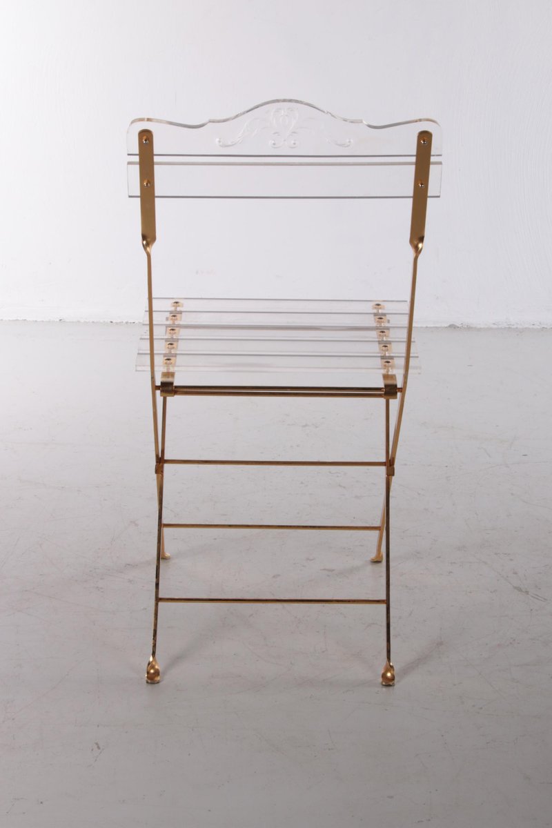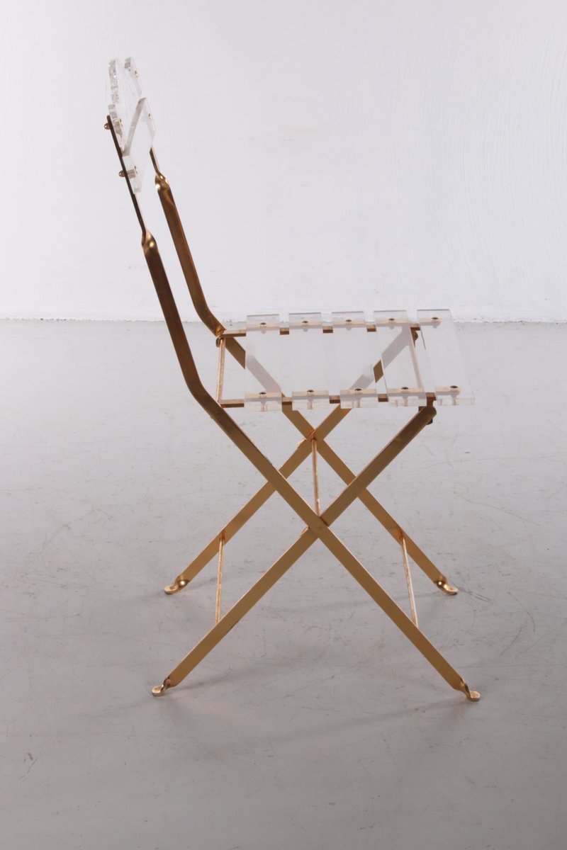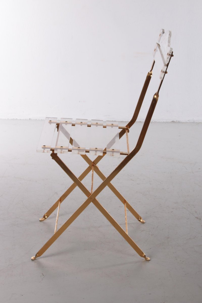 French Hollywood Regency Acrylic Glass and Gold-Plated Brass Dining Chair, 1970s