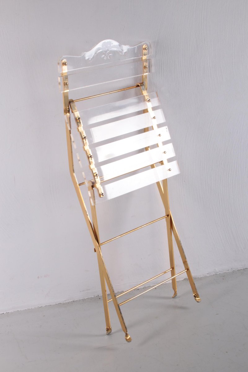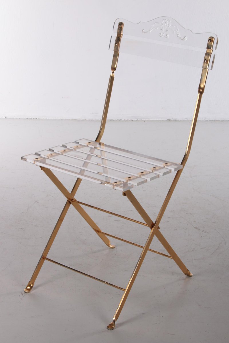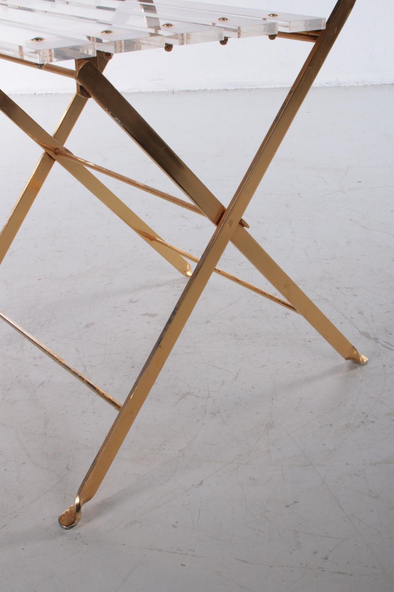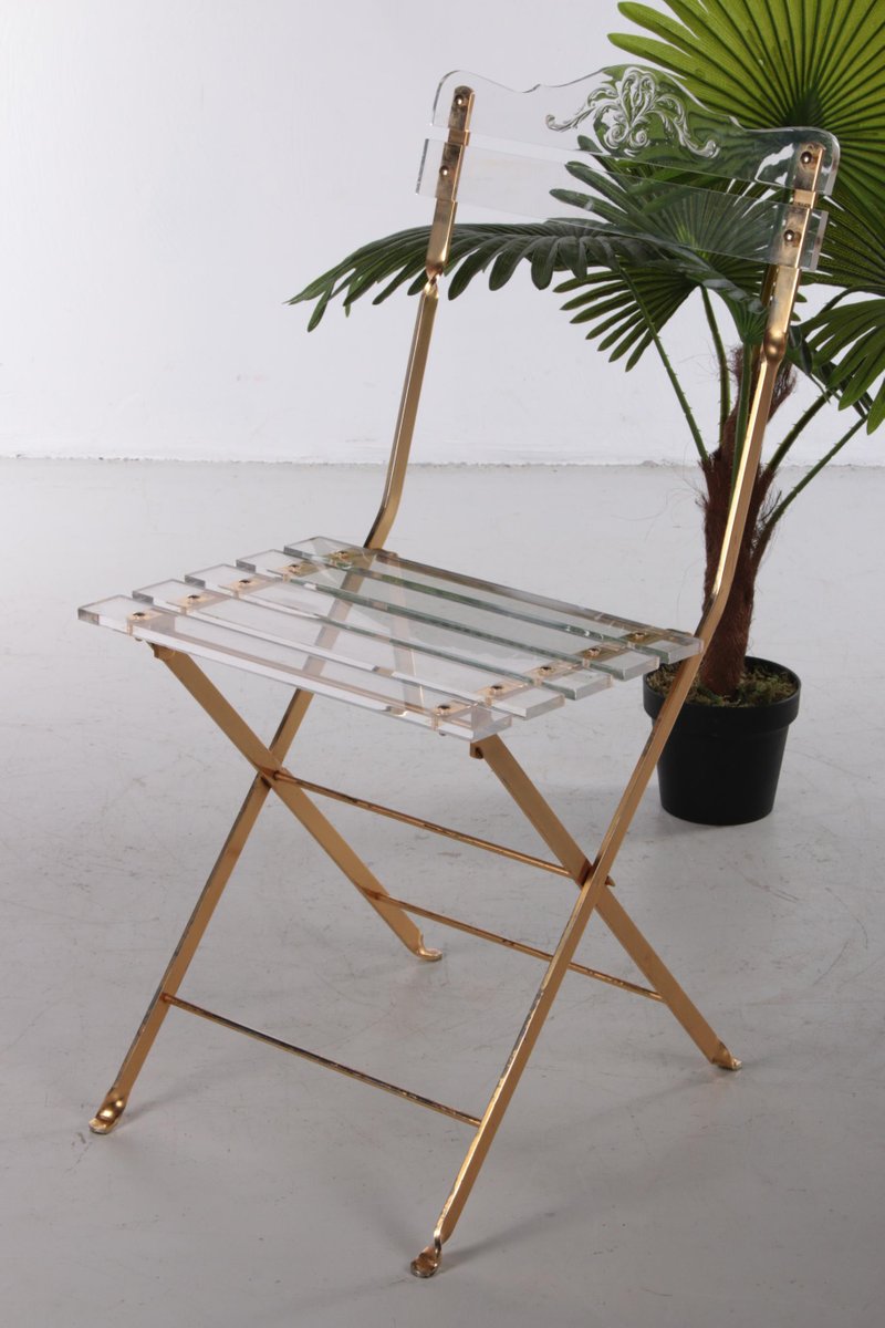 French Hollywood Regency Acrylic Glass and Gold-Plated Brass Dining Chair, 1970s