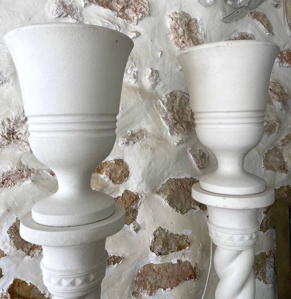 French Plaster Columns and Illuminated Basins by J.C Moreux, 1940s, Set of 2