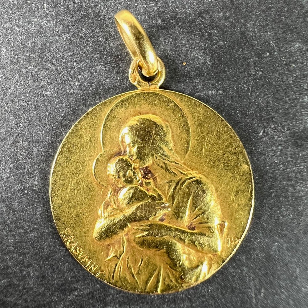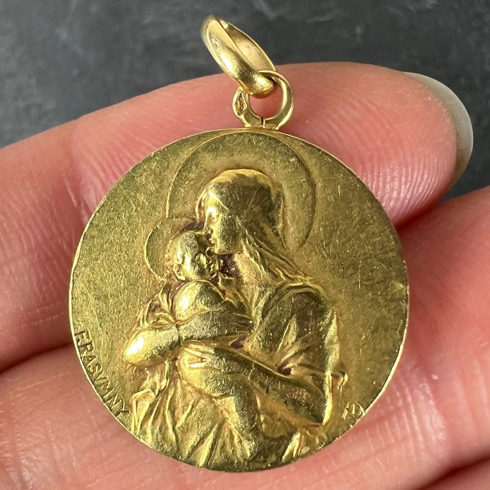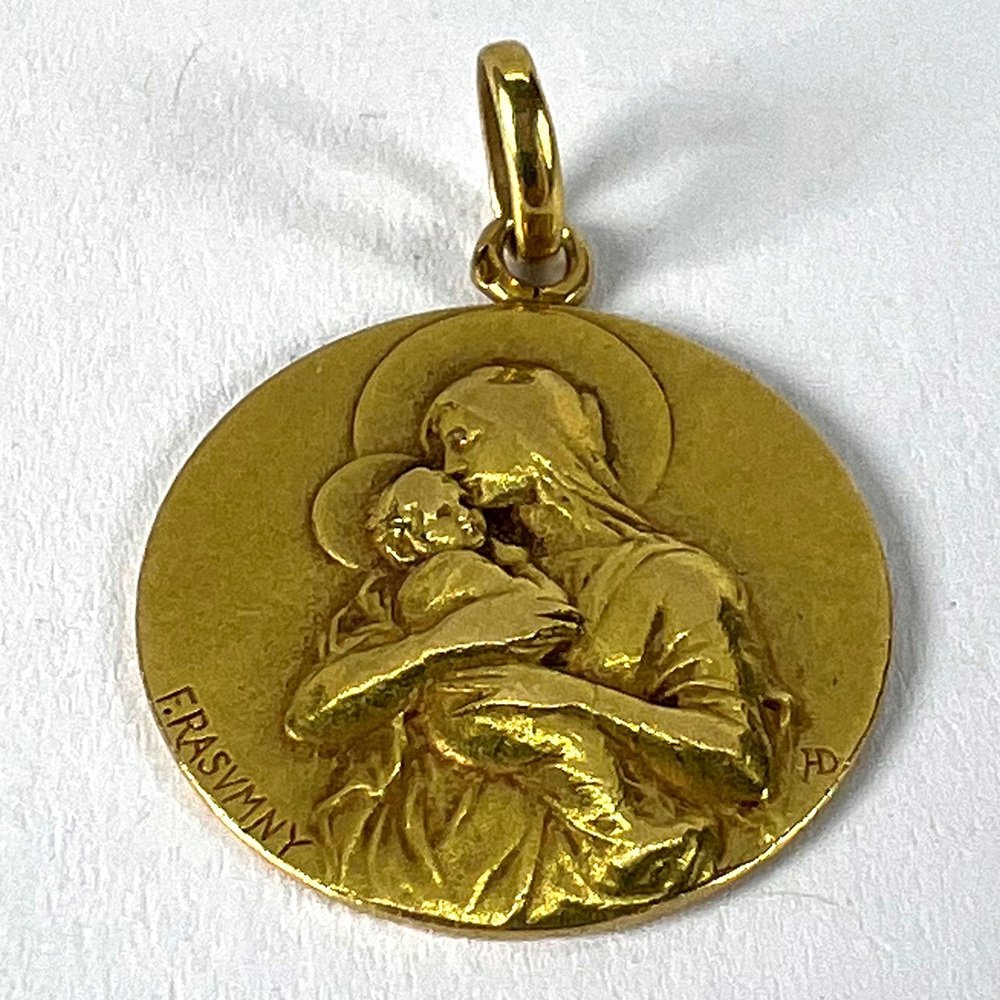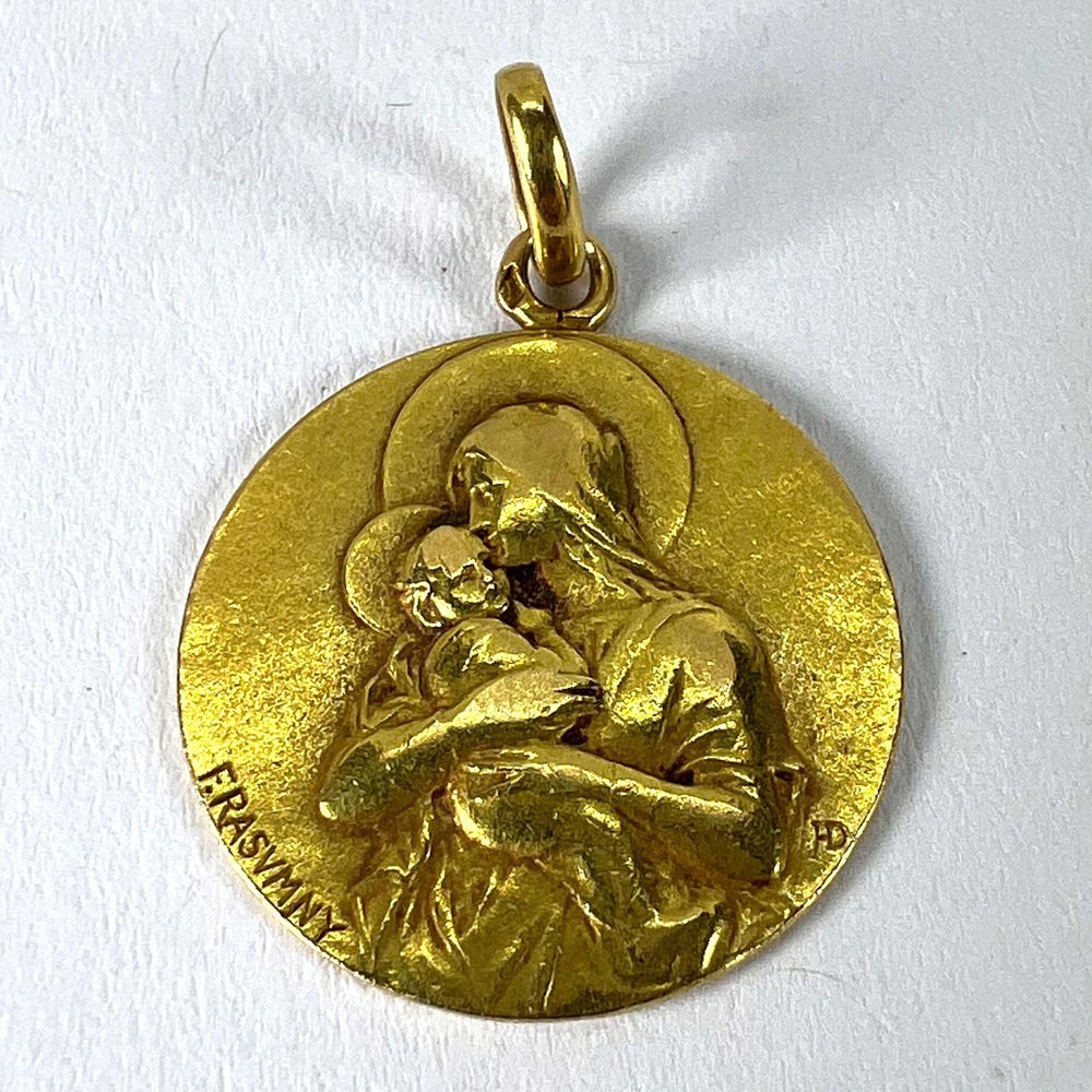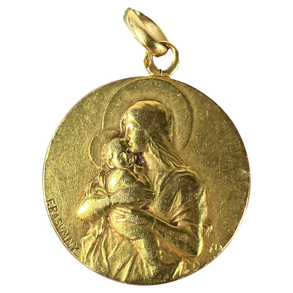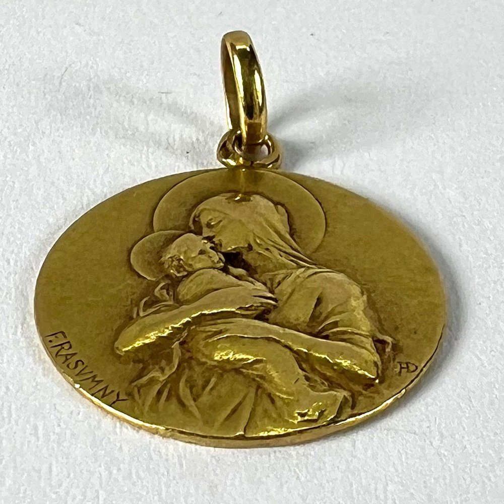 French Rasumny Madonna and Child 18k Yellow Gold Religious Medal Pendant, 1890s