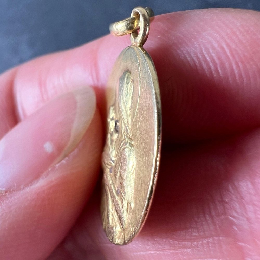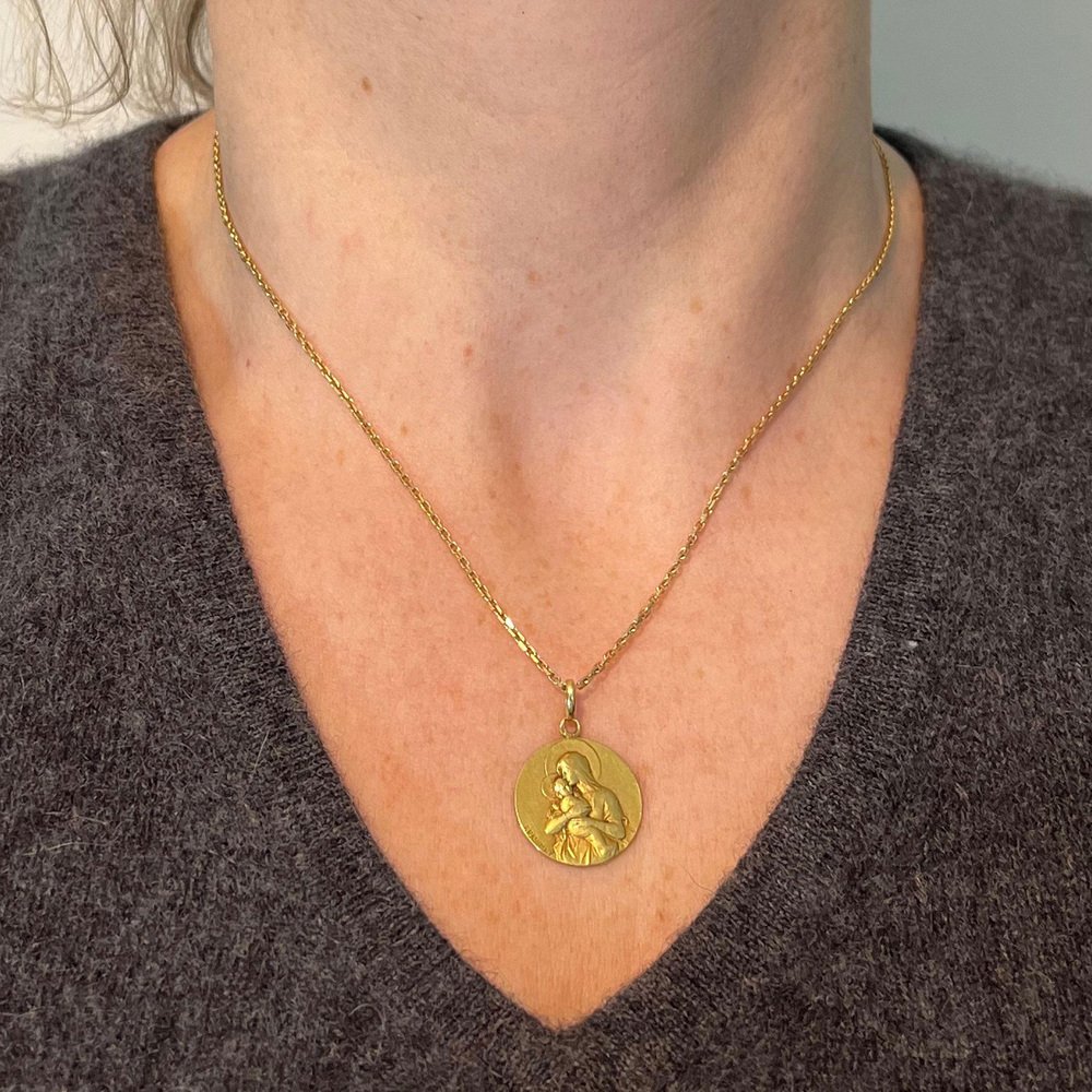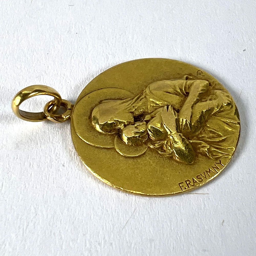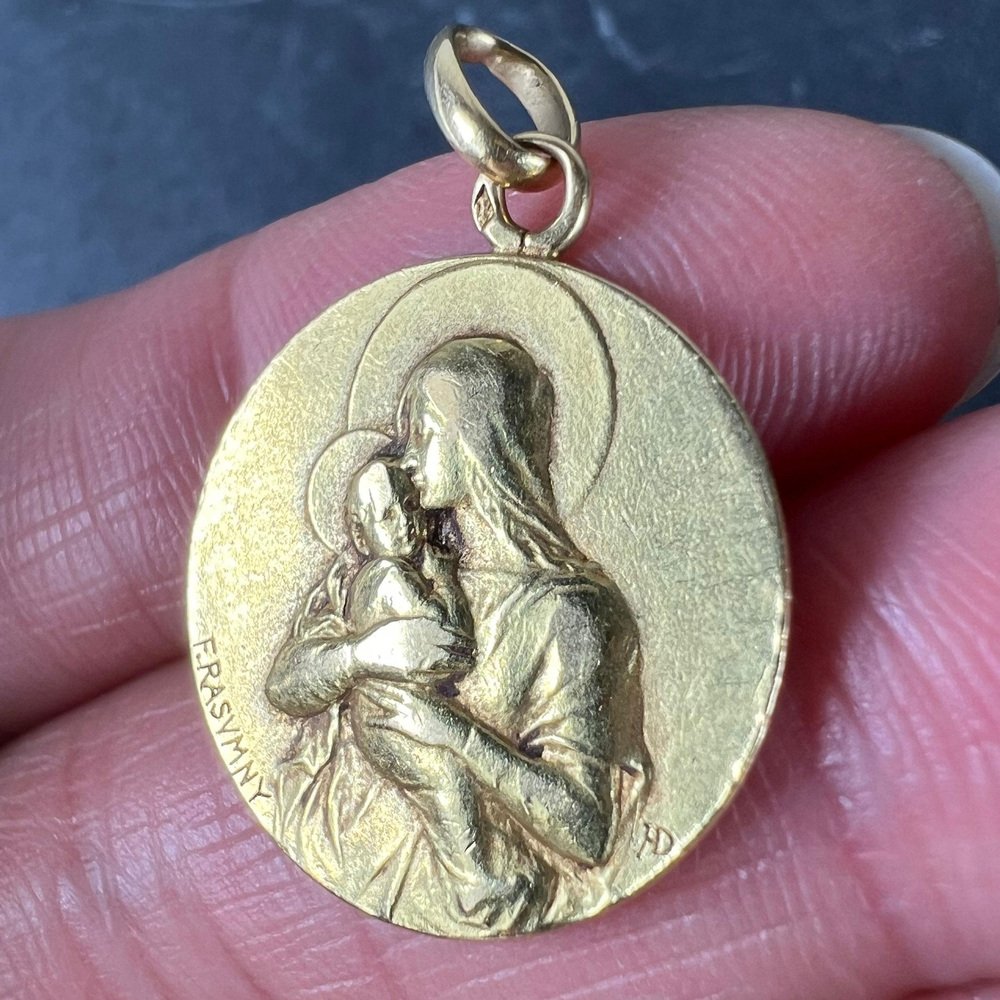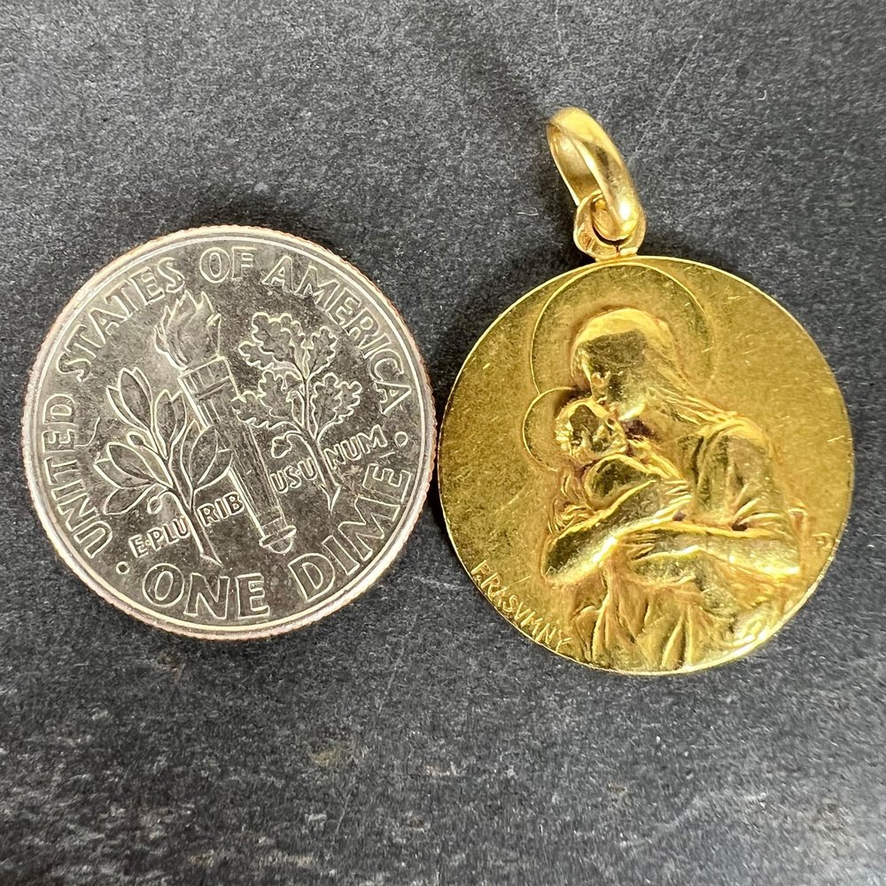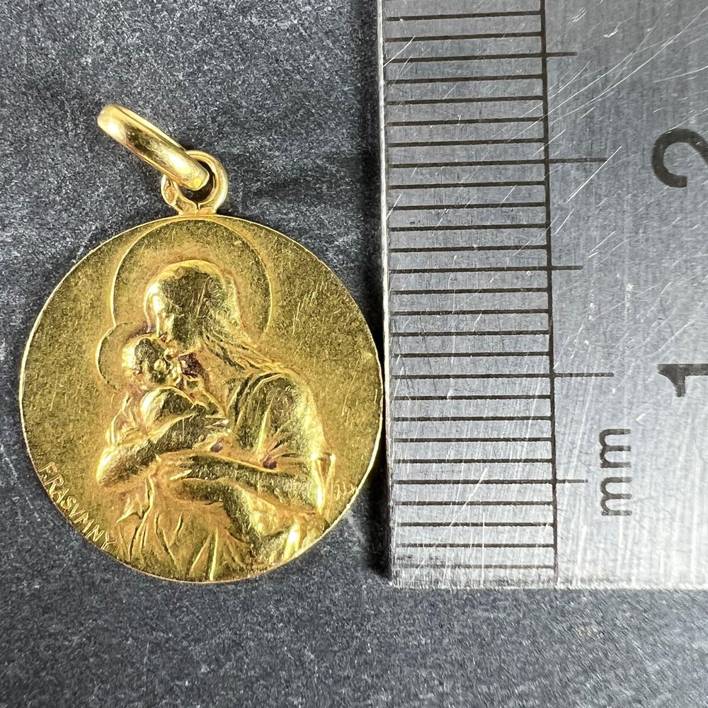 French Rasumny Madonna and Child 18k Yellow Gold Religious Medal Pendant, 1890s