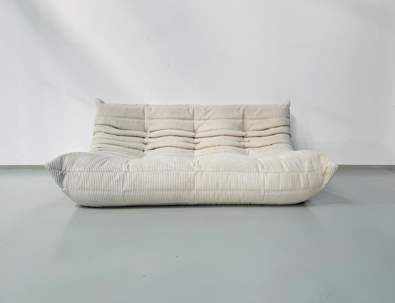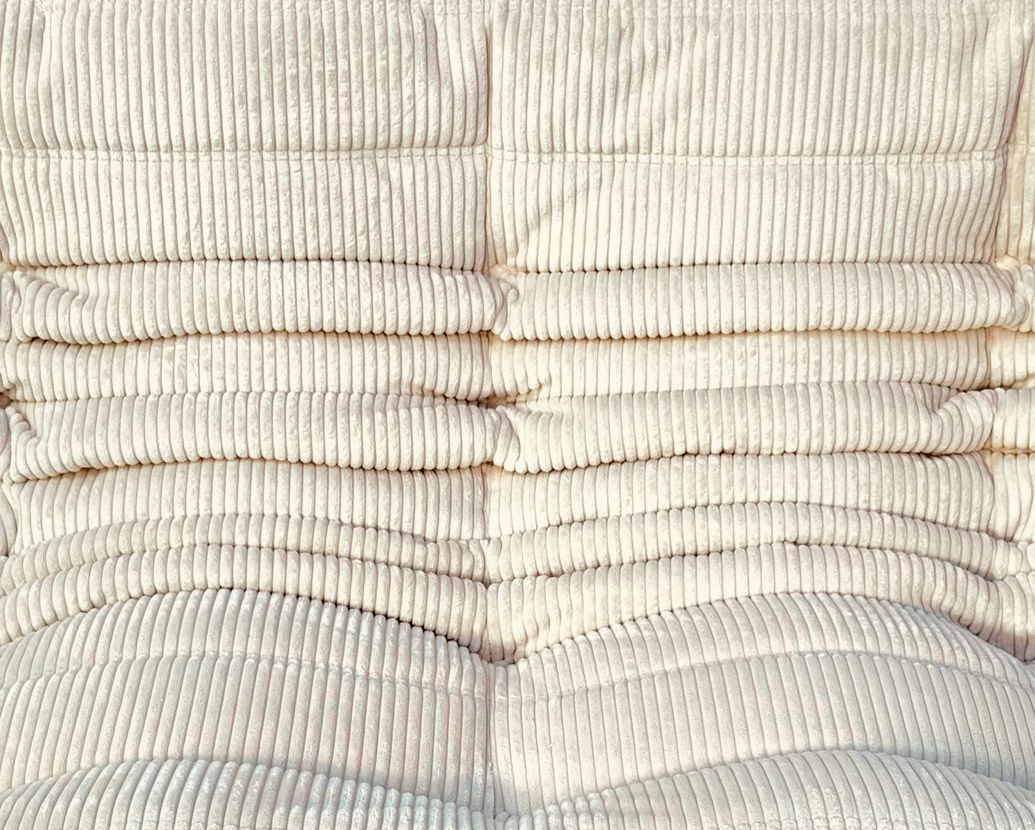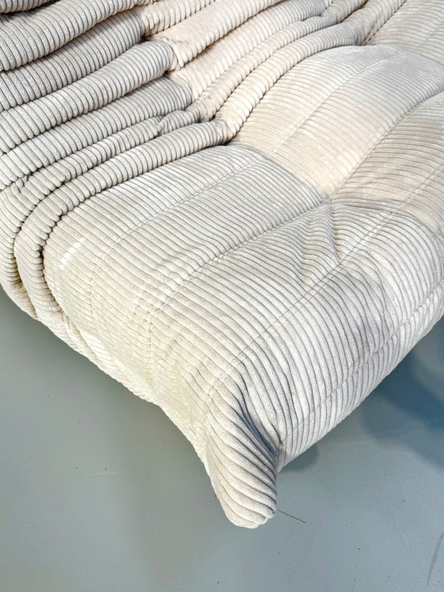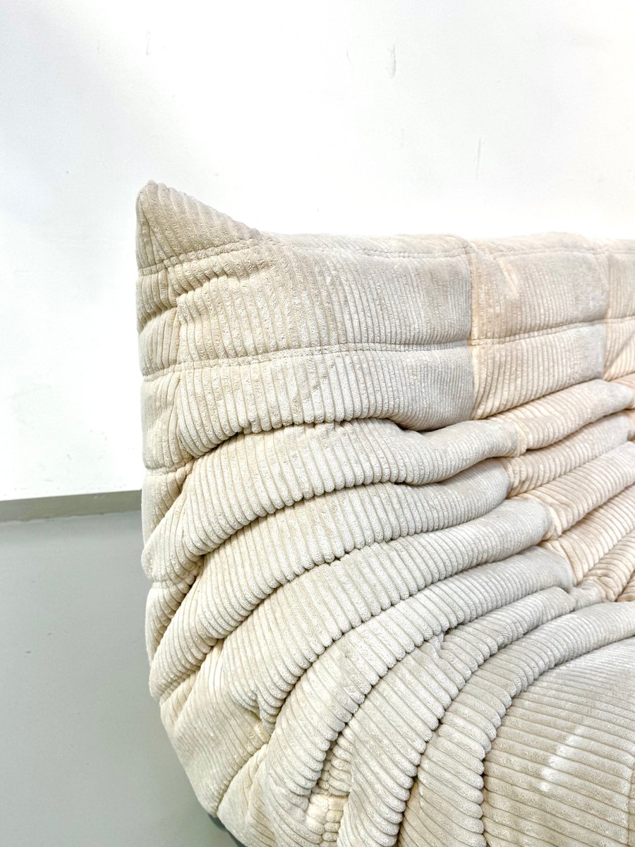 French Togo Two-Seater Sofa in Beige Corduroy by Michel Ducaroy for Ligne Roset, 1970s