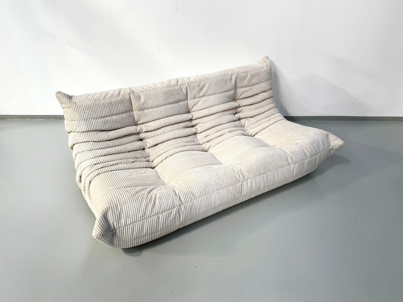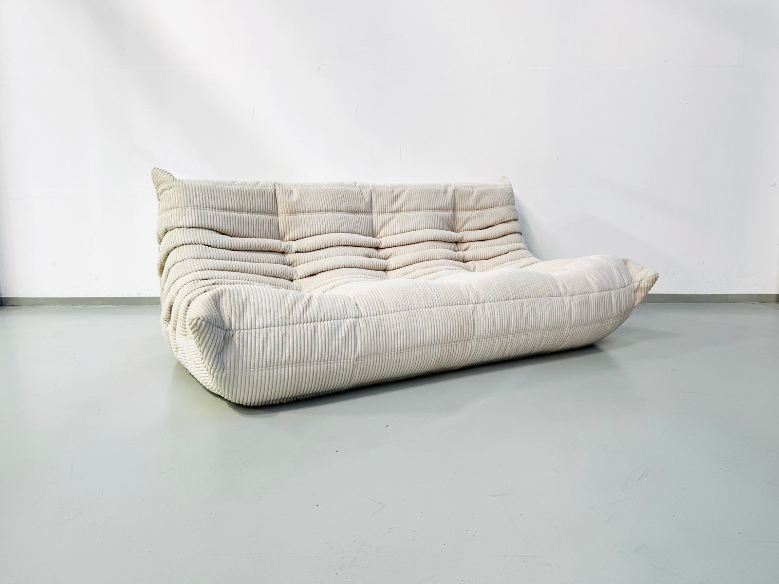 French Togo 3-Seater Sofa in Beige Corduroy attributed to Michel Ducaroy for Ligne Roset, 1970s