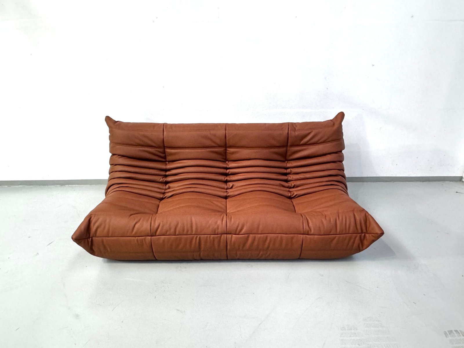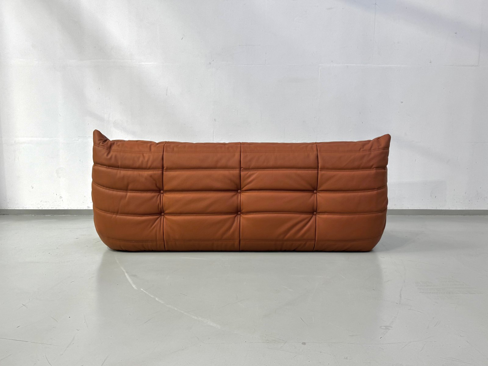 French 3-Seater Togo Sofa in Camel Leather attributed to Michel Ducaroy for Ligne Roset