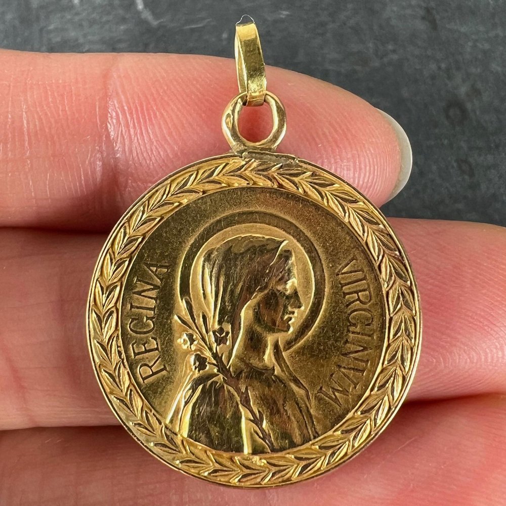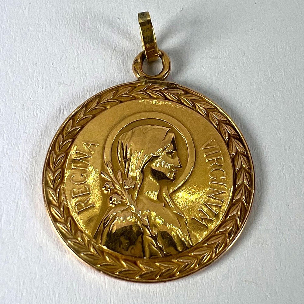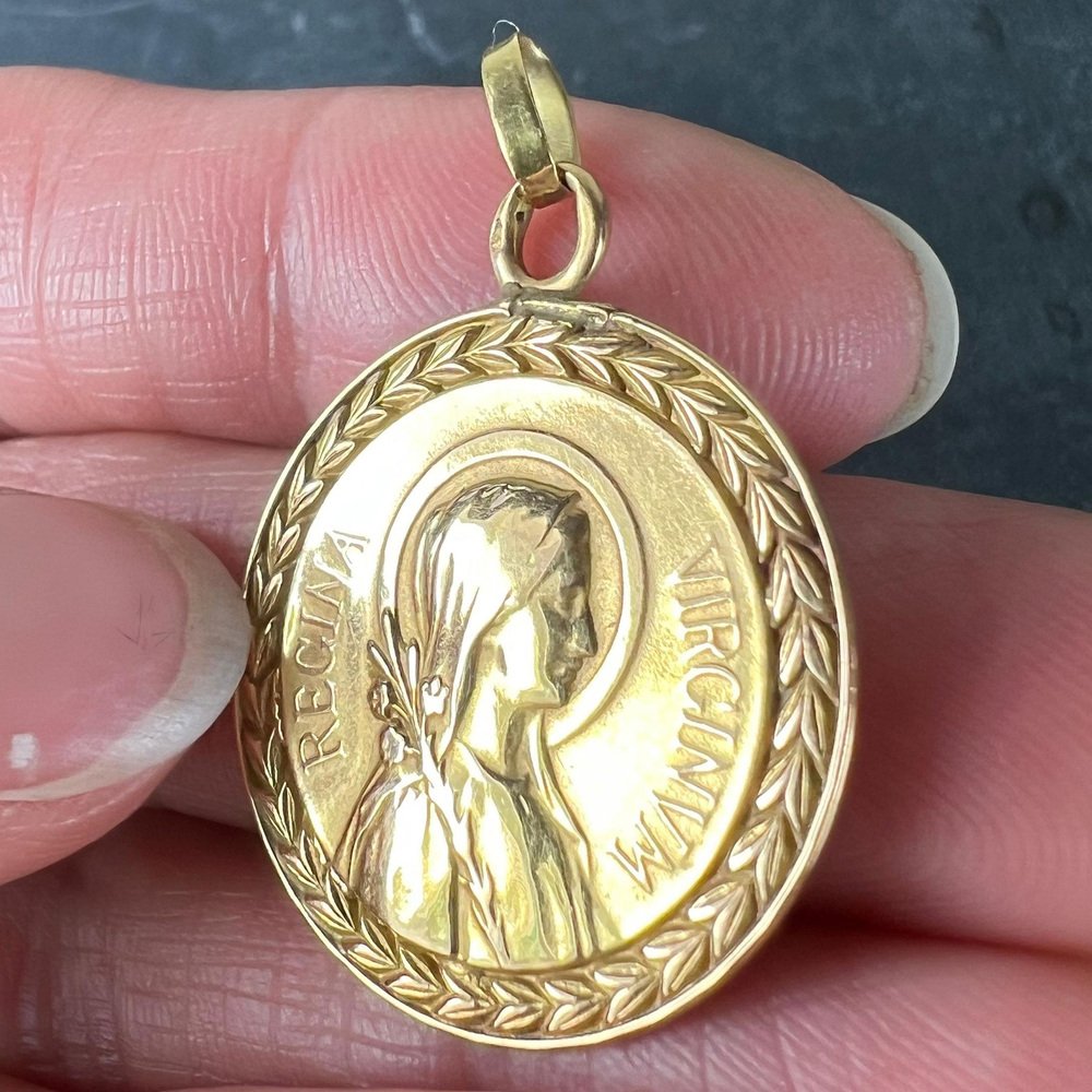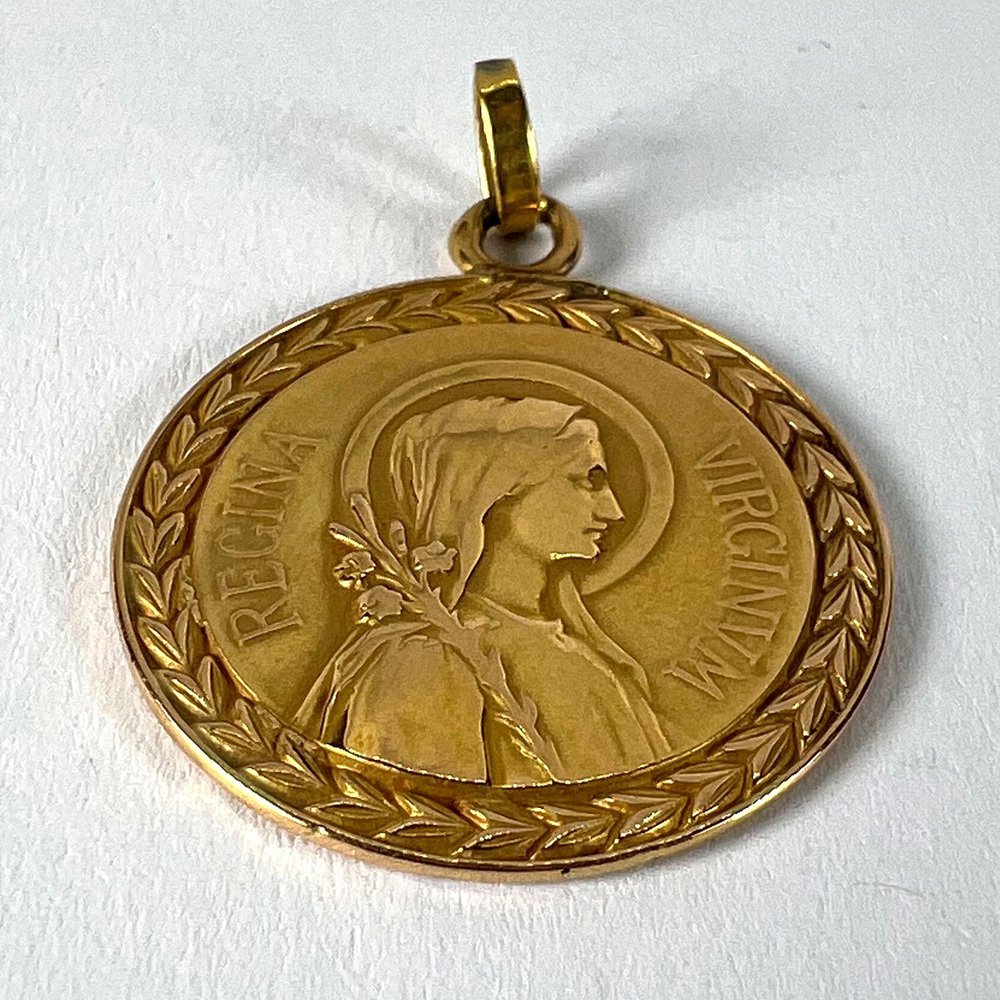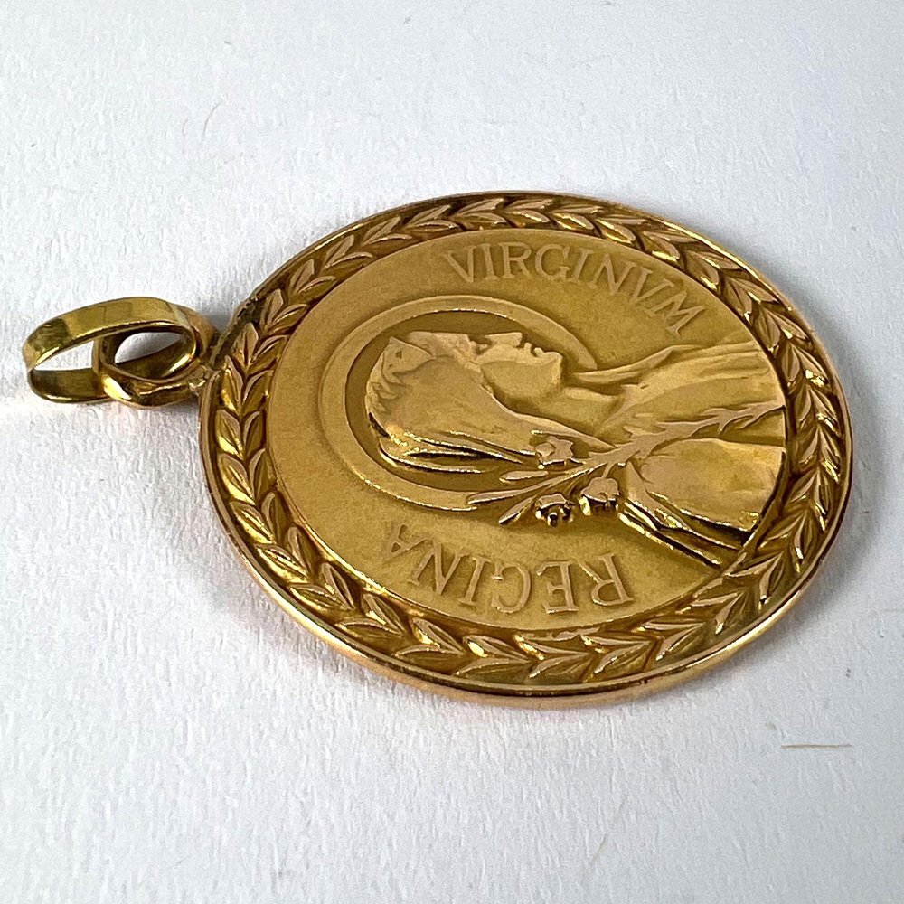 French Virgin Mary 18k Yellow Gold Religious Medal Pendant, 1890s