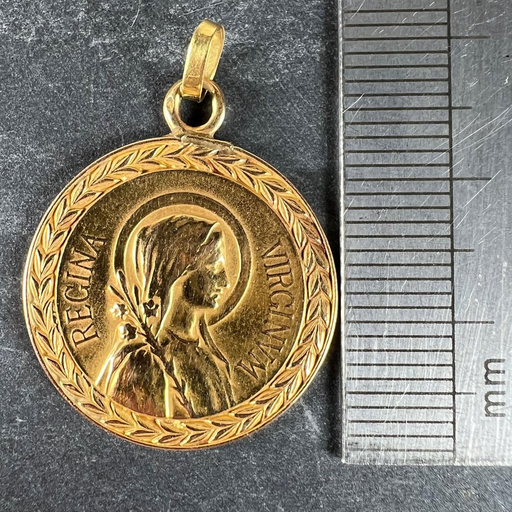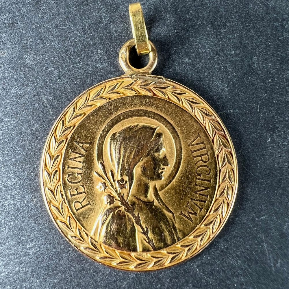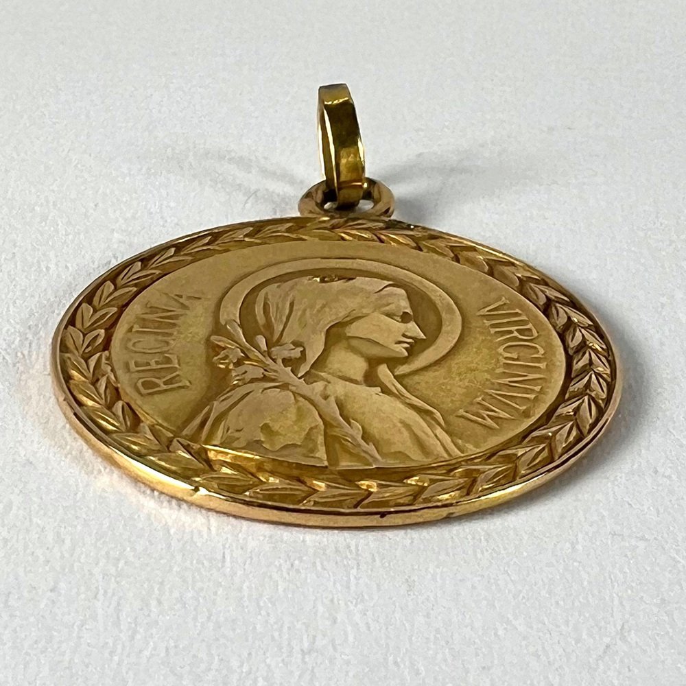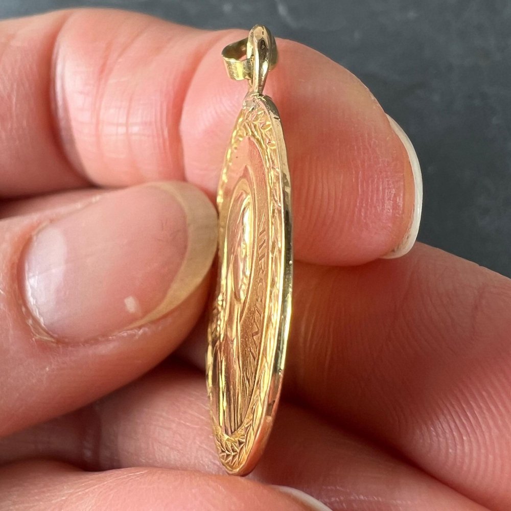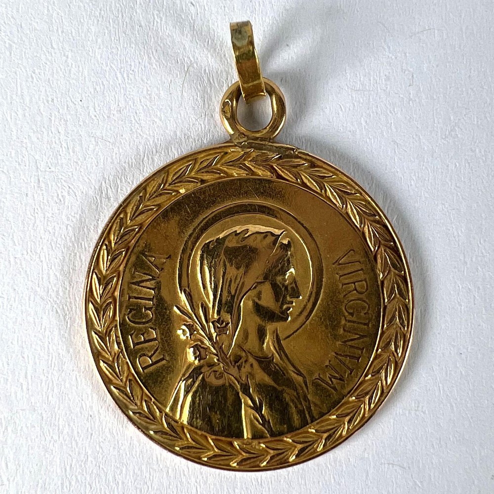 French Virgin Mary 18k Yellow Gold Religious Medal Pendant, 1890s