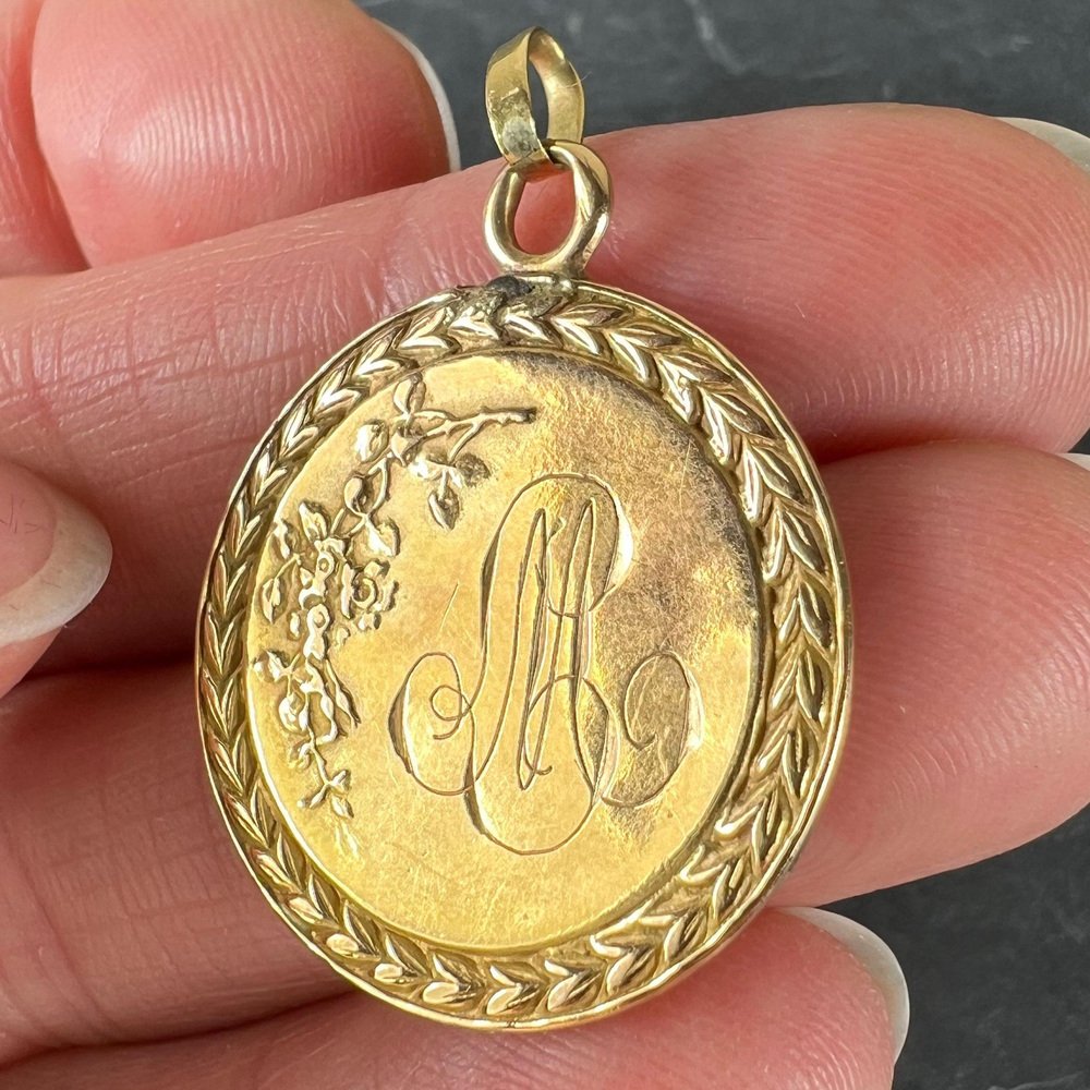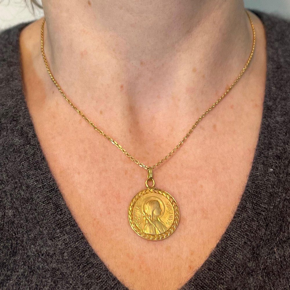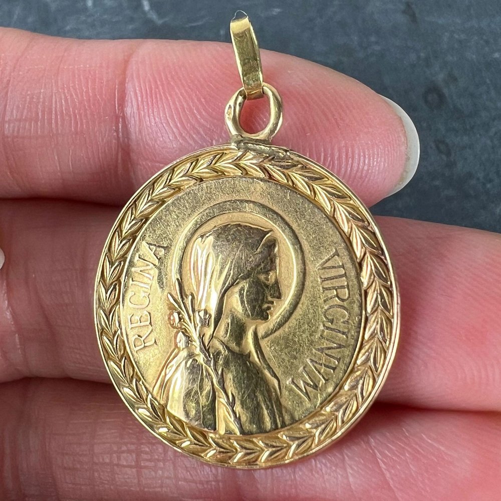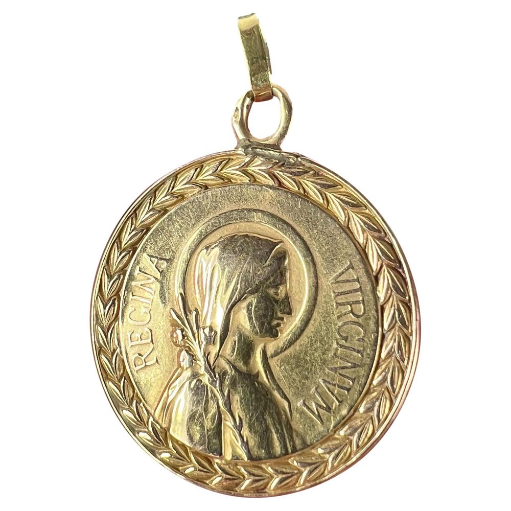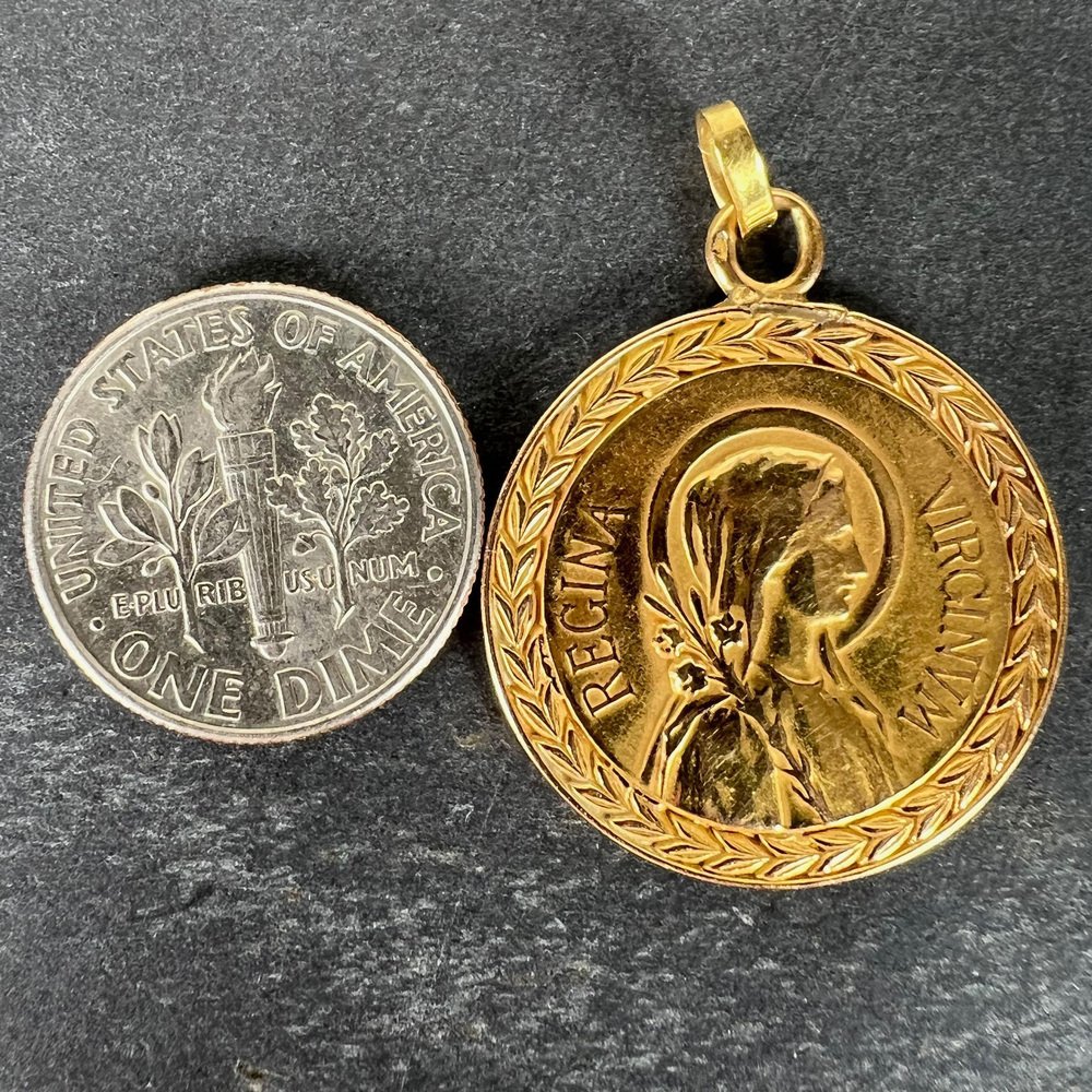 French Virgin Mary 18k Yellow Gold Religious Medal Pendant, 1890s
