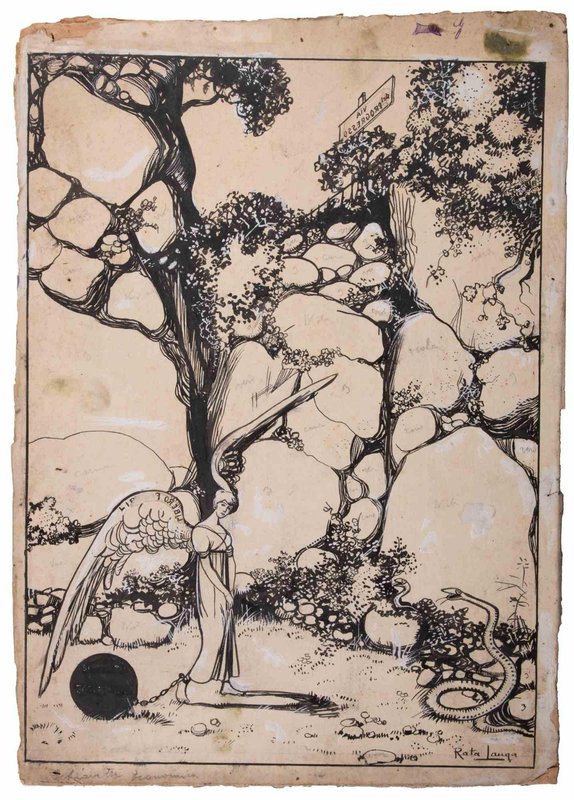 Gabriele Galantara, The Angel, Ink & White Lead Drawing, Early 20th Century
