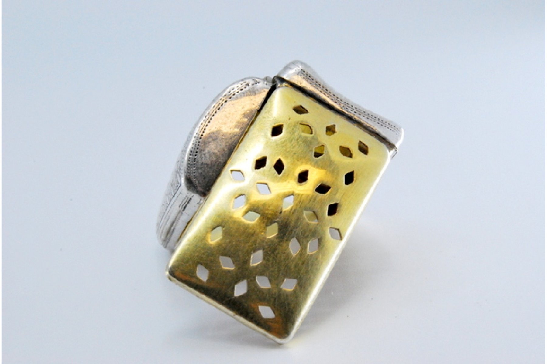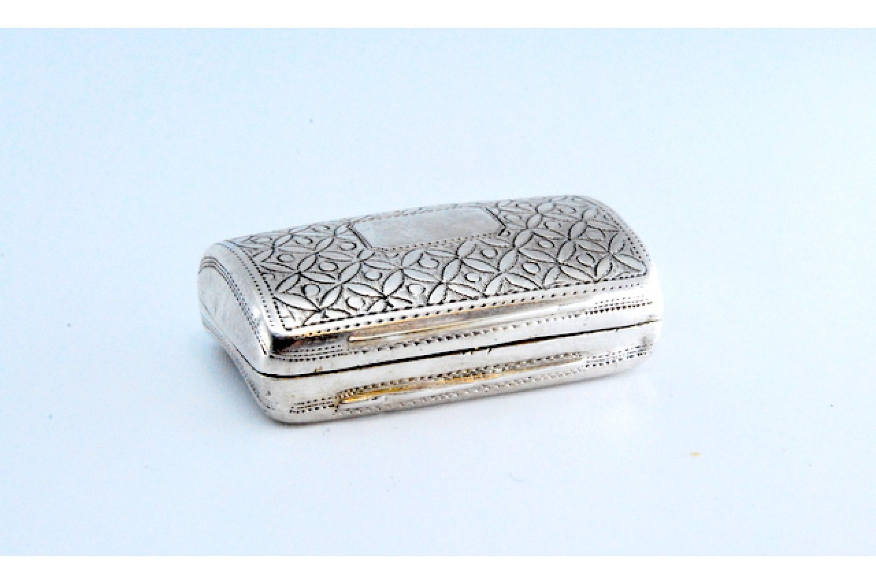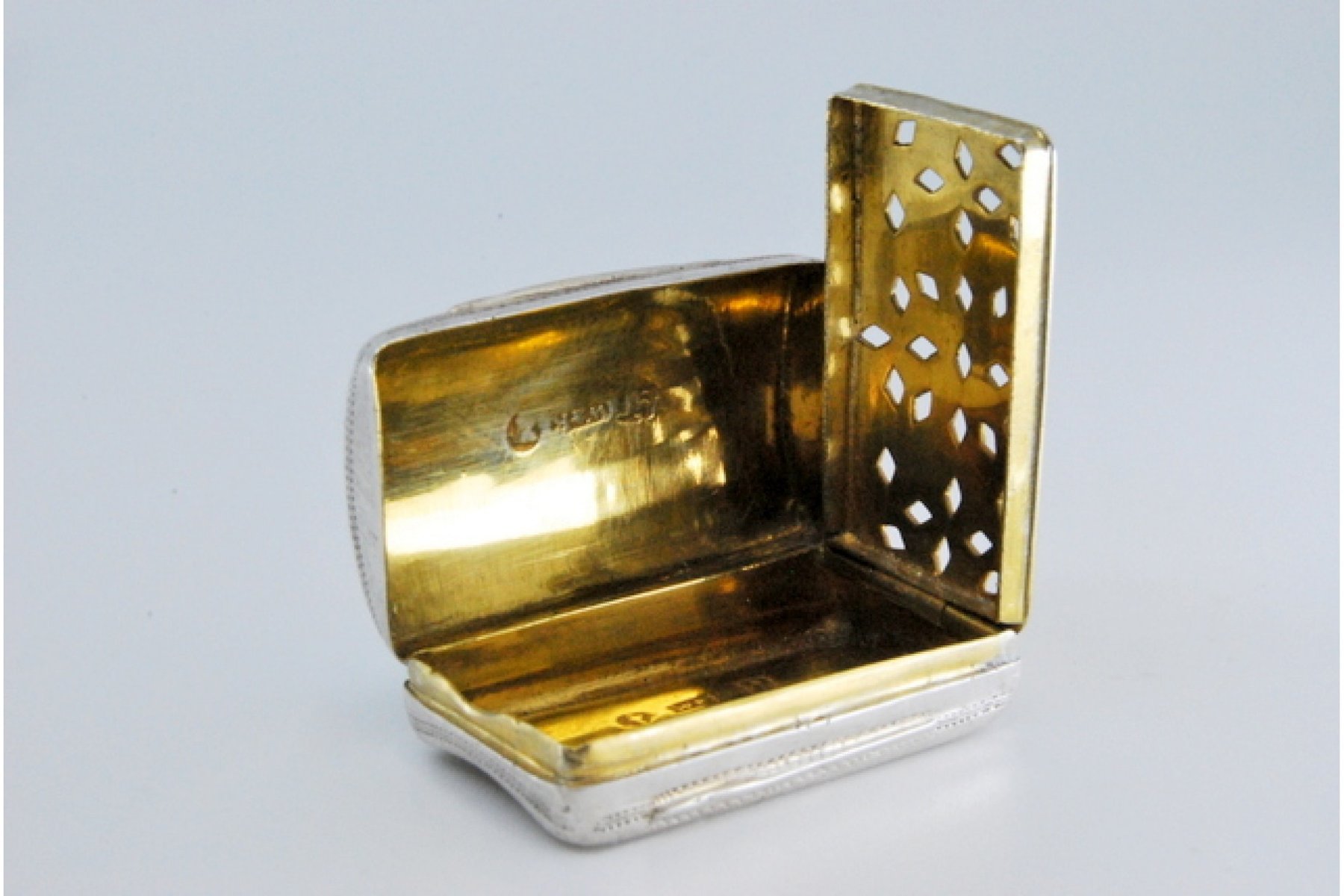 George III Curved Silver and Gold Vinaigrette Box with Lid Engraving