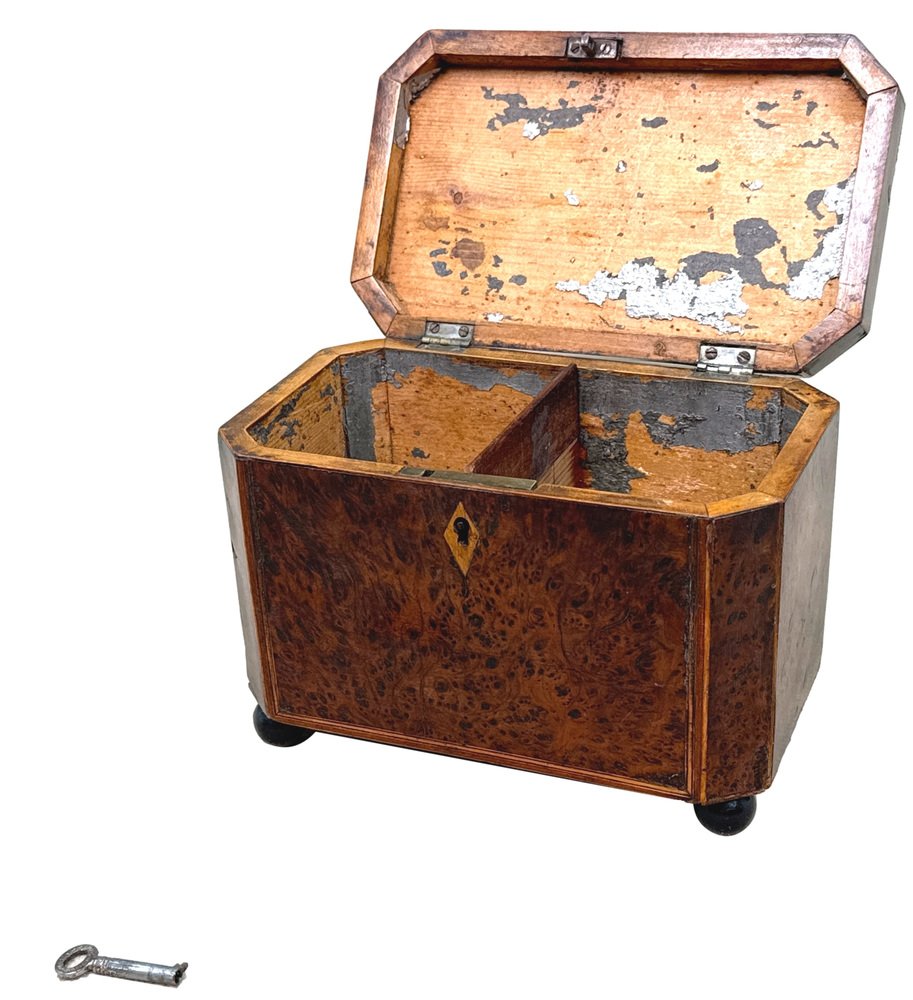Georgian Octagonal Yew Wood Tea Caddy, 1800s