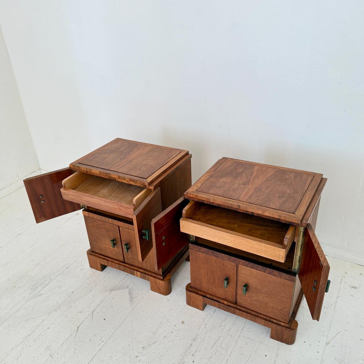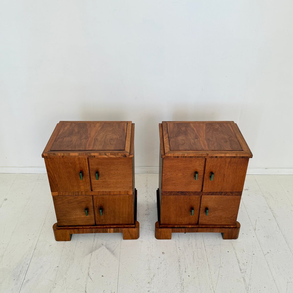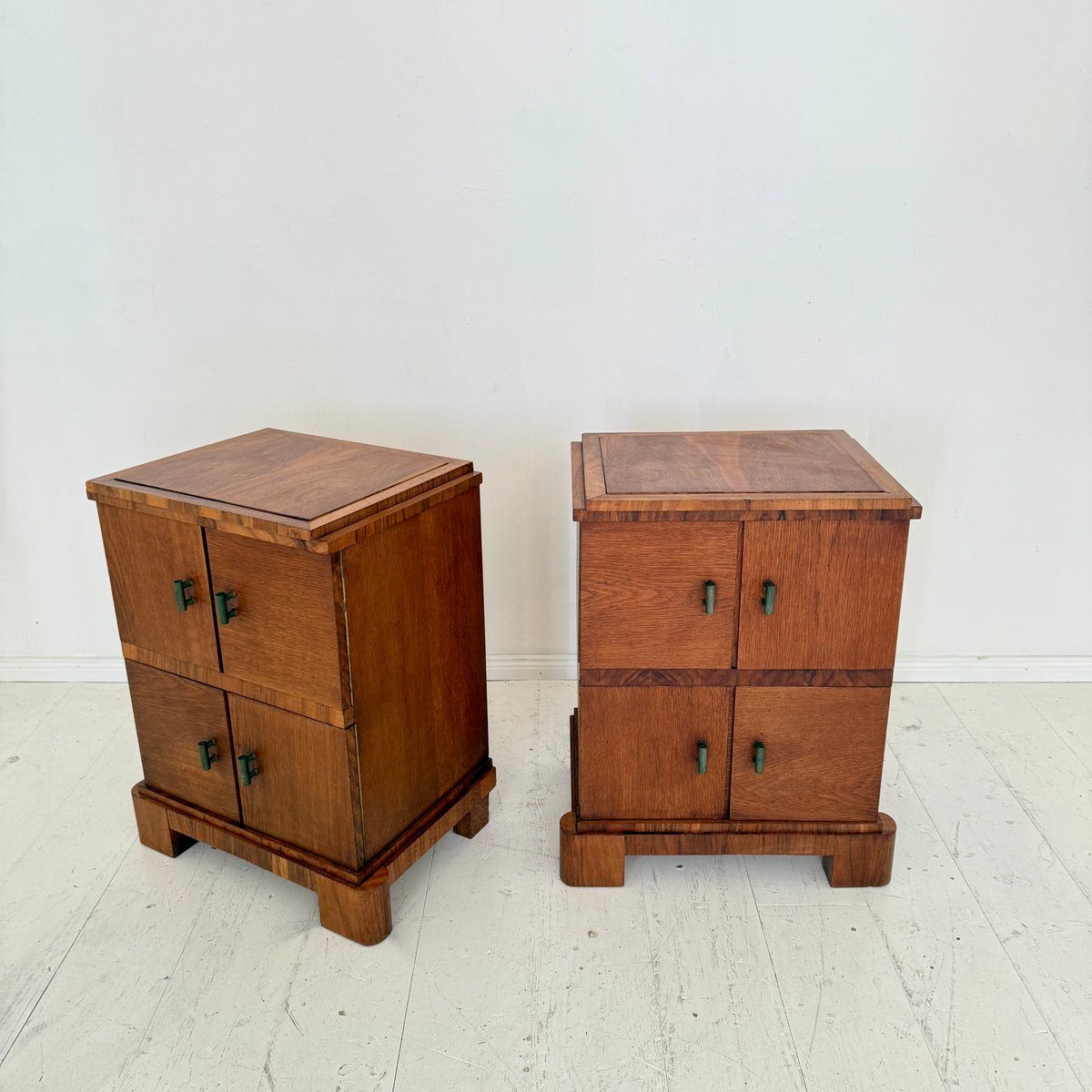 German Art Deco Night Cabinets in Walnut and Oak with Storage, 1920s, Set of 2