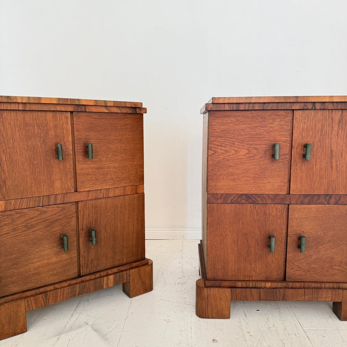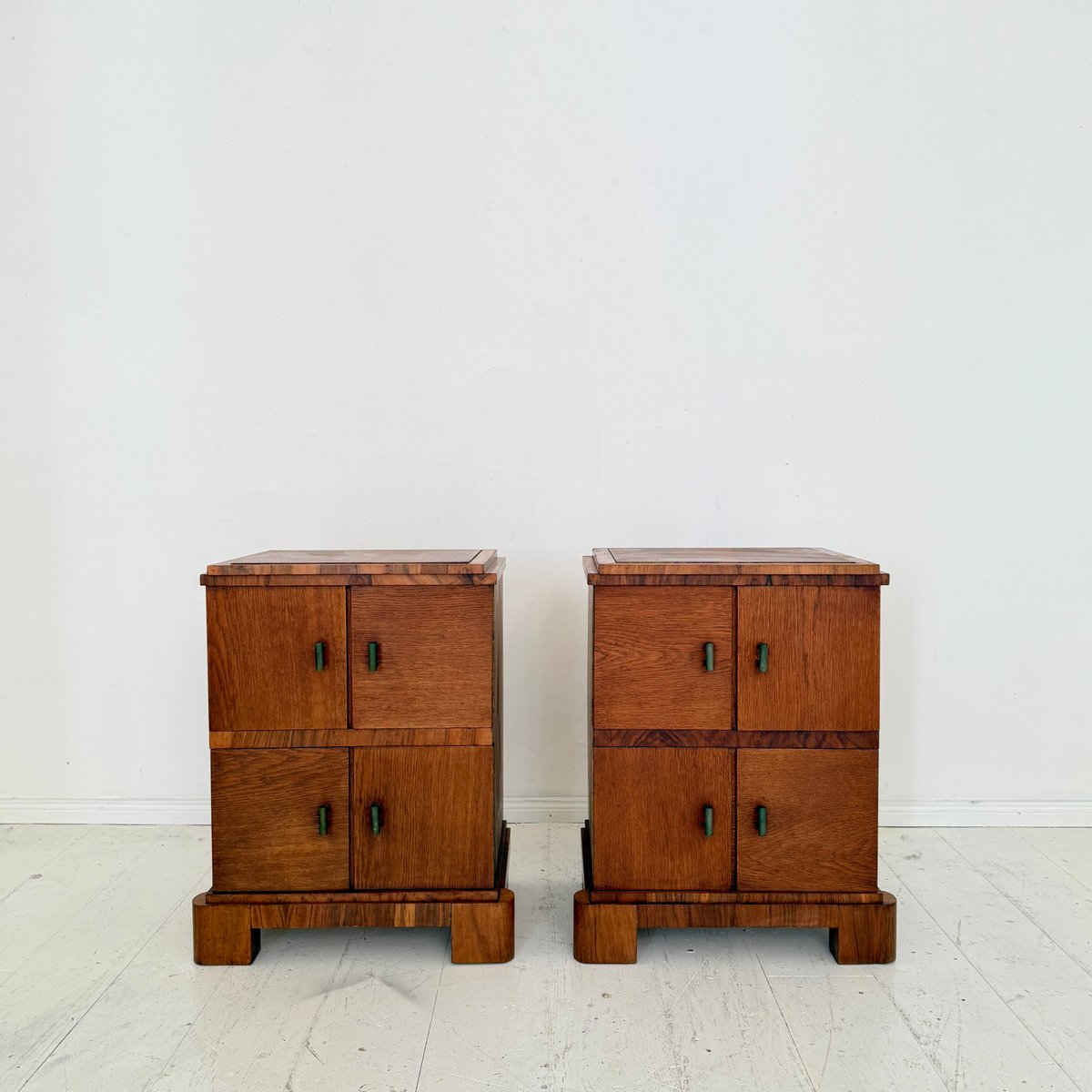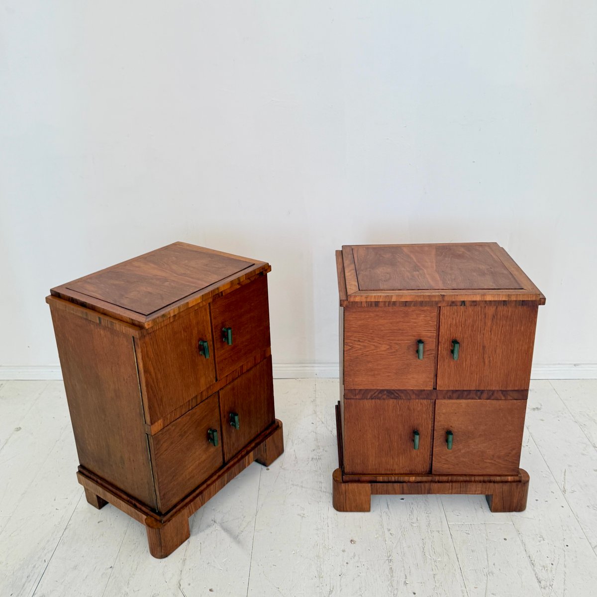 German Art Deco Night Cabinets in Walnut and Oak with Storage, 1920s, Set of 2