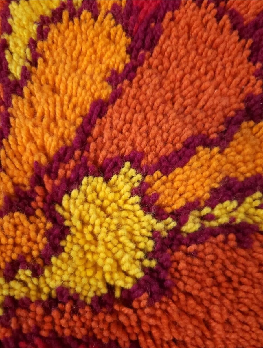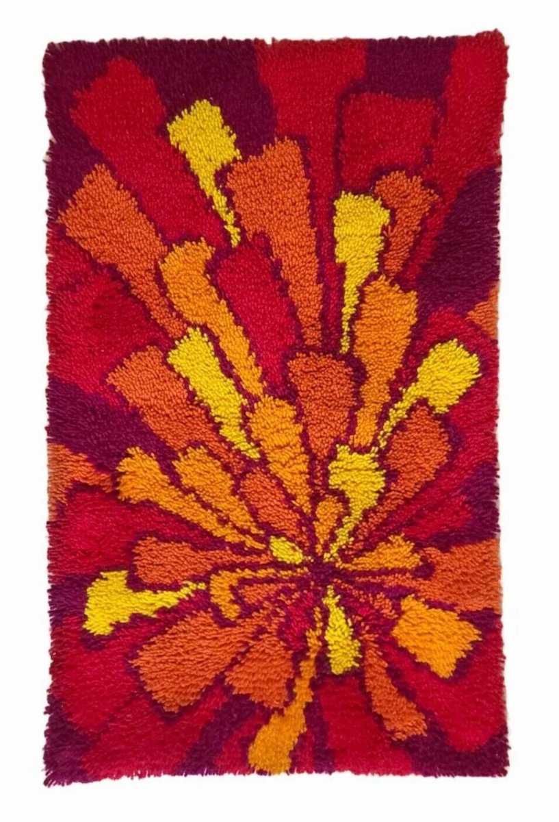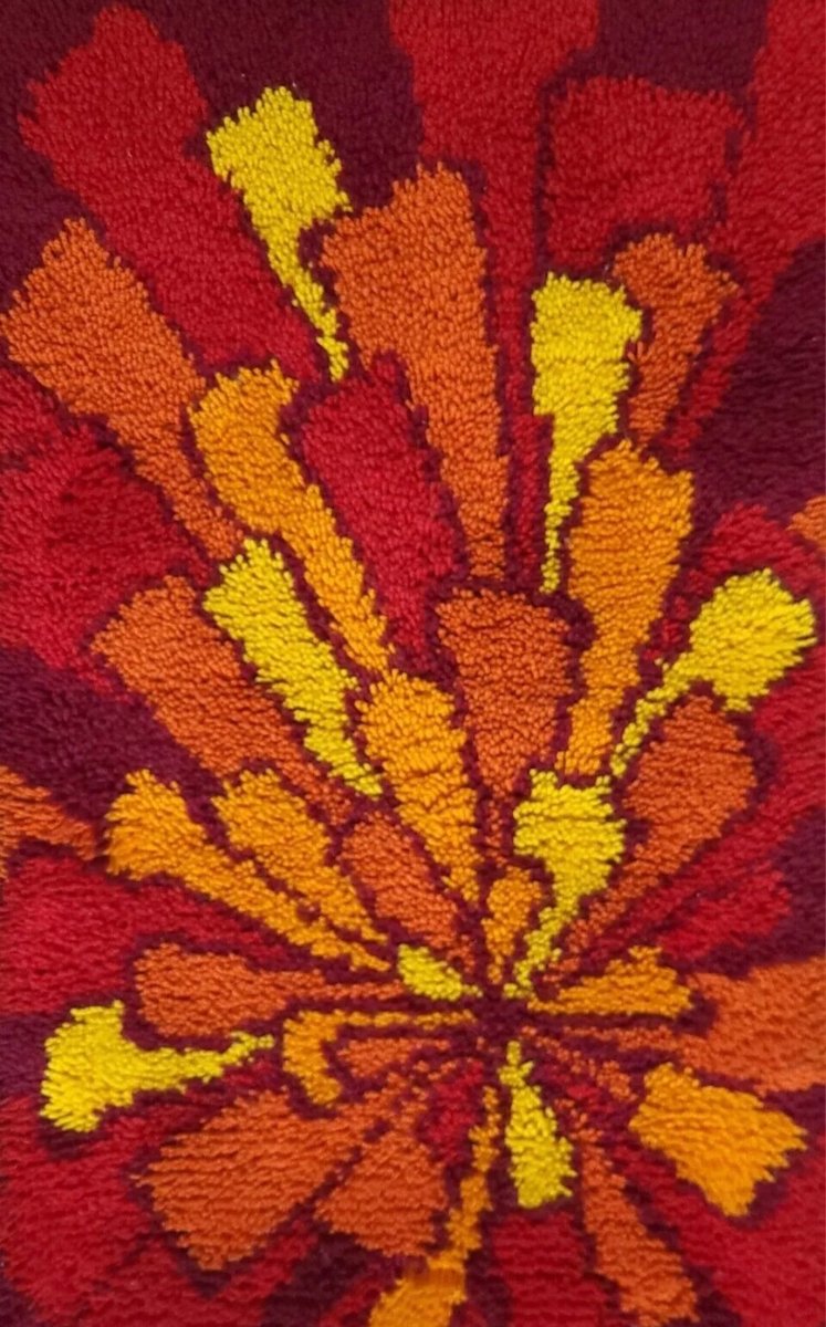 German Handmade Sunburst Tapestry Wall Rug in Wool, 1970s
