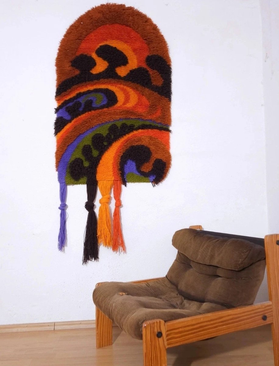 German Handmade Tapestry Wall Rug in Wool, 1970s