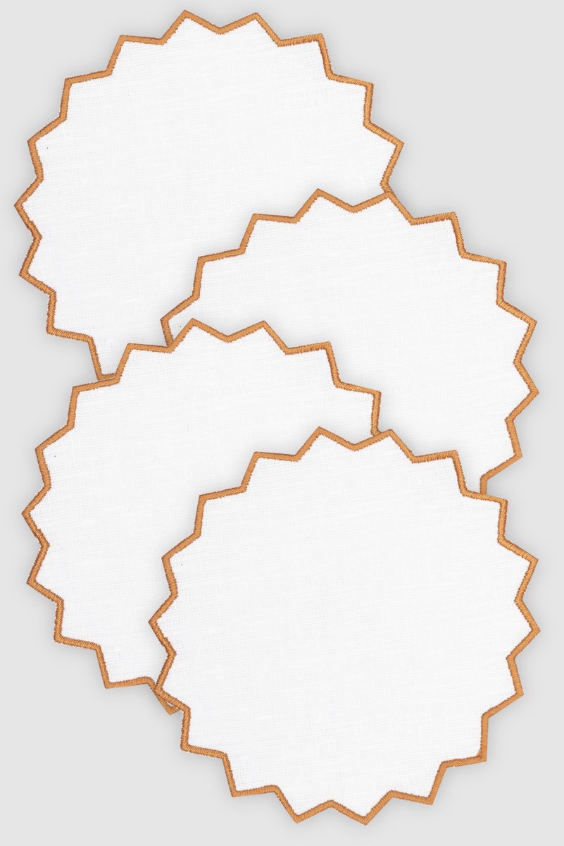 Gernika Tobacco Embroidered Linen Coasters by the Lacemakers, Set of 4