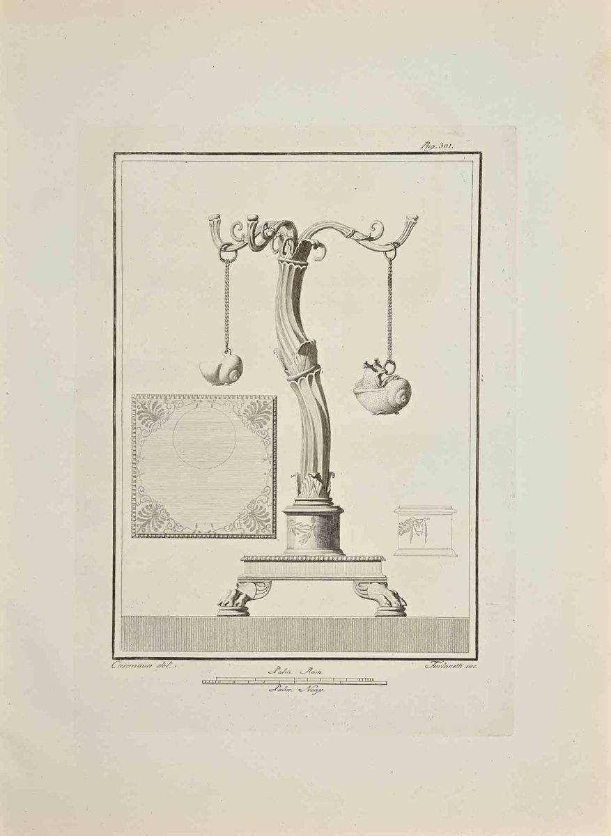 Giacomo Casanova, Ancient Roman Fresco Herculaneum, Original Etching, 18th Century