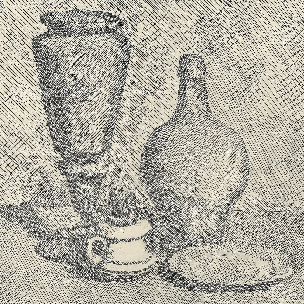 Giorgio Morandi, Still Life with Vase, Small Lamp and Dish, 1929-1957, Lithograph